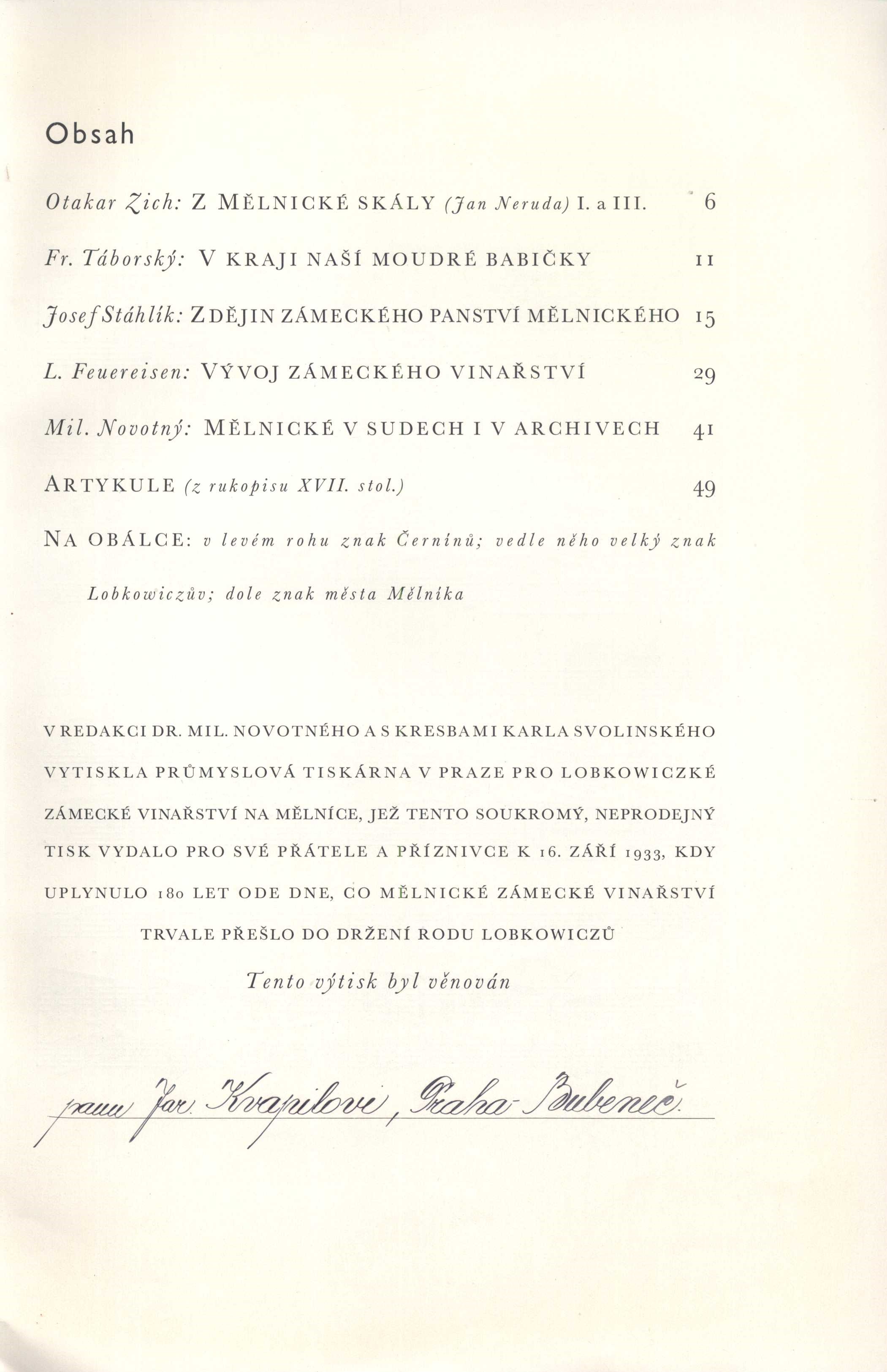 Novotný, Miloslav, 1894-1966. Svolinský, Karel, 1896-1986. Lobkowiczské zámecké vinařství (firma). Průmyslová tiskárna v Praze