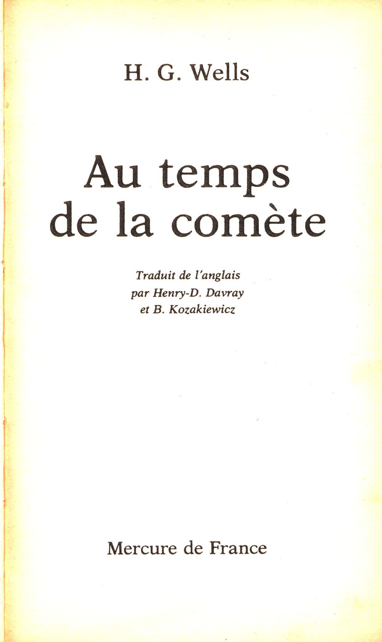 $a Au temps de la comète / $c H. G. Wells ; traduit de l'anglais par Henry-D. Davray et B. Kozakiewicz 264 -1
