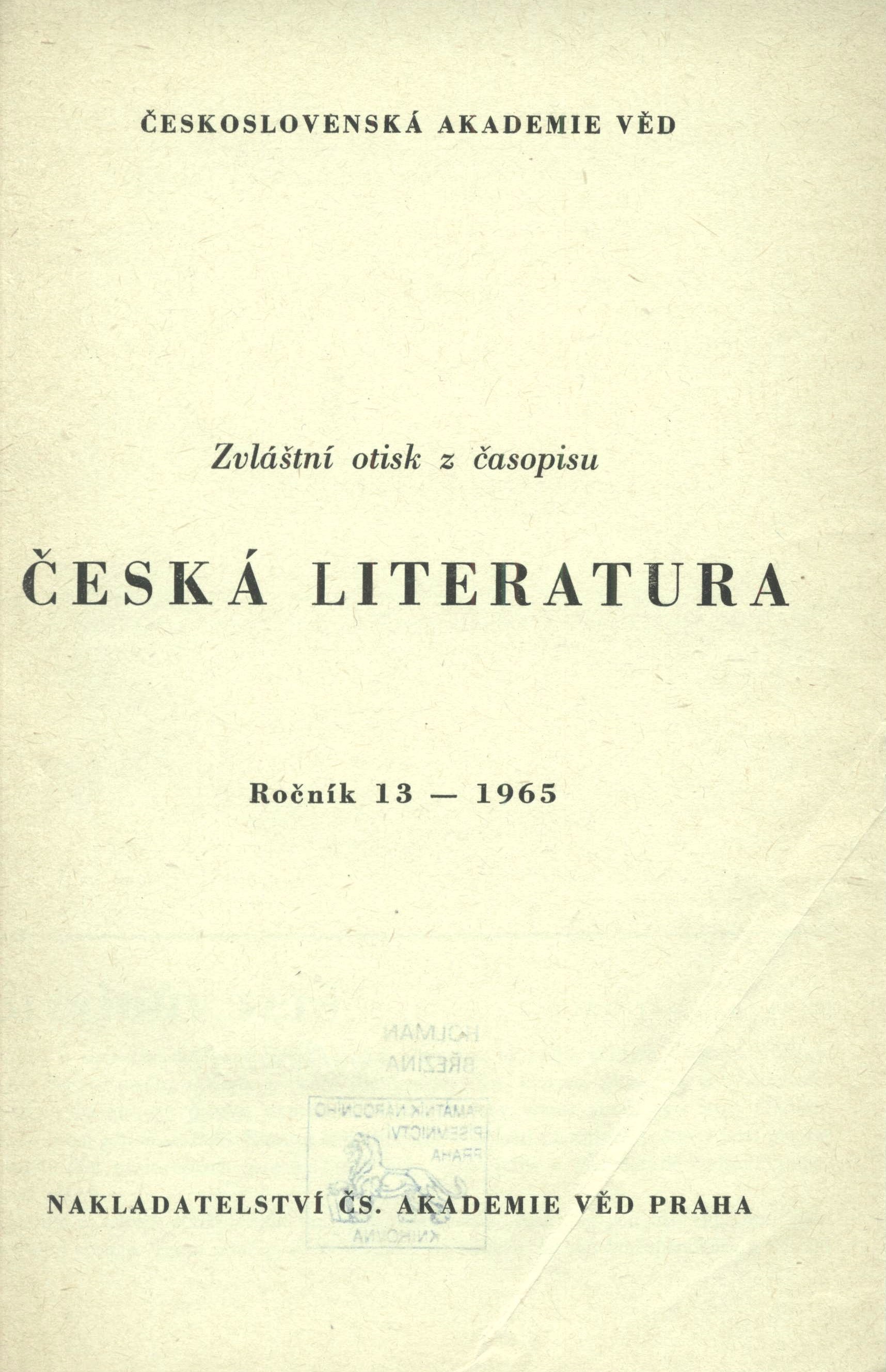 Názvové údaje Březinův verš / Miroslav Červenka Osobní jméno Červenka, Miroslav, 1932-2005 (Autor) (Dedikátor) (Autor podpisu) Další autoři Holman, Petr, 1951-2019 (Dedikant) Korp. Nakladatelství Československé akademie věd (Nakladatel, vydavatel) Výrobce [Praha] : Nakladatelství Československé akademie věd, 1965 Rozsah Strana 114-146 ; 23 cm ISBN (Vázáno) Země vyd. Česko Jazyk dok. čeština Poznámky Typografická obálka. - Poznámky pod čarou. - Zvláštní otisk.