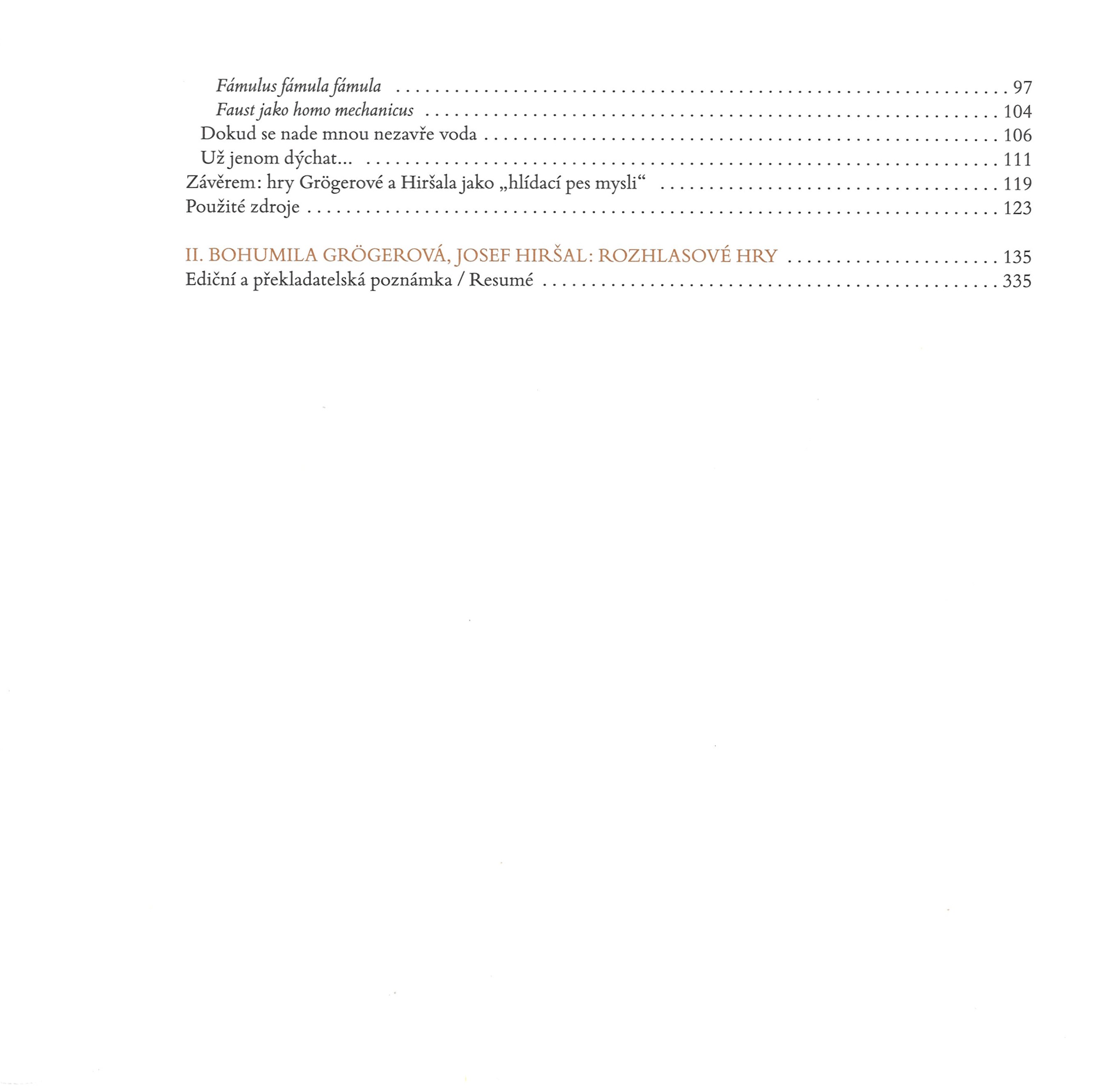 $a Rozhlasové hry Bohumily Grögerové a Josefa Hiršala / $c k vydání připravil, odbornou studií opatřil a výběrově přeložil Pavel Novotný ; autorem úvodní koláže se s. 2 je Jiří Kolář ; grafická úprava a sazba Jakub Effenberger 250 $a Vydání první 264 -1