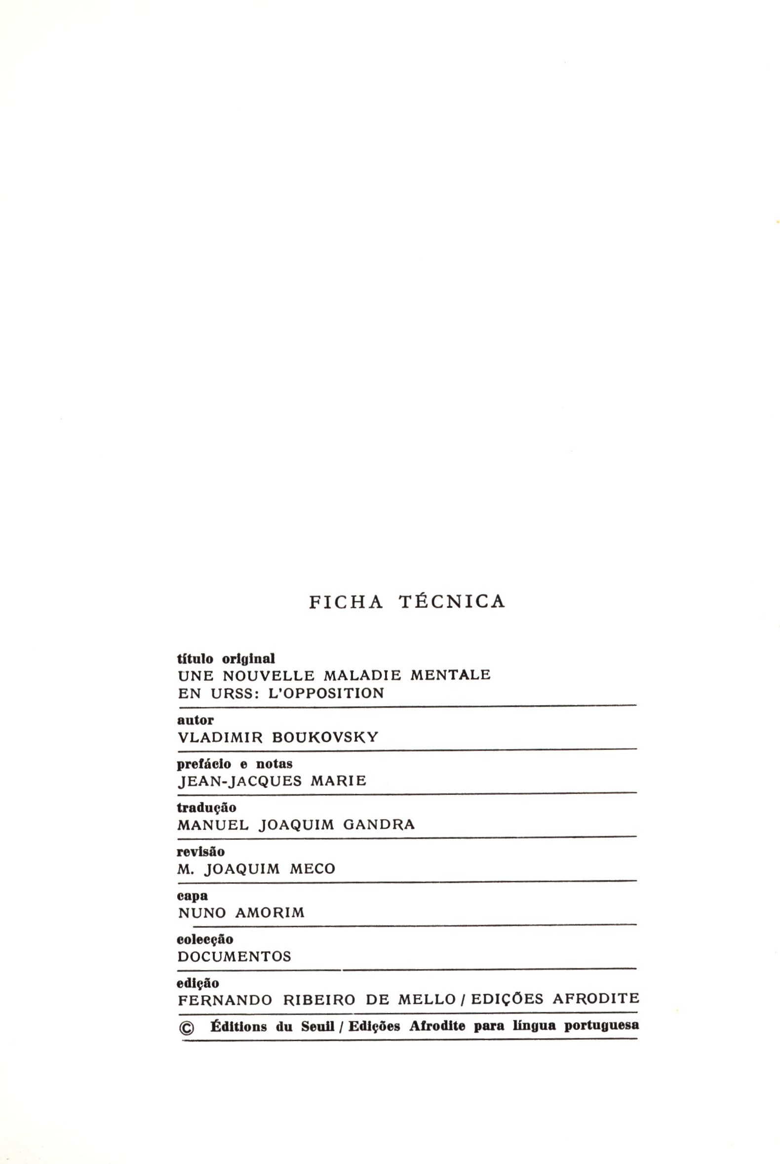 Title information Uma nova doença mental na URSS : a oposição / Vladimir Boukovsky ; prefácio de Jean-Jacques Marie Personal name Bukovskij, Vladimir Konstantinovič, 1942-2019 (Author) Další autoři Marie, Jean-Jacques (Author of introduction) Corporation Fernando Ribeiro de Mello (Publisher) Companhia Editora do Minho (Printer) Publication [Barcelos] : Fernando Ribeiro de Mello, [1976] Manufacture Companhia Editora do Minho Scope 247 stran ; 21 cm ISBN (Vázáno) Country Portugal Language Portuguese Note Zdobená obálka. - Předmluva