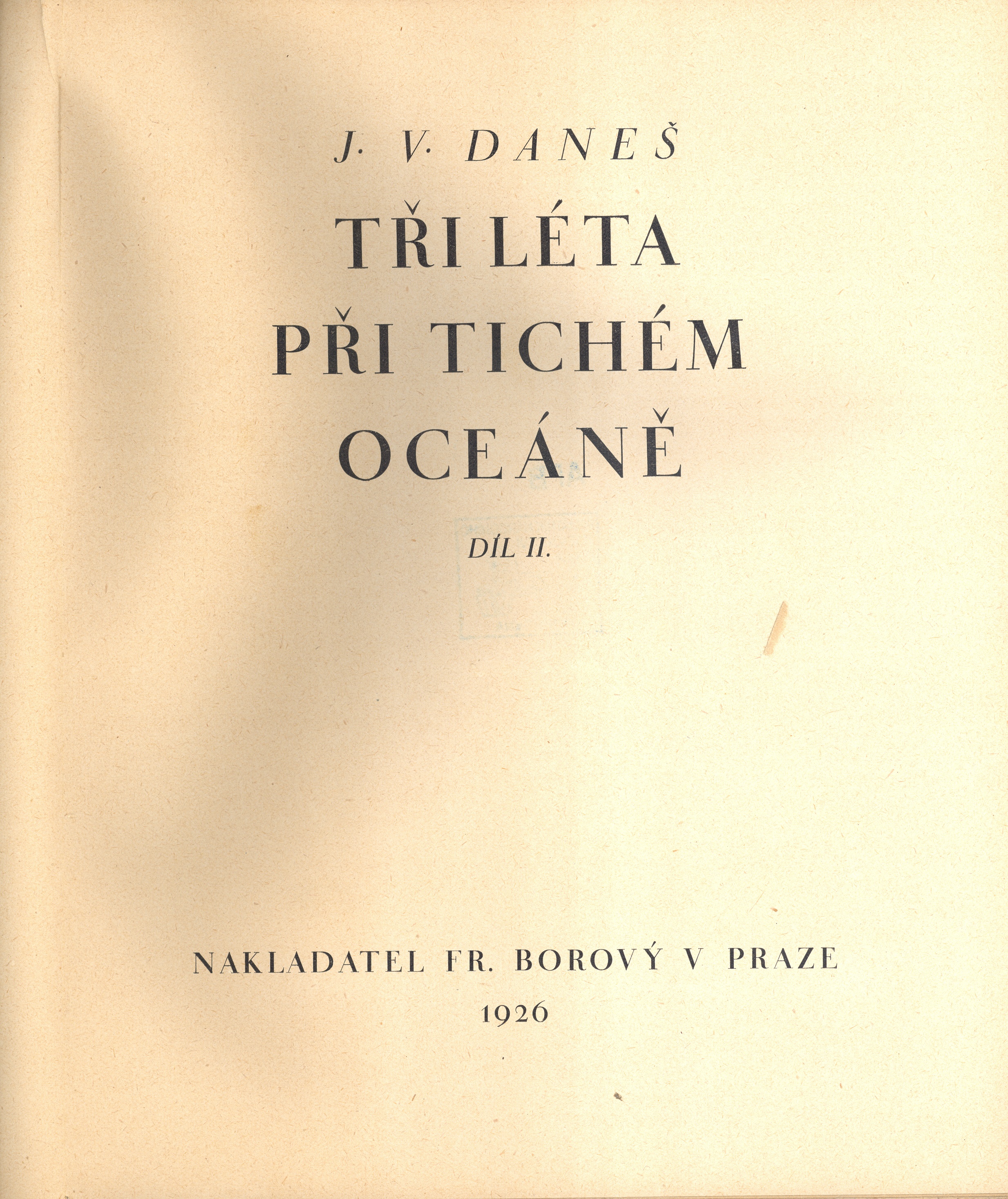 1. Názvové údajeTři léta při Tichém oceáně / J. V. Daneš ; [graficky upravil A. Chlebeček]. Díl II., [Nový Zéland, Fidži, Tonga, Samoa, Havajské souostroví, Japonsko, Mandžusko, Čína, Kanada]