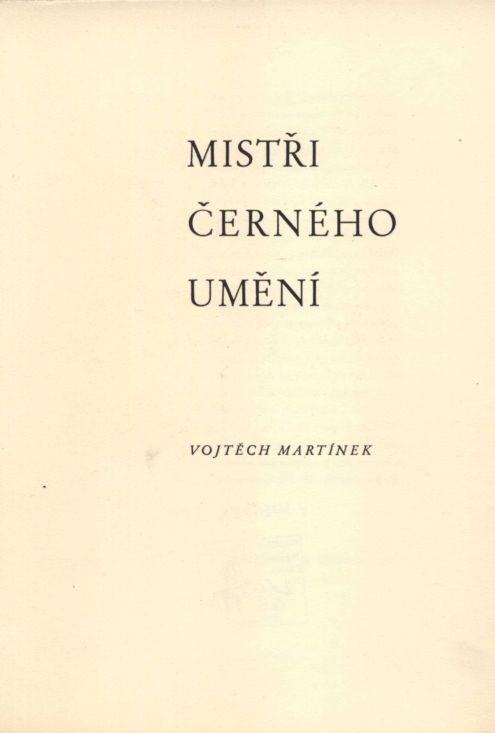 1. Názvové údajeMistři černého umění / Vojtěch Martínek ; [obrázky kreslili typografové Karel Štětkář, Lumír Ševčík, frontispice Vítězslav Černý]