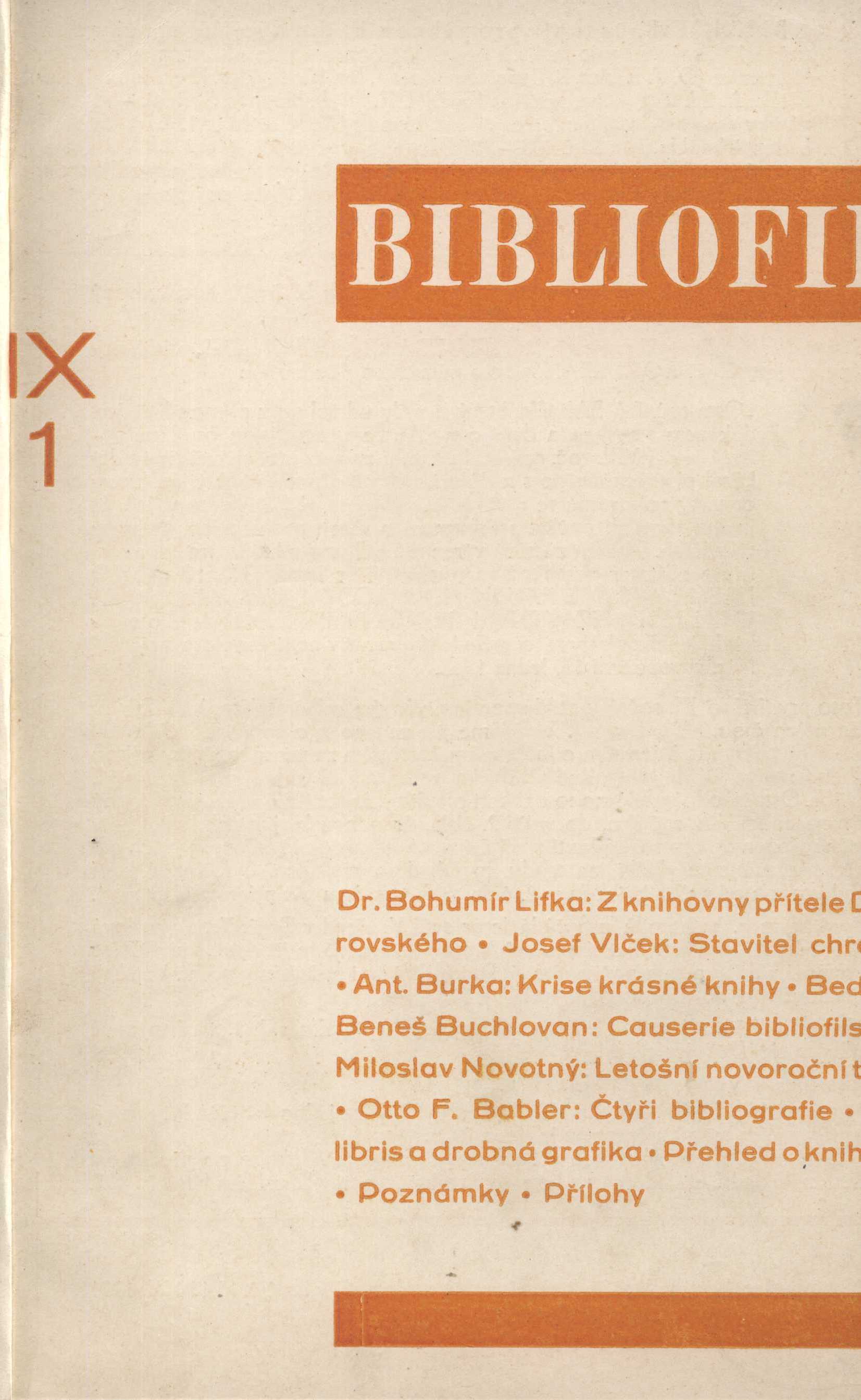 Názvové údajeBibliofil : časopis pro pěknou knihu a její úpravu