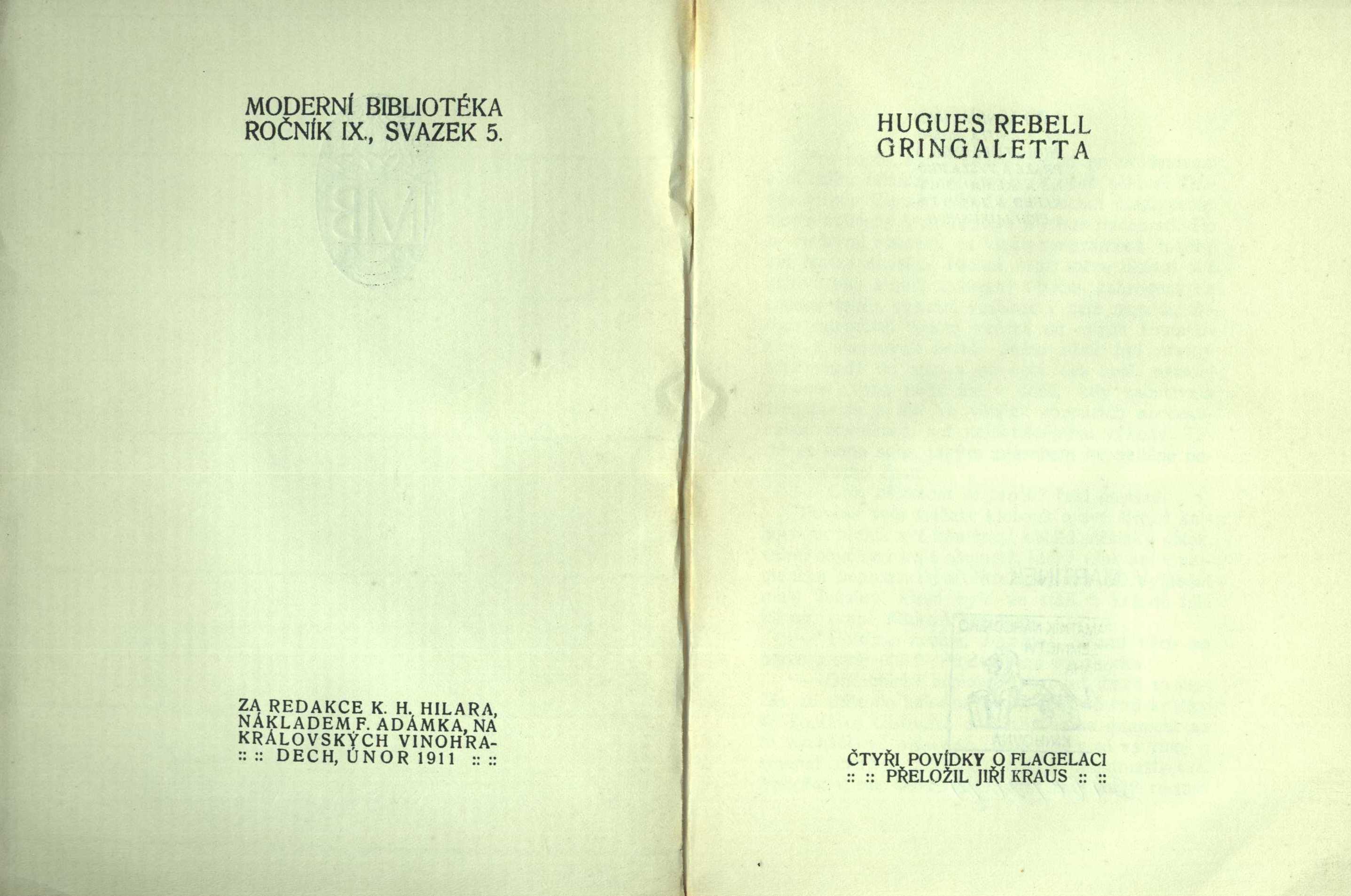 1. Názvové údajeGringaletta : čtyři povídky o flagelaci / Hugues Rebell ; přeložil Jiří Kraus