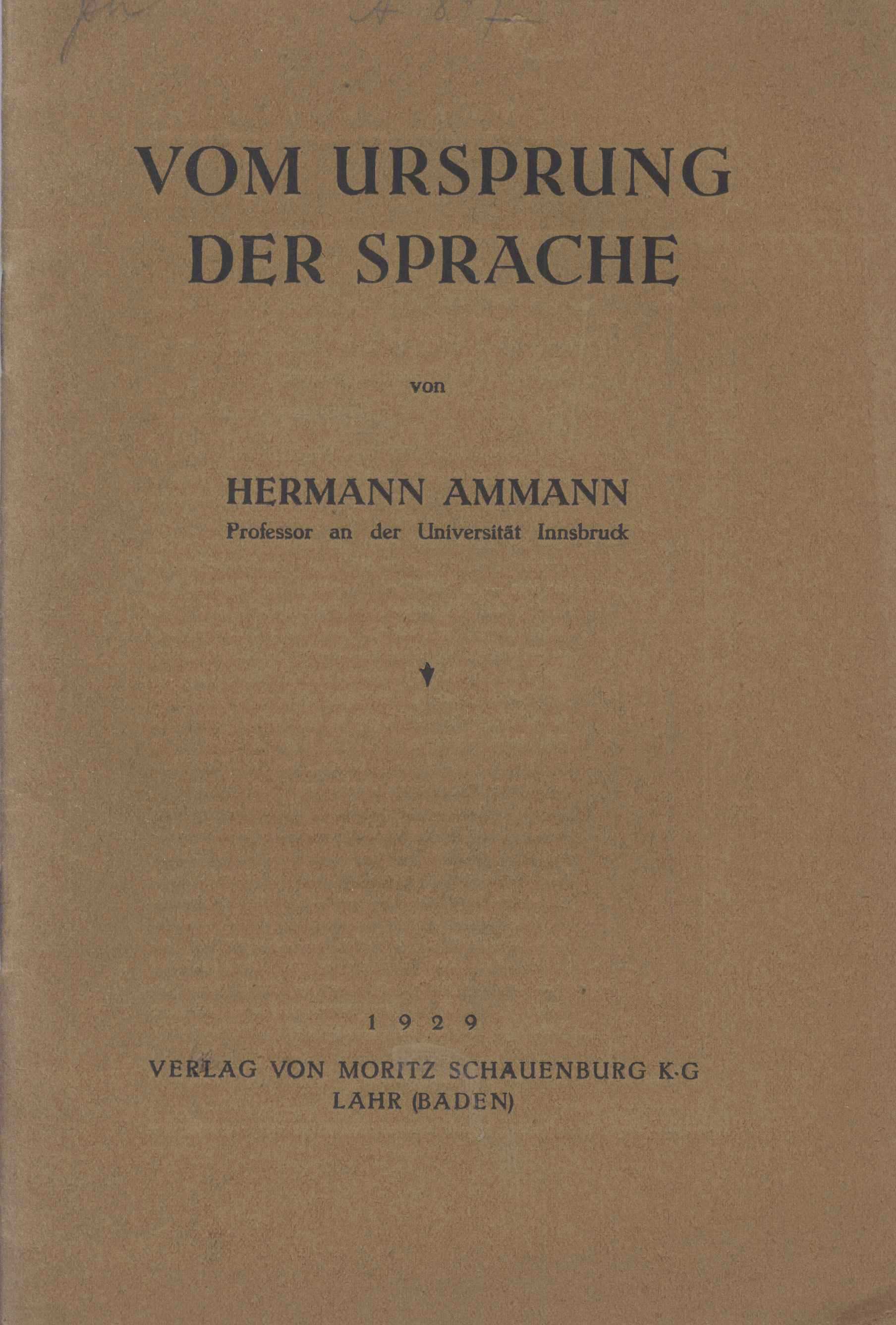 2. Title informationVom Ursprung der Sprache / von Hermann Ammann
