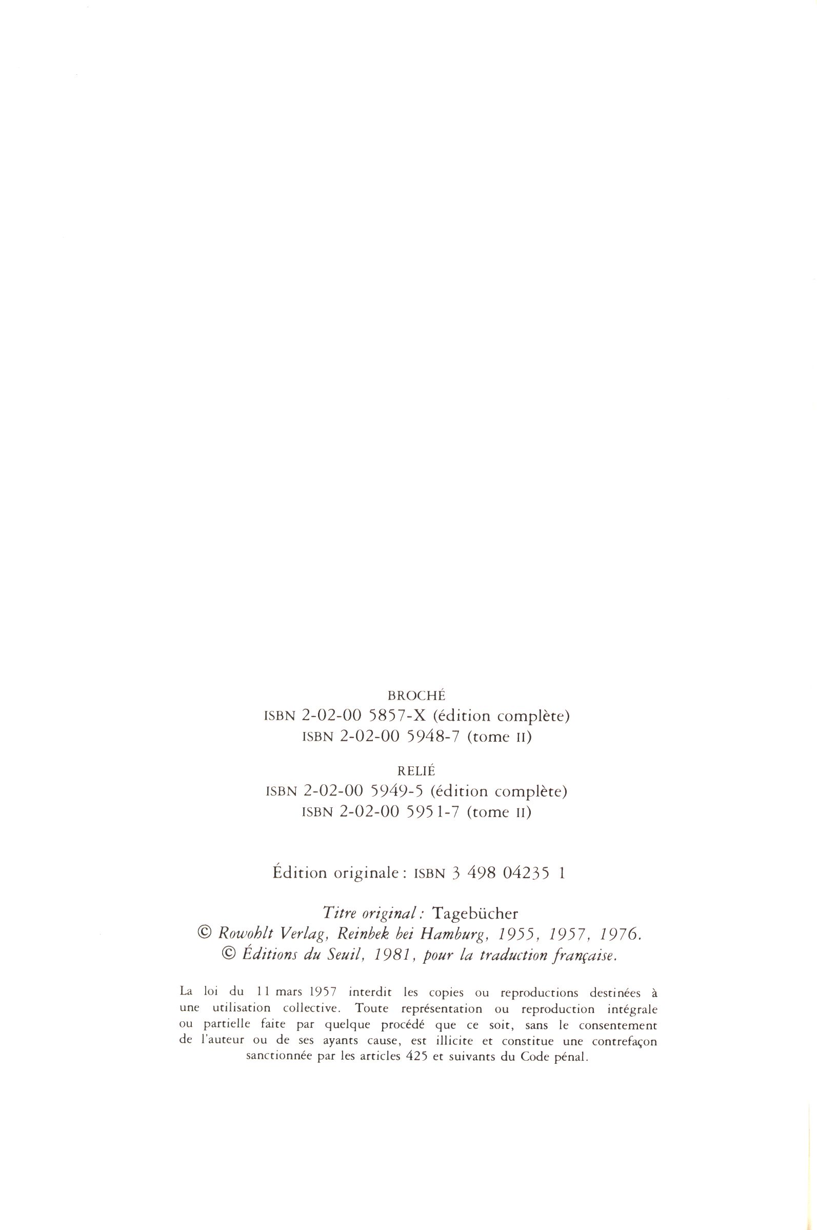 Názvové údajeJournaux. Tome II / Robert Musil ; traduction établie et présentée par Philippe Jaccottet d'apres l'édition allemande d' Adolf Frisé