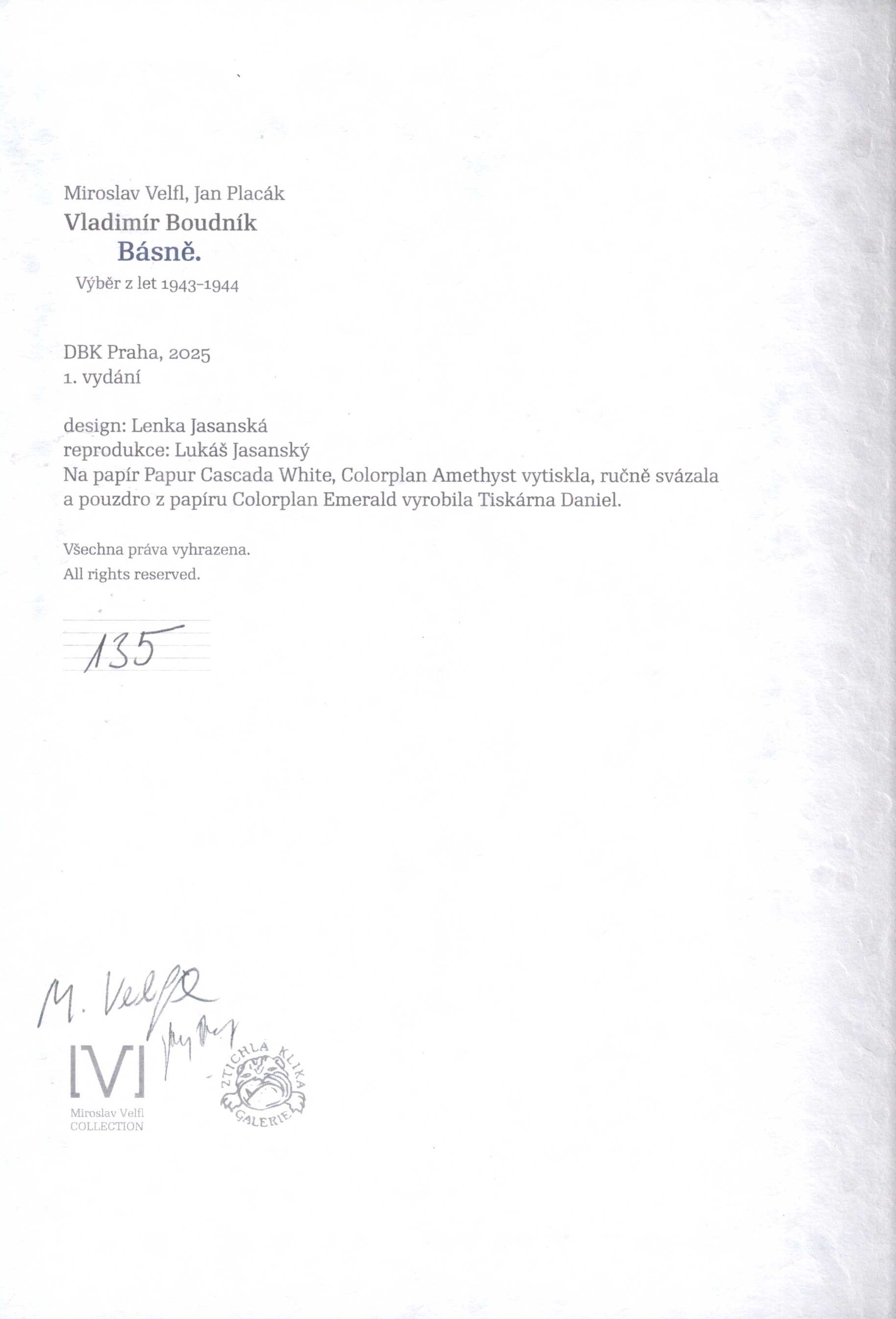 Názvové údajeBásně : výběr z let 1943-1944 / Vladimír Boudník ; Miroslav Velfl, Jan Placák ; design Lenka Jasanská
