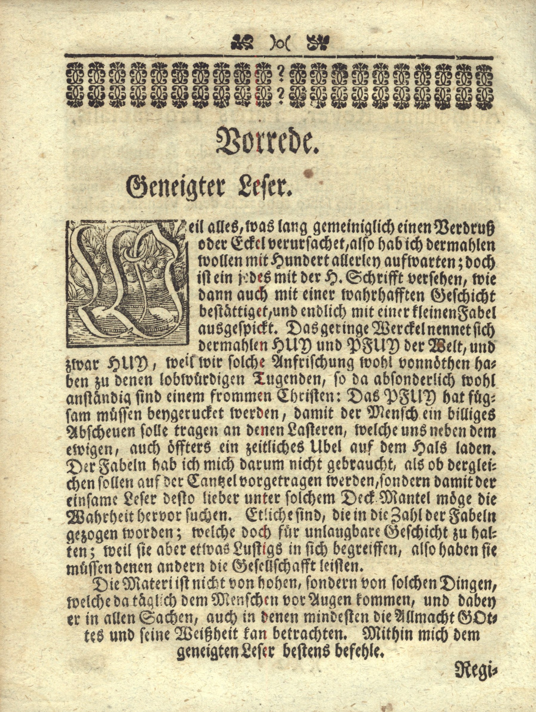 ![Začátek předmluvy ke čtenáři - dřevořezová gotiková stínovaná iniciála ve čtvercovém rámci z jednoduchých linek (35 x 35 mm) na pozadí s florální výzdobou zalomená do 8 řádků, linka z tiskařských ozdůbek (s. [12]) S-CI-d-36-08-s.(12).jpg](https://arl.pamatniknarodnihopisemnictvi.cz/i2/ims/gZ/Ma5ledG2vkZUHiBgxivg.jpg)