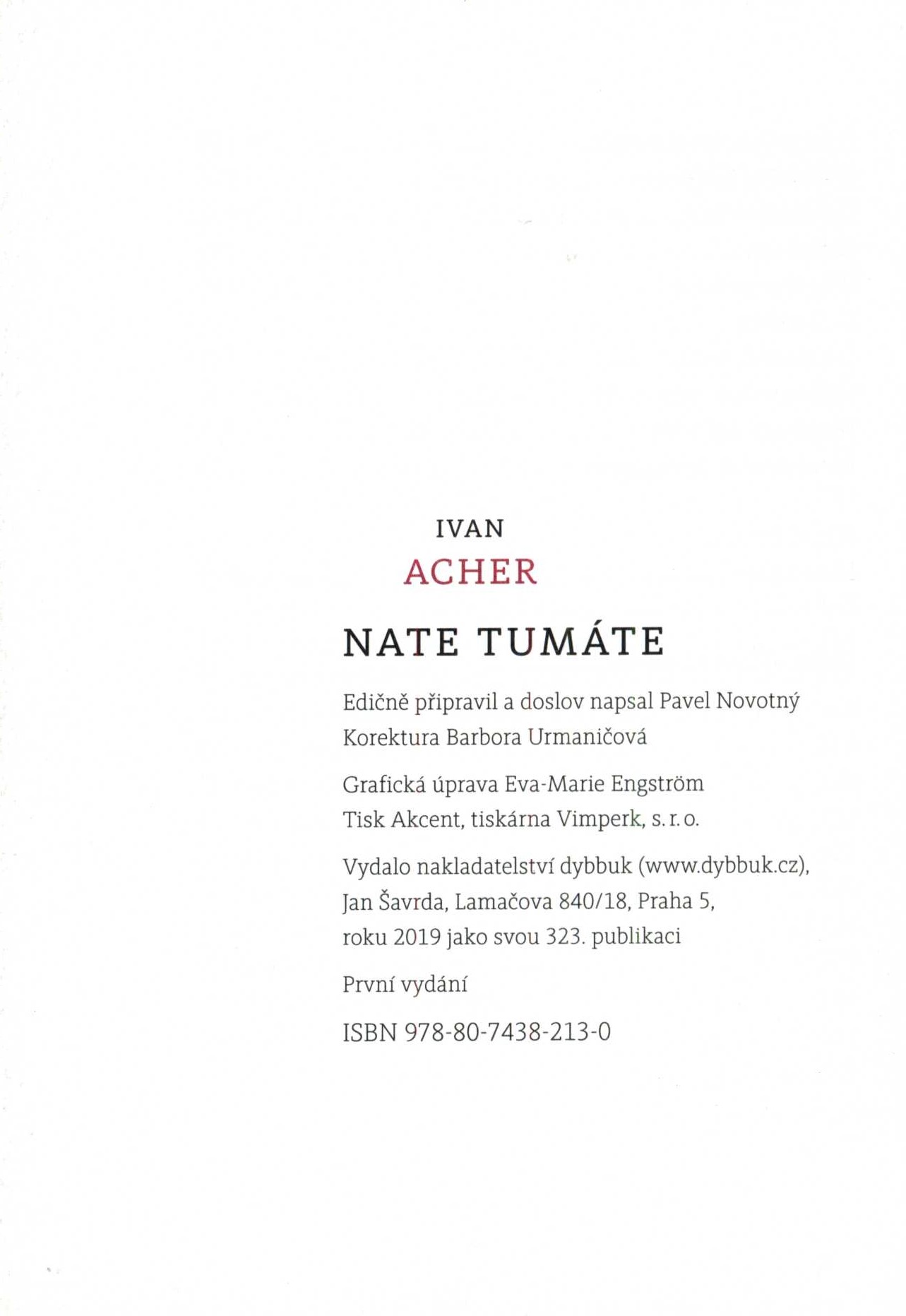 Názvové údaje Po dně : příběhy směrů, cest, škol, žáků a mistrů / Karel Adamus ; edičně připravil Jakub Šofar Osobní jméno Adamus, Karel, 1943- (Autor) Další autoři Šofar, Jakub, 1958- (Editor) Korp. Dybbuk (nakladatelství) (Nakladatel, vydavatel) Akcent tiskárna Vimperk (Tiskař) Nakladatel Praha : Dybbuk, 2008 Výrobce Vimperk : Akcent Rozsah 265 stran ; 18 cm Klíčová slova česká próza * absurdní próza * drobné příběhy Počet ex. 2, z toho volných 2 Druh dok. monografie Signatura C12a 3966, C12a 6051 Názvové údaje Nate tumáte : 1992-1997 / Ivan Acher ; edičně připravil a doslov napsal Pavel Novotný ; grafická úprava Eva-Marie Engström Osobní jméno Acher, Ivan, 1973- (Autor) Další autoři Novotný, Pavel, 1976- (Editor) (Autor doslovu, tiráže atd.) Engström, Eva-Marie (Knižní grafik) Korp. Dybbuk (nakladatelství) (Nakladatel, vydavatel) Akcent tiskárna Vimperk (Tiskař) Nakladatel Praha : Dybbuk, 2019 Výrobce Akcent, tiskárna Vimperk, s.r.o. Rozsah 147 stran : ilustrace ; 17 cm Klíčová slova česká poezie * básně Počet ex. 1, z toho volných 1 Druh dok. monografie Signatura LITa 0038 Názvové údaje Kosmos jako sebeutváření / Michal Ajvaz ; grafické zpracování obálky Vladimír Mačinskij Osobní jméno Ajvaz, Michal, 1949- (Autor) Další autoři Mačinskij, Vladimír (Knižní grafik) Korp. Pavel Mervart (nakladatelství) (Nakladatel, vydavatel) Akcent tiskárna Vimperk (Tiskař) Nakladatel Červený Kostelec : Pavel Mervart, 2017 Výrobce Vimperk : Akcent Rozsah 528 stran ; 21 cm Klíčová slova česká literatura * pojednání * kosmos * sebezdokonalování * sebeutváření * život * vývoj * vědomí * poznání * hodnoty Počet ex. 1, z toho volných 1 Druh dok. monografie Signatura C12b 17793 Názvové údaje Doba z druhé ruky : konec rudého člověka / Světlana Alexijevičová ; z ruštiny přeložila Pavla Bošková ; rejstřík vybraných jmen, glosář reálií a přehled důležitých dat nejnovějších sovětských a ruských dějin sestavil Libor Dvořák ; obálku a typografii navrhl Lubomír Šedivý Osobní jméno Aleksìjevìč, Svjatlana Aljaksandraŭna, 1948- (Autor) Další autoři Bošková, Pavla, 1973- (Překladatel) Dvořák, Libor, 1948- (Autor komentáře) Šedivý, Lubomír, 1955- (Autor obálky) (Typograf) Korp. Pistorius & Olšanská (nakladatelství) (Nakladatel, vydavatel) Akcent tiskárna Vimperk (Tiskař) Nakladatel Příbram : Pistorius & Olšanská, 2015 Výrobce Vimperk : Akcent Rozsah 492 stran ; 21 cm Klíčová slova Rusko * Sovětský svaz * komunistický režim * každodenní život * psychologické aspekty * vzpomínky * rozhovory Počet ex. 1, z toho volných 1 Druh dok. monografie Signatura BVolkova 0938 Názvové údaje Jájínek : čuráček pošetilý / Nela D. Astonová ; ilustroval Jaromír Plachý ; předmluva Jan Nejedlý ; grafická úprava Eva-Marie Engström Osobní jméno Astonová, Nela D., 1976- (Autor) Další autoři Plachý, Jaromír, 1986- (Ilustrátor) Engström, Eva-Marie (Knižní grafik) Nejedlý, Jan, 1971- (Autor úvodu atd.) Korp. Dybbuk (nakladatelství) (Nakladatel, vydavatel) Akcent tiskárna Vimperk (Tiskař) Nakladatel Praha : Dybbuk, 2019 Výrobce Vimperk : Akcent tiskárna s.r.o. Rozsah 91 stran : ilustrace ; 17 cm Klíčová slova česká literatura * próza * humoristické příběhy Počet ex. 1, z toho volných 1 Druh dok. monografie Signatura LITa 0049 Názvové údaje Onanie, aneb, Mrzký hřích samohany : balanc mezi Bohuslavem Broukem a Wilhelmem Reichem / Nela D. Astonová a Jakub Šofar ; [grafická úprava Jan d'Nan] Osobní jméno Astonová, Nela D., 1976- (Autor) Další autoři Šofar, Jakub, 1958- (Autor) d'Nan, Jan (Knižní grafik) Korp. Dybbuk (nakladatelství) (Nakladatel, vydavatel) Akcent tiskárna Vimperk (Tiskař) Nakladatel Praha : Dybbuk, 2013 Výrobce Akcent) Rozsah 278 s. : il. ; 18 cm Klíčová slova česká próza * sexualita * masturbace * literární náměty Počet ex. 1, z toho volných 1 Druh dok. monografie Signatura C12a 5400 Názvové údaje Oděské povídky ; Historie mého holubníku / Isaak Babel ; [z ruských originálů přeložil Jan Zábrana ; grafická úprava, ilustrace a sazba Pavel Růt] Osobní jméno Babel‘, Isaak Èmmanuilovič, 1894-1940 (Autor) Další autoři Zábrana, Jan, 1931-1984 (Překladatel) Růt, Pavel, 1967- (Knižní grafik) (Ilustrátor) (Sazeč) Korp. Argo (nakladatelství) (Nakladatel, vydavatel) Akcent tiskárna Vimperk (Tiskař) Nakladatel Praha : Argo, 2010 Výrobce Akcent) Rozsah 196 s. : il. ; 21 cm Klíčová slova ruská literatura * ruská próza * povídky Počet ex. 1, z toho volných 1 Druh dok. ***nezařazeno*** Signatura C12b 15802 Názvové údaje Povídky / Isaak Babel ; [z ruských originálů přeložil Jan Zábrana ; grafická úprava, ilustrace a sazba Pavel Růt] Osobní jméno Babel‘, Isaak Èmmanuilovič, 1894-1940 (Autor) Další autoři Zábrana, Jan, 1931-1984 (Překladatel) Růt, Pavel, 1967- (Knižní grafik) (Ilustrátor) (Sazeč) Korp. Argo (nakladatelství) (Nakladatel, vydavatel) Akcent tiskárna Vimperk (Tiskař) Nakladatel Praha : Argo, 2010 Výrobce Akcent) Rozsah 187 s. : il. ; 21 cm Klíčová slova ruská literatura * ruská próza * povídky Počet ex. 1, z toho volných 1 Druh dok. ***nezařazeno*** Signatura C12b 15803 Názvové údaje Rudá jízda / Isaak Babel ; [z ruských originálů přeložil Jan Zábrana ; doslov napsal Vladimír Novotný ; grafická úprava, ilustrace a sazba Pavel Růt] Osobní jméno Babel‘, Isaak Èmmanuilovič, 1894-1940 (Autor) Další autoři Zábrana, Jan, 1931-1984 (Překladatel) Novotný, Vladimír, 1946- (Autor doslovu, tiráže atd.) Růt, Pavel, 1967- (Knižní grafik) (Ilustrátor) (Sazeč) Korp. Argo (nakladatelství) (Nakladatel, vydavatel) Akcent tiskárna Vimperk (Tiskař) Nakladatel Praha : Argo, 2010 Výrobce Akcent) Rozsah 179 s. : il. ; 21 cm Klíčová slova ruská lite