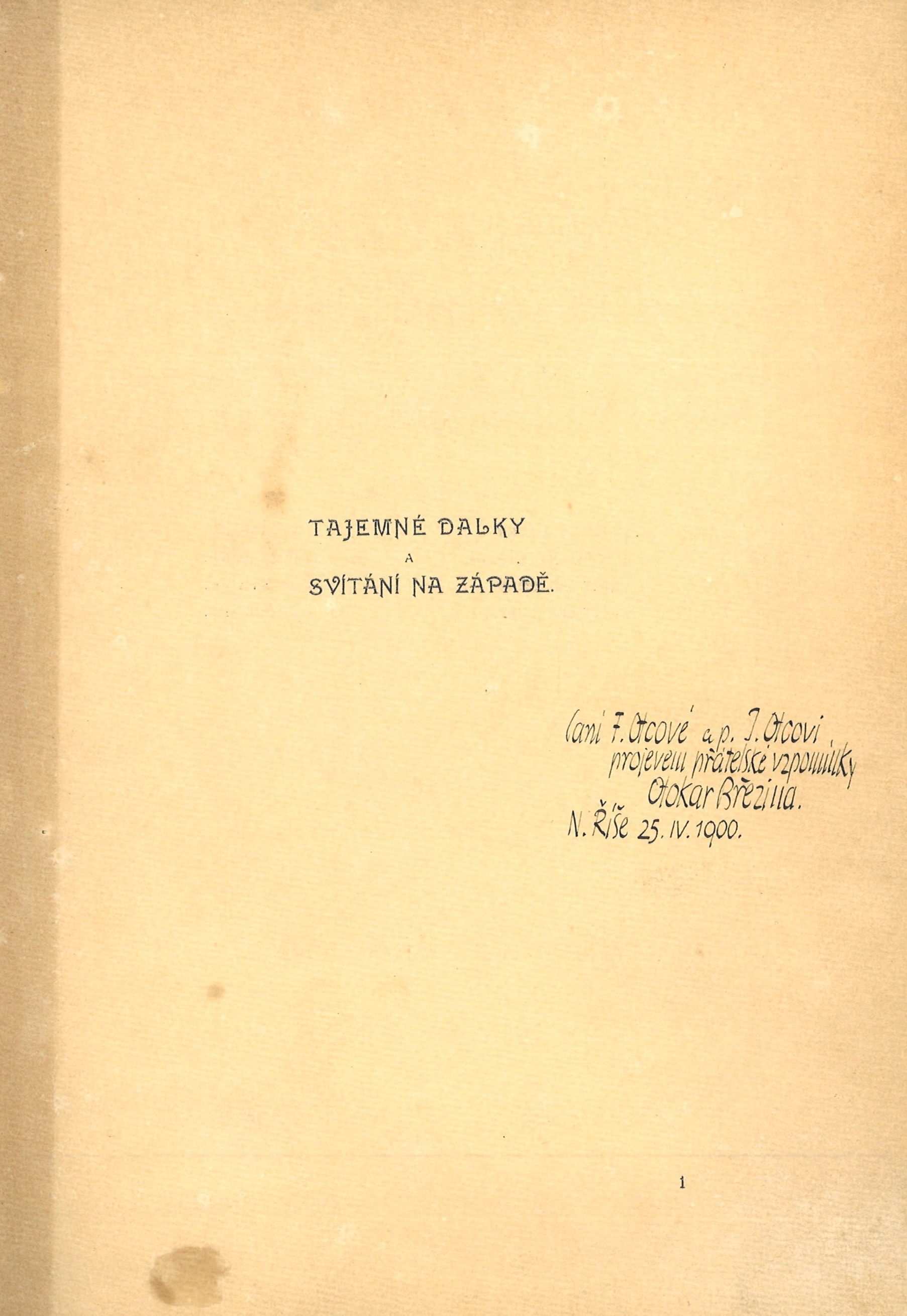 Názvové údaje "Praha jak bývala.." : kresby a vzácná grafika z pražské soukromé sbírky / tento katalog sestavil Bedřich Lenz ; se čtyřmi vyobrazeními ; Krasoumná jednota, Praha 2, Pštrossova 12. ; 22. únor - 16. březen Záhlaví-akce "Praha jak bývala.." (kresby a vzácná grafika z pražské soukromé sbírky) (22. 2. - 16. 3. 1930 : Krasoumná jednota, Praha, Česko) Další autoři Karásek ze Lvovic, Jiří, 1871-1951 (Autor podpisu) Lenz, Bedřich (Autor úvodu atd.) Korp. Krasoumná jednota (Praha) (Nakladatel, vydavatel) Emanuel Stivín (v Praze) (Tiskař) Nakladatel Praha : Krasoumná jednota, 1930 Výrobce (Tiskem Emanuela Stivína a synů) Rozsah 32 s., 4 l. obr. příl. : il. Klíčová slova česká literatura * české výtvarné umění * katalog * katalog výstavy * výstava * Praha * pragensia * stol. 20., léta 30. * r. 1930 Počet ex. 1, z toho volných 1 Druh dok. monografie Signatura KaG IX B 58 Názvové údaje Upomínka na Národopisnou výstavu českoslovanskou v Praze 1895 : Alešovy illustrace Národních písní Osobní jméno Aleš, Mikoláš, 1852-1913 (Ilustrátor) Další autoři Emanuel Stivín (v Praze) (Tiskař) Nakladatel V Praze : J. Jaroš, [1895] Výrobce Em. Stivín Rozsah 28 nečíslovaných stran : ilustrace ; 16 cm Klíčová slova česká grafika * české písně * národní písně * stol. 19. * jubilejní publikace Počet ex. 2, z toho volných 2 Druh dok. monografie Signatura P 75 f 70, P 74 e 109 Názvové údaje Novelly. I / napsal J. Arbes Osobní jméno Arbes, Jakub, 1840-1914 (Autor) (Nakladatel, vydavatel) Další autoři Emanuel Stivín (v Praze) (Tiskař) Nakladatel Praha : Jakub Arbes, 1896 Výrobce Em. Stivín Rozsah Strany 159-366 ; 19 cm Klíčová slova česká próza * novely Počet ex. 1, z toho volných 1 Druh dok. monografie Signatura F I 2458 Názvové údaje Bez halíře do Paříže / veselé příhody ze své cesty vypravuje Filip Balek-Brodský Osobní jméno Balek-Brodský, Filip, 1871-1949 (Autor) Další autoři Jihočeské lidové knihkupectví a nakladatelství J. Svátek (Nakladatel, vydavatel) Emanuel Stivín (v Praze) (Tiskař) Nakladatel V Praze : nakladatel Jan Svátek, knihkupec, 1923 Výrobce Tiskem Emanuela Stivína a synů Rozsah 110 stran ; 18 cm Klíčová slova česká próza * cestopisná próza * Paříž * Francie * cestopisy * humorné vyprávění Počet ex. 1, z toho volných 1 Druh dok. ***nezařazeno*** Signatura Patočka 0033 Názvové údaje Po cestách vítězů / Arnošt Bláha Osobní jméno Bláha, Arnošt Inocenc, 1879-1960 (Autor) (Nakladatel, vydavatel) Další autoři Beneš Buchlovan, Bedřich, 1885-1953 (Dřívější majitel) (Dárce) Korp. Emanuel Stivín (v Praze) (Tiskař) Nakladatel [S. l.] : A. Bláha, 1902 Výrobce Tiskem Em. Stivína) Rozsah 70 s. Klíčová slova česká literatura * česká lyrika * česká poezie * dekadence Počet ex. 2, z toho volných 2 Druh dok. monografie Signatura KaG V23 A 41, KaG XXXII D 138 Názvové údaje Stavitelé chrámu / Otokar Březina Osobní jméno Březina, Otokar, 1868-1929 (Autor) Další autoři Moderní revue (nakladatelství) (Nakladatel, vydavatel) Emanuel Stivín (v Praze) (Tiskař) Nakladatel Praha : Moderní revue, 1899 Výrobce Emanuel Stivín Rozsah 47 nečíslovaných stran ; 24,5 cm Klíčová slova česká poezie * filozofické básně * symbolismus * přelom 19. a 20. stol. Počet ex. 4, z toho volných 4 Druh dok. monografie Signatura P 17 a 19, P 44 A 46, M 150 b 33, Holman-Březina 0247 Názvové údaje Tajemné dálky a Svítání na západě / Otokar Březina ; s třemi litografiemi Frant. Bílka Osobní jméno Březina, Otokar, 1868-1929 (Autor) (Dedikátor) (Autor podpisu) Další autoři Bílek, František, 1872-1941 (Ilustrátor) (Litograf) Korp. Moderní revue (nakladatelství) (Nakladatel, vydavatel) Emanuel Stivín (v Praze) (Tiskař) Nakladatel Praha : Moderní revue, 1900 Výrobce Tiskem Em. Stivína Rozsah 77 stran, 4 nečíslované listy obrazových příloh ; 24,5 cm Klíčová slova česká poezie * dekadence (literatura) * symbolismus (literatura) * bibliofilie Počet ex. 6, z toho volných 6 Druh dok. monografie Signatura VHB 1445, P 59 A 18, P 36 A 33, P 23 A 30, Holman-Březina 0317, C12c 5763 Názvové údaje Rodina, škola a společnost / napsal Josef Černý Osobní jméno Černý, Josef, 1863-1942 (Autor) Další autoři Emanuel Stivín (v Praze) (Tiskař) Tělocvičná jednota Sokol Pražský. Matice Sokola Pražského (Nakladatel, vydavatel) Nakladatel V Praze : Nákladem Sokolské matice, 1897 Výrobce V Praze : Tiskem Em. Stivína, 1897 Rozsah 68 stran Klíčová slova česká literatura * česká společnost * společnost * školství * výchova * výchova dětí * výchova mládeže * morálka * Česká obec sokolská * Sokol * sokolské hnutí * sokolstvo Počet ex. 1, z toho volných 1 Druh dok. monografie Signatura KaG III D2 50/přív.1 Odkazy (3) - Monografie Názvové údaje Marnosti : básně / Viktor Dyk Osobní jméno Dyk, Viktor, 1877-1931 (Autor) Další autoři Stivín, Emanuel, 1848-1925 (Tiskař) Korp. Moderní revue (nakladatelství) (Nakladatel, vydavatel) Emanuel Stivín (v Praze) (Tiskař) Nakladatel Praha : Moderní revue, [1900] Výrobce (Tiskem Em. Stivína) Rozsah 76 s. Klíčová slova česká literatura * česká poezie * česká dekadence * dekadence * básně * přelom 19. a 20. stol. Počet ex. 1, z toho volných 1 Druh dok. monografie Signatura KaG XVI B 319 Názvové údaje Sokolstvo a naše doba / napsal Milan Fučík Osobní jméno Fučík, Milan, 1876-1934 (Autor) Další autoři Emanuel Stivín (v Praze) (Tiskař) Tělocvičná jednota Sokol Pražský. Matice Sokola Pražského (Nakladatel, vydavatel) Nakladatel V Praze : Nákladem Sokolské matice, 1897 Výrobce V Praze : Tiskem Em. Stivína, 1897 Rozsah 30 stran Klíčová slova česká literatura * Česká obec sokolská * Sokol * sokolské hnutí * sokolstvo Počet ex. 1, z toho volnýc