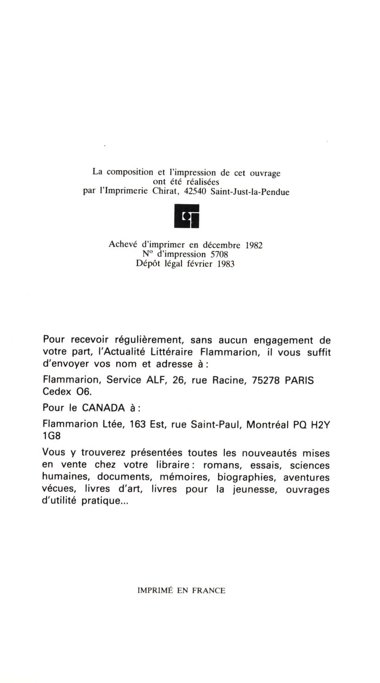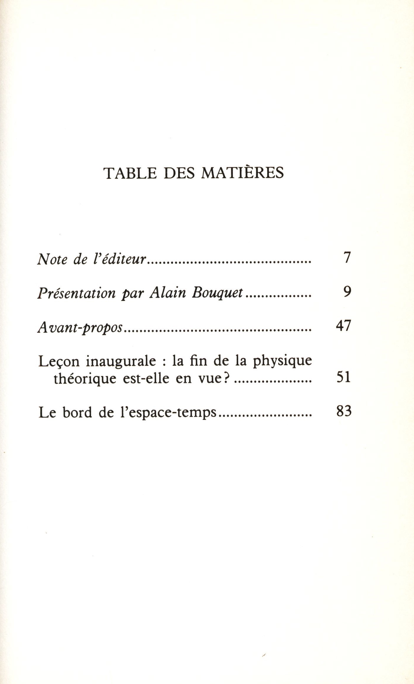 Názvové údaje 40 artistes tcheques et slovaques : 1960-1990 Další autoři Bossard, Marie-Christine (Knižní grafik) Korp. Flammarion (nakladatelství) (Nakladatel, vydavatel) F.lli Spirito (tiskárna) (Tiskař) Nakladatel [Paris] : Flammarion, 1990 Výrobce Savona : F.lli Spirito Rozsah 139 stran : ilustrace ; 29 cm Klíčová slova umění * české umění * slovenské umění * stol. 20. Počet ex. 1, z toho volných 1 Druh dok. monografie Signatura JVladislav 870 Názvové údaje 95 Poèmes : recueil / E. E. Cummings ; traduit et présenté par Jacques Demarcq Osobní jméno Cummings, Edward Estlin, 1894-1962 (Autor) Další autoři Demarcq, Jacques, 1946- (Překladatel) (Autor úvodu atd.) Korp. Flammarion (nakladatelství) (Nakladatel, vydavatel) Simped (Tiskař) Nakladatel Paris : Flammarion, 1983 Výrobce Evreux : Simped Rozsah 127 stran ; 19 cm Klíčová slova poezie * anglická literatura * výbory * básně * stol. 20. Počet ex. 1, z toho volných 1 Druh dok. monografie Signatura JVladislav 1830 Názvové údaje Adolescence et crise : la quête de l'identité / Erik H. Erikson ; Traduit de l'américain par joseph Nass et Claude Louis-Combet Osobní jméno Erikson, Erik H. (Erik Homburger), 1902-1994 (Autor) Další autoři Nass, Joseph (Překladatel) Louis-Combet, Claude, 1932- (Překladatel) Korp. Flammarion (nakladatelství) (Nakladatel, vydavatel) Bussière (firma) (Tiskař) Nakladatel Paris : Flammarion, 1976 Výrobce Saint-Amand : Bussière Rozsah 328 stran ; 21 cm Klíčová slova psychologie * psychologie lidí * dospívání * identita * překlady do francouzštiny Počet ex. 1, z toho volných 1 Druh dok. monografie Signatura JVladislav 2556 Názvové údaje L'agression allemande contre la Pologne : Une ambassade a Varsovie 1935-1939 / Léon Noël Osobní jméno Noël, Léon, 1888-1987 (Autor) Další autoři Flammarion (nakladatelství) (Nakladatel, vydavatel) Émile Colin et Cie. Impimerie de Lagny (Tiskař) Nakladatel Paris : Flammarion, [1946] Výrobce Impimerie de Lagny Copyright © 1946 Rozsah 509 stran ; 22 cm Klíčová slova světové dějiny * mezinárodní vztahy * válka * příčiny * 2. světová válka * Polsko * monografie Počet ex. 1, z toho volných 1 Druh dok. monografie Signatura JVladislav 1847 Názvové údaje Les amours : (1552-1584) / Pierre De Ronsard ; chronologie, introduction, notes et glossaire par Marc Bensimon et James L. Martin Osobní jméno Ronsard, Pierre de, 1524-1585 (Autor) Další autoři Bensimon, Marc (Autor úvodu atd.) (Bibliografický předchůdce) Martin, James L. (Autor úvodu atd.) (Bibliografický předchůdce) Korp. Flammarion (nakladatelství) (Nakladatel, vydavatel) Bussière (firma) (Tiskař) Nakladatel Paris : Flammarion, 1981 Výrobce Saint-Amand (Cher) : Imp. Bussière Rozsah 478 stran ; 18 cm Klíčová slova francouzská literatura * historie * dějiny * stol. 16. Počet ex. 1, z toho volných 1 Druh dok. monografie Signatura JVladislav 1800 Názvové údaje Les Arabes n'ont jamais envahi l'Espagne / Ignacio Olagüe Osobní jméno Olagüe, Ignacio, (Autor) 1903-1974 Další autoři Flammarion (nakladatelství) (Nakladatel, vydavatel) Nakladatel Paris : Flammarion, 1969 Rozsah 347 stran, 14 stran obrazové přílohy ; 21 cm Klíčová slova Španělsko * dějiny Španělska * Arabové Počet ex. 1, z toho volných 1 Druh dok. monografie Signatura JVladislav 1967 Názvové údaje Les Caractères de Théophraste traduits du grec avec "Les Caractères" ou Les Moeurs de ce siècle / La Bruyère ; chronologie et préface par Robert Pignarre Osobní jméno La Bruyére, Jean de, 1645-1696 (Autor) Další autoři Theofrastos, asi 372-asi 287 př. Kr. (Autor) Pignarre, Robert, 1899- (Autor úvodu atd.) Korp. Flammarion (nakladatelství) (Nakladatel, vydavatel) Imprimerie Tardy Quercy (tiskárna) (Tiskař) Nakladatel Paris : Flammarion, 1965 Výrobce Bourges : Imprimerie Tardy Quercy Rozsah 441 stran ; 18 cm Osobní hesla La Bruyére, Jean de, 1645-1696 - francouzský filozof * Theofrastos, asi 372-asi 287 př. Kr. - řecký filosof, vědec Klíčová slova antická filozofie * charakter * morálka * společnost * etika * pojednání * komentované vydání Počet ex. 1, z toho volných 1 Druh dok. monografie Signatura JVladislav 1815 Názvové údaje Commencement du temps et fin de la physique? / Stephen Hawking ; Textes traduits de l'anglais par Catherine Chevalley ; Présentation de Alain Bouquet Osobní jméno Hawking, Stephen William, 1942-2018 (Autor) Další autoři Chevalley, Catherine, 1951-2022 (Překladatel) Korp. Flammarion (nakladatelství) (Nakladatel, vydavatel) Floch (francouzská tiskárna) (Tiskař) Nakladatel [Paris] : Flammarion, 1992 Výrobce Mayenne : Floch Rozsah 119 stran : grafy, ilustrace, fotografie ; 20 cm Klíčová slova anglická literatura * anglická próza * fyzika * teoretická fyzika * čas * překlady do francouzštiny Počet ex. 1, z toho volných 1 Druh dok. monografie Signatura JVladislav 2583 Názvové údaje Conjoncture du corps et du jardin : suivi de Cosmogonie / Claude Esteban Osobní jméno Esteban, Claude, 1935-2006 (Autor) Další autoři Flammarion (nakladatelství) (Nakladatel, vydavatel) Imprimerie Chirat (tiskárna) (Tiskař) Nakladatel [Paris] : Flammarion, 1983 Výrobce Saint-Just-la-Pendue : Imprimerie Chirat Rozsah 101 stran ; 20 cm Klíčová slova francouzská literatura * francouzská poezie * sbírka básní * stol. 20. Počet ex. 1, z toho volných 1 Druh dok. monografie Signatura JVladislav 2589 Názvové údaje Contes fantastiques. I / Traduction de Loève-Veimars ; Chronologie, introduction, notices et notes par José Lambert Osobní jméno Hoffmann, E. T. A., 1776-1822 (Autor) Další autoři Lambert, José, 1941- (Autor komentáře textu) (Autor úvodu atd.) Loève-Veimars, A. (Překladatel) (Adolphe), baron, 1801-1854 Korp. Flammarion (nakladatelství) (Nakladatel, vydavatel) Bussière (firma) (Tiskař) Nakladatel [Paris] : Flammarion, 1979 Výrobc