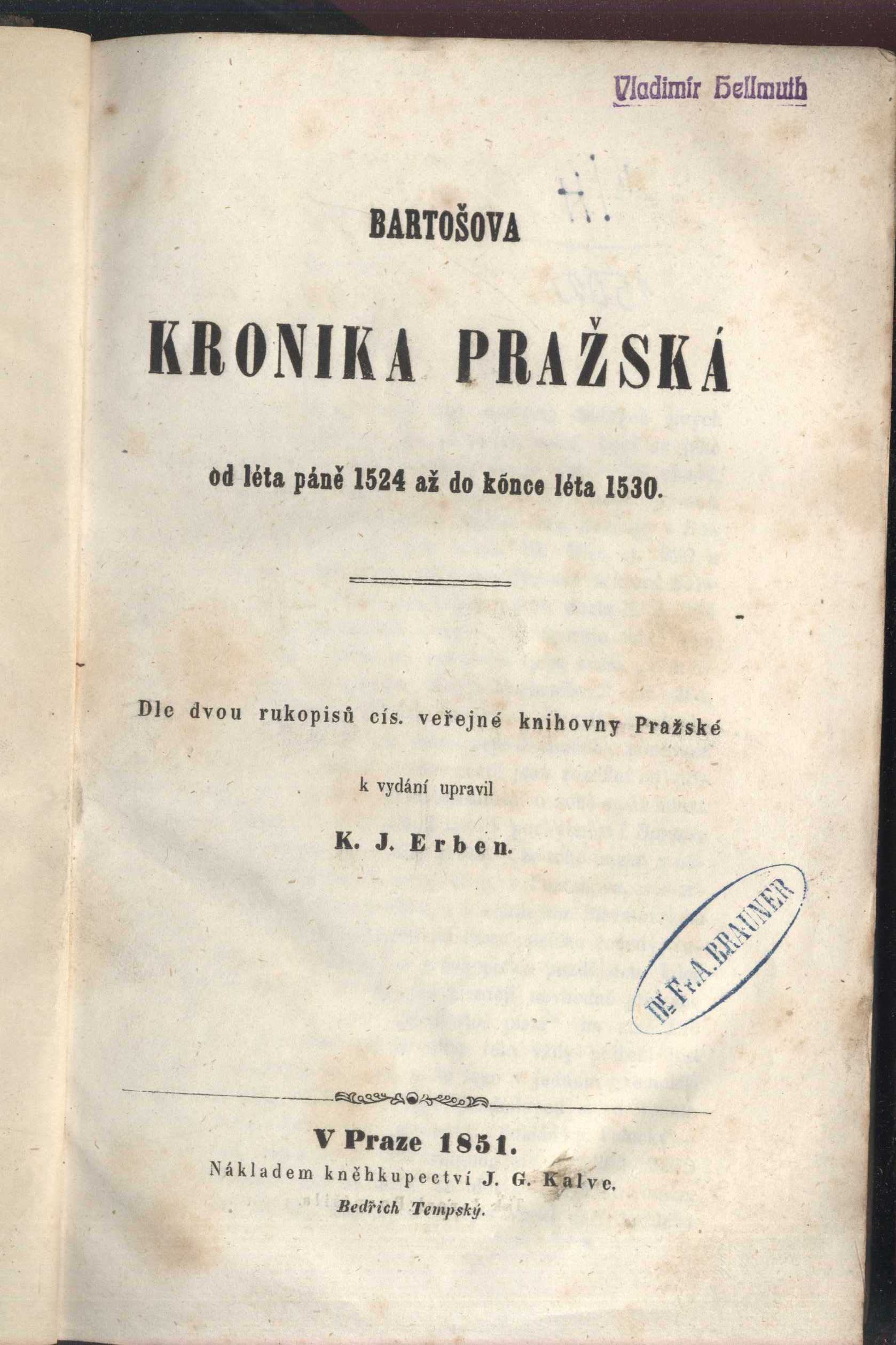 Názvové údaje Kröners Taschenausgabe Záhlaví-korpor. Alfred Kröner (Leipzig, Německo) (Autor) (Nakladatel, vydavatel) Další autoři J. G. Calve'sche Buchhandlung (knihkupectví a nakladatelství) (Knihkupec) Radelli & Hille (Leipzig, Německo) (Tiskař) Nakladatel Leipzig : Alfred Kröner Verlag, [ca po r. 1920] Výrobce Radelli & Hille) Rozsah [32] s. : il. Klíčová slova německá literatura * německá nakladatelství * nakladatelé * nakladatelská činnost * nakladatelství * katalog * katalog knih * katalog nakladatelství * r. 1939 Počet ex. 1, z toho volných 1 Druh dok. monografie Signatura KaG XL B2 123/2 Názvové údaje Bartošova kronika pražská od léta Páně 1524 až do konce léta 1530 / dle dvou rukopisů cís. veřejné knihovny Pražské k vydání upravil K. J. Erben Autor Bartoš Písař, asi 1470-asi 1535 (Autor) Další autoři Erben, Karel Jaromír, 1811-1870 (Editor) (Autor úvodu atd.) Brauner, František August, 1810-1880 (Dřívější majitel) Korp. J. G. Calve'sche Buchhandlung (knihkupectví a nakladatelství) (Nakladatel, vydavatel) Jaroslav Pospíšil (nakladatelství, tiskárna, knihkupectví) (Tiskař) Nakladatel V Praze : J. G. Kalve, 1851 Výrobce (Tisk Jarosl. Pospíšila) Rozsah viii, 375 s. Klíčová slova česká literatura * Praha * pragensia * kronika * kroniky * stol. 16. * humanismus Počet ex. 1, z toho volných 1 Druh dok. monografie Signatura VHB 0214 Názvové údaje Literarisches Skizzenbuch : gessammelte Aufsätze : mit dem Bildnis des Verfassers / von Josef Bayer Osobní jméno Bayer, Josef, 1827-1910 (Autor) Další autoři Karásek ze Lvovic, Jiří, 1871-1951 (Autor podpisu) Korp. J. G. Calve'sche Buchhandlung (knihkupectví a nakladatelství) (Nakladatel, vydavatel) Carl Bellmann (nakladatelství) (Tiskař) Nakladatel Prag : J. G. Calve'sche k. u. k. Hof- u. Universitäts-Buchhandlung, 1905 Výrobce (Carl Bellmann) Rozsah 358 s., [1] l. obr. příl. : il. Osobní hesla Goethe, Johann Wolfgang von, 1749-1832 - německý básník, dramatik, prozaik a vědec * Lessing, Gotthold Ephraim, 1729-1781 - něm. osvícenec, dramatik a literát * Shakespeare, William, 1564-1616 - anglický dramatik a básník Klíčová slova německá literatura * estetika * filologie * literární historie * studie * interpretace * Goethe J. W. * Lessing G. E. * Faust Počet ex. 1, z toho volných 1 Druh dok. monografie Signatura KaG XXII A 71 Názvové údaje Beiträge zur Geschichte der königl. Stadt Eger und des Eger'schen Gebiets : aus Urkunden / Joseph Sebast. Grüner Osobní jméno Grüner, Joseph Sebastian, 1780-1864 (Autor) Další autoři Calve, Jan Bohumír, 1757-1805 (Knihkupec) Korp. Bohumil Haase a synové (tiskárna, nakladatelství, knihkupectví) (Tiskař) J. G. Calve'sche Buchhandlung (knihkupectví a nakladatelství) (Nakladatel, vydavatel) Nakladatel Prag : J. G. Calve'sche Buchhandlung, 1843 Výrobce Gottlieb Haase Söhne) Rozsah viii, 102, 2 s. Klíčová slova česká literatura * Čechy * Chebsko * Cheb Počet ex. 2, z toho volných 2 Druh dok. monografie Signatura L XXI c 37, L XXI c 33 Názvové údaje Mluvnice polského jazyka / od Václava Hanky Osobní jméno Hanka, Václav, 1791-1861 (Autor) Další autoři J. G. Calve'sche Buchhandlung (knihkupectví a nakladatelství) (Nakladatel, vydavatel) Nakladatel W Praze : Slad J.G. Kalvovsko knihkupectví, 1850 Rozsah xxiv, 171, 5 s. ; 8° Klíčová slova mluvnice * polština Počet ex. 2, z toho volných 2 Druh dok. monografie Signatura L II f 20, L III e 50 Názvové údaje Srovnávací mluvnice jazyka českého a slovenského / sepsal Martin Hattala Osobní jméno Hattala, Martin, 1821-1903 (Autor) Další autoři Jeřábková, Kateřina, činná 1827-1862 (Tiskař) Korp. J. G. Calve'sche Buchhandlung (knihkupectví a nakladatelství) (Nakladatel, vydavatel) Nakladatel V Praze : Nákladem Calveova kněhkupectví, 1857 Výrobce Praha : Tiskem Kateřiny Jeřábkové 1857 Rozsah xix, 3, 330 stran Klíčová slova česká literatura * naučná literatura * slovenská literatura * mluvnice * český jazyk * čeština * gramatika Počet ex. 5, z toho volných 5 Druh dok. monografie Signatura L XVII b 21, L VII e 6, L II e 14, L xxx, KaG XIX A 46 Názvové údaje Srovnávací mluvnice jazyka českého a slovenského / sepsal Martin Hattala Osobní jméno Hattala, Martin, 1821-1903 (Autor) Další autoři J. G. Calve'sche Buchhandlung (knihkupectví a nakladatelství) (Nakladatel, vydavatel) Nakladatel V Praze : Nákladem Calve-ova kněhkupectví, 1857 Rozsah xix, 3, 330 s. Klíčová slova jazykověda * český jazyk * slovenský jazyk * čeština * mluvnice * srovnávací mluvnice Počet ex. 1, z toho volných 1 Druh dok. monografie Signatura L XXI b 5 Názvové údaje Tentamen Historicum illustrandis rebus anno 1409 in Universitate Pragena gestis / exaratum et editum a Joanne Theobaldo Held, quum ineunte mense Novembri 1827 se Magnificio Magistratu abdicaret Osobní jméno Held, Jan Theobald, 1770-1851 (Autor) Další autoři J. G. Calve'sche Buchhandlung (knihkupectví a nakladatelství) (Nakladatel, vydavatel) Nakladatel Pragae : Apud J.G. Calve, [1827]? Rozsah 2, 62, 2 s. ; 8° Klíčová slova latinská literatura * historie Počet ex. 1, z toho volných 1 Druh dok. monografie Signatura L VII f 22 Názvové údaje Hus und Hieronymus / studie v. Josef Alexander Helfert Osobní jméno Helfert, Joseph Alexander von, 1820-1910 (Autor) Další autoři J. G. Calve'sche Buchhandlung (knihkupectví a nakladatelství) (Nakladatel, vydavatel) Nakladatel Prag : Verlag der J.G. Calve´schen Buchhandlung (F. Tempsky), 1853 Rozsah 8, 332 s. ; 8° Klíčová slova německy psaná literatura * studie * historie * dějiny * stol. 15. Počet ex. 2, z toho volných 2 Druh dok. monografie Signatura K V VII 23, L XVIII a 80 Názvové údaje König Ottokar : Trauerspiel in fünf Akten und einem Vorspiele / von Uffo Horn Osobní jméno Horn, Uffo Daniel, 1817-1860 (Autor) Další autoři J.