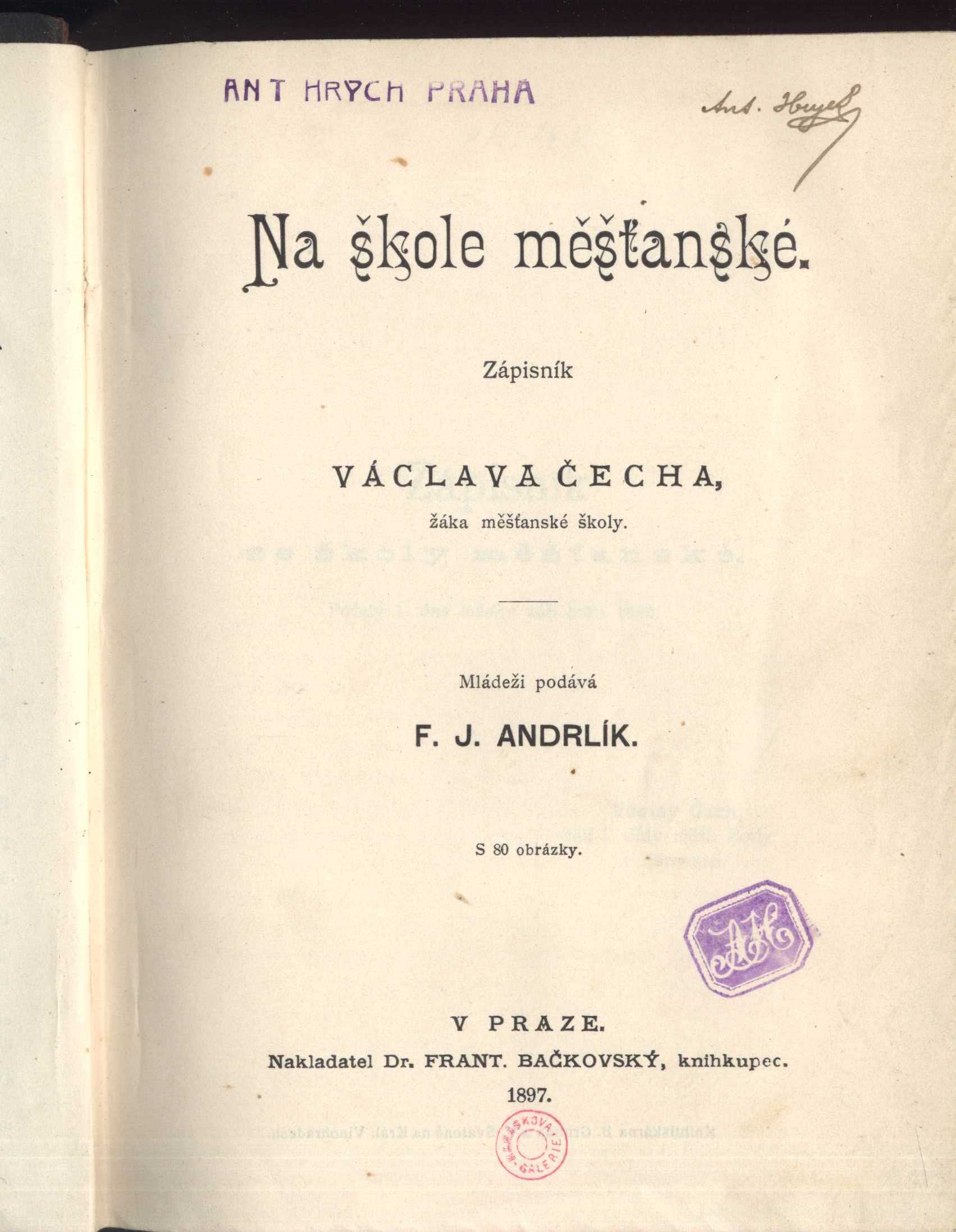 Názvové údaje Utíkejte, Prajzi jdou! : příhody "jednoho ženicha" na útěku v roce 1866 / napsal Pavel Albieri Osobní jméno Albieri, Pavel, 1861-1901 (Autor) Další autoři Knihtiskárna B. Grunda a V. Svatoně (Tiskař) Dr. František Bačkovský (nakladatelství) (Nakladatel, vydavatel) Nakladatel V Praze : Frant. Bačkovský, 1894 Výrobce Knihtiskárna B. Grunda a V. Svatoně Rozsah 198 stran Klíčová slova česká próza * české povídky * povídky Počet ex. 1, z toho volných 1 Druh dok. monografie Signatura P 48 f 24 Názvové údaje Na škole měšťanské : zápisník Václava Čecha, žáka měšťanské školy / mládeži podává F. J. Andrlík Osobní jméno Andrlík, František Josef, 1852-1939 (Autor) Další autoři Hrych, Antonín (Dřívější majitel) (Autor podpisu) Korp. Dr. František Bačkovský (nakladatelství) (Nakladatel, vydavatel) Knihtiskárna B. Grunda a V. Svatoně (Tiskař) Nakladatel V Praze : Frant. Bačkovský, 1897 Výrobce Knihtiskárna B. Grunda a V. Svatoně) Rozsah 377 s. : il. Klíčová slova česká literatura * česká próza * literatura pro děti * literatura pro děti a mládež * literatura pro mládež * deník Počet ex. 1, z toho volných 1 Druh dok. monografie Signatura KaG II B2 36 Názvové údaje Za uměním : obrázek ze života českého umělce : dospívající mládeži / napsal F. J. Andrlík Osobní jméno Andrlík, František Josef, 1852-1939 (Autor) Další autoři Dr. František Bačkovský (nakladatelství) (Nakladatel, vydavatel) Knihtiskárna B. Grunda a V. Svatoně (Tiskař) Nakladatel V Praze : Nakladatel Dr. Frant. Bačkovský, knihkupec, 1896 Výrobce Knihtiskárna B. Grunda a V. Svatoně) Rozsah 79 s. : il. ; 21 cm Osobní hesla Lukes, Jan Ludvík, 1824-1906 - český pěvec Klíčová slova česká literatura * próza * literatura pro děti a mládež * beletrizované životopisy * operní pěvci * Lukes J. L. * obrazové přílohy Druh dok. monografie Názvové údaje Ethiopská lilie : romanetto / napsal J. Arbes Osobní jméno Arbes, Jakub, 1840-1914 (Autor) Další autoři Dr. František Bačkovský (nakladatelství) (Nakladatel, vydavatel) Knihtiskárna B. Grunda a V. Svatoně (Tiskař) Nakladatel V Praze : Frant. Bačkovský, 1891 Výrobce Knihtiskárna B. Grunda a V. Svatoně Rozsah 250 stran Klíčová slova česká próza * romaneta Počet ex. 1, z toho volných 1 Druh dok. monografie Signatura P 120 d 55 Názvové údaje Persekuce lidu českého v letech 1869-1873 / dodatkem k druhému vydání spisu "Pláč koruny České" napsal J. Arbes Osobní jméno Arbes, Jakub, 1840-1914 (Autor) Další autoři Kuncová, A. (Dřívější majitel) Korp. Dr. František Bačkovský (nakladatelství) (Nakladatel, vydavatel) Knihtiskárna B. Grunda a V. Svatoně (Tiskař) Nakladatel V Praze : Dr. Frant. Bačkovský, 1896 Výrobce Knihtiskárna B. Grunda a V. Svatoně Rozsah 422 stran Klíčová slova česká literatura * česká politika * Rakousko-Uhersko * Rakousko-Uherská monarchie * Rakousko * perzekuce * vlastenectví * dokumenty * procesy * stol. 19., léta 60.-70. Počet ex. 5, z toho volných 5 Druh dok. monografie Signatura KaG XXXII A 282/přív.1, KaG LX C 23/přív.1, V VIII b 4, M 74 f 45, P 34 b 24 Názvové údaje Pláč koruny České, neboli, Persekuce lidu českého v letech 1868-1873 / J. Arbes Osobní jméno Arbes, Jakub, 1840-1914 (Autor) Další autoři Kuncová, A. (Dřívější majitel) Korp. Dr. František Bačkovský (nakladatelství) (Nakladatel, vydavatel) Knihtiskárna B. Grunda a V. Svatoně (Tiskař) Nakladatel V Praze : Dr. Frant. Bačkovský, 1894 Výrobce Knihtiskárna B. Grunda a V. Svatoně Rozsah 432 stran Klíčová slova česká literatura * česká politika * Rakousko-Uhersko * Rakousko-Uherská monarchie * Rakousko * perzekuce * vlastenectví * dokumenty * procesy * stol. 19., léta 60.-70. Počet ex. 4, z toho volných 4 Druh dok. monografie Signatura KaG XXXII A 282, KaG LX C 23, P 65 a 15, M 75 b 433 Názvové údaje Pro bratra - socialistu : společenský román / od J. Arbesa Osobní jméno Arbes, Jakub, 1840-1914 (Autor) Další autoři Dr. František Bačkovský (nakladatelství) (Nakladatel, vydavatel) Knihtiskárna B. Grunda a V. Svatoně (Tiskař) Nakladatel V Praze : Frant. Bačkovský, 1894 Výrobce Knihtiskárna B. Grunda a V. Svatoně Rozsah 256 stran Klíčová slova česká literatura * česká próza * román * stol. 19., léta 90. Počet ex. 5, z toho volných 5 Druh dok. monografie Signatura KaG XXXI A 84, KaG XLI G2 32, KY VI 68, P 32 e 34, KZ V 72 Názvové údaje Dějiny řádu Tovaryšstva Ježíšova a jeho působení vůbec a v zemích království Českého zvláště / sepsal Tomáš V. Bílek Osobní jméno Bílek, Tomáš V. (Autor) Další autoři Dr. František Bačkovský (nakladatelství) (Nakladatel, vydavatel) Knihtiskárna B. Grunda a V. Svatoně (Tiskař) Nakladatel V Praze : Frant. Bačkovský, 1896 Výrobce Na Král. Vinohradech : Knihtiskárna B. Grunda a V. Svatoně Rozsah 550 stran ; 23 cm Klíčová slova české země * dějiny Čech * Tovaryšstvo Ježíšovo * jezuité * rekatolizace * řeholní řády Počet ex. 1, z toho volných 1 Druh dok. monografie Signatura M 121 e 16 Názvové údaje Statky a jmění kollejí jesuitských, klášterů, kostelů, bratrstev a jiných ústavů v království Českém od císaře Josefa II. zrušených / dle pramenů původních sepsal Tomáš V. Bílek Osobní jméno Bílek, Tomáš Václav, 1819-1903 (Autor) Další autoři Dr. František Bačkovský (nakladatelství) (Nakladatel, vydavatel) Knihtiskárna B. Grunda a V. Svatoně (Tiskař) Nakladatel V Praze : Frant. Bačkovský, 1893 Výrobce (Knihtiskárna B. Grunda a V. Svatoně) Rozsah 472 s. Klíčová slova česká literatura * česká historie * české dějiny * církevní dějiny * dějiny církve * dějiny katolické církve * Josef II. římskoněmecký císař * kláštery * české kláštery * zrušené kláštery