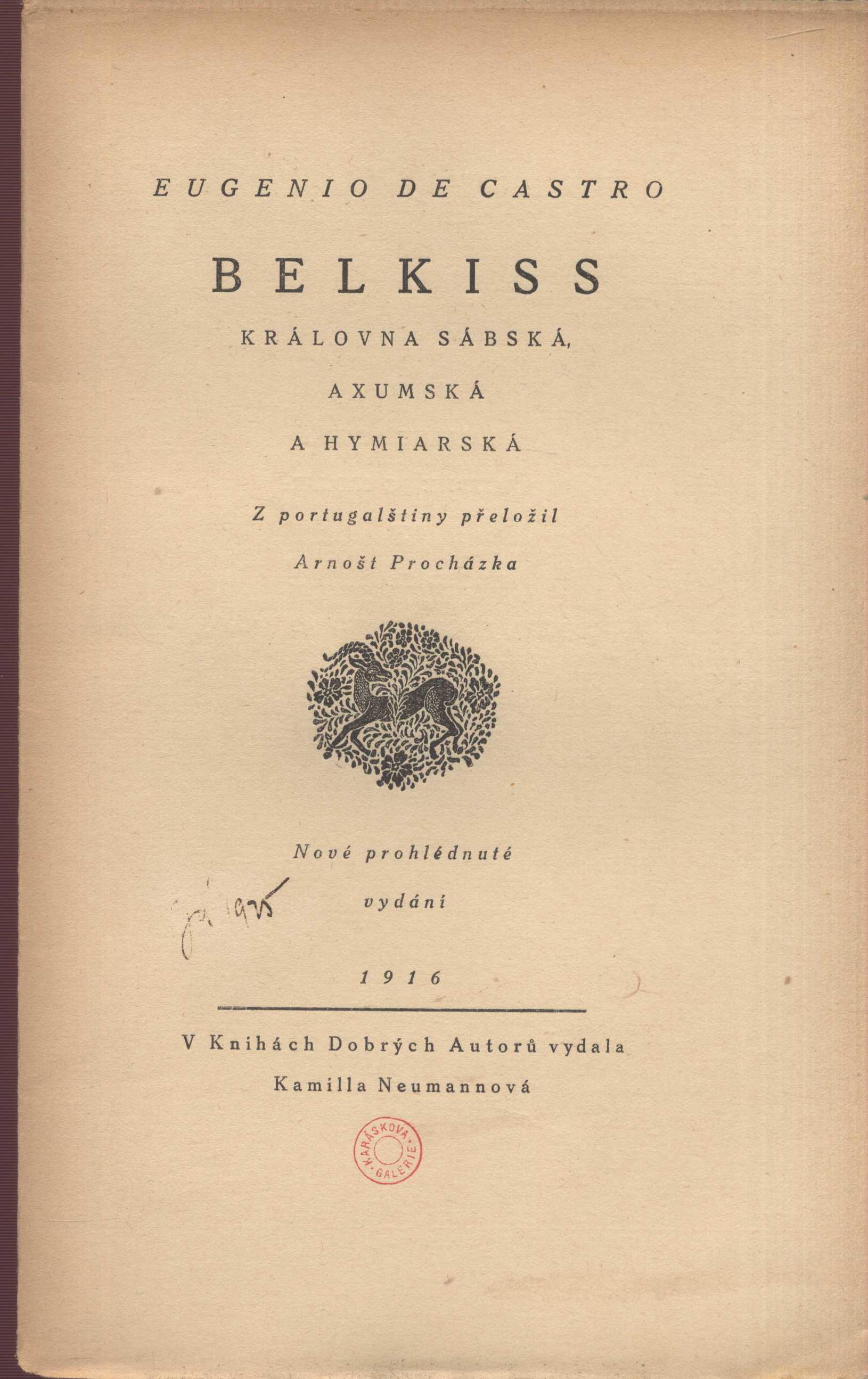 Názvové údaje Osamělý / Juhani Aho ; [knihu tuto z finštiny přeložil Ivan Schulz ; vypravil Miloš Klicman] Osobní jméno Aho, Juhani, 1861-1921 (Autor) Další autoři Schulz, Ivan, 1871-1935 (Překladatel) Klicman, Miloš František, 1890-1957 (Ilustrátor) (Knižní grafik) Korp. Nakladatelství Kamilla Neumannová (Nakladatel, vydavatel) Lidová knihtiskárna J. Skalák a spol. (Tiskař) Nakladatel V Praze : Knihy dobrých autorů, Kamilla Neumannová, 1912 Výrobce (vytiskla Knihtiskárna J. Skaláka a spol.) Rozsah 94 s. : il. ; 21 cm Klíčová slova finská literatura * próza * překlad * novela Počet ex. 1, z toho volných 1 Druh dok. monografie Signatura Topič 0303 Názvové údaje Osamělý / Juhani Aho ; knihu tuto z finštiny přeložil Ivan Schulz ; vypravil Miloš Klicman Osobní jméno Aho, Juhani, 1861-1921 (Autor) Další autoři Klicman, Miloš František, 1890-1957 (Grafický technik) Schulz, Ivan, 1871-1935 (Překladatel) Hellmuthová, Marta, 1917-1988 (Dřívější majitel) Neumannová, Kamila, 1874-1956 (Nakladatel, vydavatel) Korp. Nakladatelství Kamilla Neumannová (Nakladatel, vydavatel) Lidová knihtiskárna J. Skalák a spol. (Tiskař) Nakladatel V Praze : Kamilla Neumannová, 1912 Výrobce V Praze : Knihtiskárna J. Skaláka a spol., 1912 Rozsah 94 stran Klíčová slova finská literatura * prózy * novely Počet ex. 4, z toho volných 4 Druh dok. monografie Signatura Hoffmeister 0374, VMartínek 0958, VHB 2972, P 113 e 6 Názvové údaje Kresby k "Sirotku" / Mikuláš Aleš ; rozborem doprovází František Žákavec ; Josef Váchal Osobní jméno Aleš, Mikoláš, 1852-1913 (Ilustrátor) Další autoři Žákavec, František, 1878-1937 (Autor komentáře) Váchal, Josef, 1884-1969 Korp. B. Kočí (nakladatelství a knihkupectví) (Nakladatel, vydavatel) Lidová knihtiskárna J. Skalák a spol. (Tiskař) Nakladatel Praha : B. Kočí, 1917 Výrobce (Tiskem Lidové knihtiskárny J. Skalák a spol.) Rozsah 19 s. : il. Klíčová slova česká literatura * české písně * národní písně * lidové písně * česká kresba * čeští malíři * Aleš M. * stol. 19. Počet ex. 1, z toho volných 1 Druh dok. monografie Signatura Váchal 217 Názvové údaje Kresby k Sirotku / Mikuláš Aleš ; přístupným rozborem doprovází František Žákavec Osobní jméno Aleš, Mikoláš, 1852-1913 (Ilustrátor) Další autoři Žákavec, František, 1878-1937 (Autor úvodu atd.) Korp. B. Kočí (nakladatelství a knihkupectví) (Nakladatel, vydavatel) Lidová knihtiskárna J. Skalák a spol. (Tiskař) Nakladatel V Praze : Vede a vydává nakladatel B. Kočí, 1917 Výrobce (Tiskem Lidové knihtiskárny J. Skalák a spol.) Rozsah 19 s., [14] l. obr. příl. : il. ; 16 cm Klíčová slova česká literatura * české písně * národní písně * lidové písně * česká kresba * čeští malíři * Aleš M. * stol. 19. * r. 1917 Počet ex. 2, z toho volných 2 Druh dok. monografie Signatura Holan 1631, AVrbova 377 Názvové údaje Ex Ponto / Ivo Andrić ; ze srbochorvatštiny přeložil Josef Pelíšek Osobní jméno Andrić, Ivo, 1892-1975 (Autor) Další autoři Pelíšek, Josef, 1889-1969 (Překladatel) Minařík, Stanislav, 1884-1944 (Nakladatel, vydavatel) Bartulović, Niko, 1890-1943 (Autor úvodu atd.) Korp. Lidová knihtiskárna J. Skalák a spol. (Tiskař) Stanislav Minařík (nakladatelství) (Nakladatel, vydavatel) Nakladatel Na Smíchově : Stanislav Minařík, 1919 Výrobce Tiskem J. Skaláka) Rozsah 131 s. Klíčová slova srbochorvatská literatura * srbochorvatská poezie * básně * próza * básně v próze * reflexe * vězení * vězeňská literatura * vězeňská próza * lyrika * lyrizovaná próza * stol. 20., léta 10. Počet ex. 2, z toho volných 2 Druh dok. monografie Signatura KaG I C2 59, VHB 1673 Názvové údaje Jediný návrat / Zdeněk Bár ; [v úpravě a s kresbami V. Bilovského] Osobní jméno Bár, Zdeněk, 1904-1980 (Autor) (Dedikátor) Další autoři Beneš Buchlovan, Bedřich, 1885-1953 (Dedikant) (Dřívější majitel) (Dárce) Bilovský, Václav, 1902-1967 (Ilustrátor) (Nakladatel, vydavatel) Korp. Oborný a Bradna (Moravská Ostrava, Česko) (Tiskař obrazu) Lidová knihtiskárna J. Skalák a spol. (Tiskař) Nakladatel V Moravské Ostravě : V. Bilovský, 1937 Výrobce (Lidová knihtiskárna) Rozsah 9 s. : il. Klíčová slova česká literatura * stol. 20., léta 30. * bibliofilská vydání * bibliofilské tisky * česká próza * bibliofilie Počet ex. 1, z toho volných 1 Druh dok. monografie Signatura KaG LXI 34 Názvové údaje Peklo / Henri Barbusse ; přeložil Jindřich Hořejší Osobní jméno Barbusse, Henri, 1873-1935 (Autor) Další autoři Hořejší, Jindřich, 1886-1941 (Překladatel) (Dedikátor) Hořejší, Růžena, 1899- (Dedikant) Korp. Ústřední dělnické nakladatelství a knihkupectví (Nakladatel, vydavatel) Lidová knihtiskárna J. Skalák a spol. (Tiskař) Nakladatel V Praze : Ústřední dělnické nakladatelství a knihkupectví (Ant. Svěcený), 1920 Výrobce Lidová knihtiskárna (J. Skalák a spol.) Rozsah 227 stran ; 20 cm Klíčová slova francouzská literatura * překlady do češtiny * romány Počet ex. 3, z toho volných 3 Druh dok. monografie Signatura VMartínek 1536, AHO 0478, AHO 0486 Názvové údaje Hudba pramenů / Otakar Březina ; obrazy doprovodil František Bílek Osobní jméno Březina, Otokar, 1868-1929 (Autor) (Dedikátor) (Autor podpisu) Další autoři Bílek, František, 1872-1941 (Ilustrátor) Durych, Jaroslav, 1886-1962 (Dedikant) Holman, Petr, 1951-2019 (Korektor tištěných materiálů) Bělohlávek, Bedřich, 1902-1991 (Autor podpisu) Korp. Odkaz (nakladatelství) (Nakladatel, vydavatel) Lidová knihtiskárna J. Skalák a spol. (Tiskař) Nakladatel V Praze : nákladem Vydavatelského sdružení Odkaz, 1918 Výrobce Lidová knihtiskárna J. Skalák a spol. Rozsah 51 stran, 10 nečíslovaných listů obrazových příloh : ilustrace ; 23 cm Kl