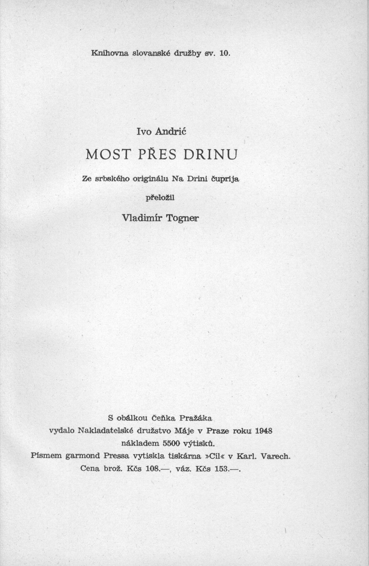 Názvové údaje Elli / Juhani Aho ; z finštiny přeložil K. Turnwald Osobní jméno Aho, Juhani, 1861-1921 (Autor) Další autoři Turnwald, Kristian, 1896-1970 (Překladatel) Korp. Jiří Jelen (tiskárna) (Tiskař) Nakladatelské družstvo Máje (Nakladatel, vydavatel) Nakladatel V Praze : Nakladatelské družstvo Máje, 1926 Výrobce Na Mělníce : Tiskem Jiřího Jelena Rozsah 407 stran, 11 stran obrazových příloh Klíčová slova finská literatura * próza * romány Počet ex. 2, z toho volných 2 Druh dok. monografie Signatura KaG XXVIII G3 95, P 86 d 25 Názvové údaje Mrtvé moře / Jorge Amado ; [z portugalského originálu ... přeložila Helga Martenová] Osobní jméno Amado, Jorge, 1912-2001 (Autor) Další autoři Martenová, Helga (Překladatel) Korp. Nakladatelské družstvo Máje (Nakladatel, vydavatel) Svoboda (tiskárna) (Tiskař) Nakladatel V Praze : vydalo Nakladatelské družstvo Máje pro Literární klub Máj, 1948 Výrobce knihtiskárna Svoboda) Rozsah 273 s. ; 22 cm Klíčová slova brazilská literatura * portugalsky psaná literatura * próza * překlad * román Počet ex. 1, z toho volných 1 Druh dok. monografie Signatura Máj 055 Názvové údaje Most přes řeku Drinu : román / Ivo Andrić ; [ze srbského originálu ... přeložil Vladimír Togner ; s obálkou Čeňka Pražáka] Osobní jméno Andrić, Ivo, 1892-1975 (Autor) Další autoři Togner, Vladimír, 1909- (Překladatel) Pražák, Čeněk, 1914-1996 (Autor obálky) Korp. Nakladatelské družstvo Máje (Nakladatel, vydavatel) Cíl (Karlovy Vary) (Tiskař) Nakladatel V Praze : Nakladatelské družstvo Máje, 1948 Výrobce tiskárna »Cíl«) Rozsah 387 s. ; 22 cm Osobní hesla Andrić, Ivo, 1892-1975 - srbský prozaik a básník Klíčová slova srbská literatura * próza * překlad * román * Bosna * 2. světová válka Počet ex. 1, z toho volných 1 Druh dok. monografie Signatura Máj 058a Názvové údaje Most přes řeku Drinu : román / Ivo Andrić ; [ze srbského originálu ... přeložil Vladimír Togner ; s obálkou Čeňka Pražáka] Osobní jméno Andrić, Ivo, 1892-1975 (Autor) Další autoři Togner, Vladimír, 1909- (Překladatel) Pražák, Čeněk, 1914-1996 (Autor obálky) Korp. Nakladatelské družstvo Máje (Nakladatel, vydavatel) Cíl (Karlovy Vary) (Tiskař) Nakladatel V Praze : Nakladatelské družstvo Máje, 1948 Výrobce tiskárna »Cíl«) Rozsah 387 s. ; 22 cm Osobní hesla Andrić, Ivo, 1892-1975 - srbský prozaik a básník Klíčová slova srbská literatura * próza * překlad * román * Bosna * 2. světová válka Počet ex. 1, z toho volných 1 Druh dok. monografie Signatura Máj 058 Názvové údaje Noc : povídky / Jiří Andrzejewski ; z polského originálu ... přeložila Helena Teigová Osobní jméno Andrzejewski, Jerzy, 1909-1983 (Autor) Další autoři Teigová, Helena, 1902-1986 (Překladatel) Korp. Nakladatelské družstvo Máje (Nakladatel, vydavatel) Studentská knihtiskárna (Tiskař) Nakladatel V Praze : vydalo Nakladatelské družstvo Máje pro Literární klub Máj, 1947 Výrobce (Studentská knihtiskárna) Rozsah 208 s. ; 21 cm Klíčová slova polská literatura * překlad * próza * povídky * Polsko * 2. světová válka Počet ex. 1, z toho volných 1 Druh dok. monografie Signatura Máj 073 Názvové údaje Noc : povídky / Jiří Andrzejewski ; [z polského originálu Noć přeložila Helena Teigová ; s obálkou Josefa Říhy ] Osobní jméno Andrzejewski, Jerzy, 1909-1983 (Autor) (Dedikátor) Další autoři Karásek ze Lvovic, Jiří, 1871-1951 (Dedikant) Stachová, Helena, 1931- (Překladatel) (Dedikátor) Říha, Josef, 1920-1994 (Autor obálky) Korp. Nakladatelské družstvo Máje (Nakladatel, vydavatel) Studentská knihtiskárna (Tiskař) Nakladatel V Praze : Nakladatelské družstvo Máje, 1947 Výrobce (Studentská knihtiskárna) Rozsah 208 s. Klíčová slova polská literatura * próza * povídky Počet ex. 1, z toho volných 1 Druh dok. monografie Signatura KaG XLI D 108 Názvové údaje Noc : povídky / Jiří Andrzejewski ; [z polského originálu ... přeložila Helena Teigová ; s obálkou Josefa Říhy] Osobní jméno Andrzejewski, Jerzy, 1909-1983 (Autor) Další autoři Teigová, Helena, 1902-1986 (Překladatel) Říha, Josef, 1920-1994 (Autor obálky) Korp. Nakladatelské družstvo Máje (Nakladatel, vydavatel) Studentská knihtiskárna (Tiskař) Nakladatel V Praze : Nakladatelské družstvo Máje, 1947 Výrobce (Studentská knihtiskárna) Rozsah 208 s. ; 22 cm Klíčová slova polská literatura * překlad * próza * povídky * Polsko * 2. světová válka Počet ex. 1, z toho volných 1 Druh dok. monografie Signatura Máj 099 Názvové údaje Cestující z Imperiálu / Louis Aragon ; z francouzského originálu ... přeložily V. Petříková a A. Bendová ; s obálkou Čeňka Pražáka Osobní jméno Aragon, Louis, 1897-1982 (Autor) Další autoři Petříková, Věra, 1903-1985 (Překladatel) Bendová, Alžběta (Překladatel) Pražák, Čeněk, 1914-1996 (Autor obálky) Sedloň, Michal, 1919-1982 (Překladatel) Korp. Nakladatelské družstvo Máje (Nakladatel, vydavatel) Svoboda (Ústí nad Labem) (Tiskař) Nakladatel V Praze : Nakladatelské družstvo Máje, 1948 Výrobce V Ústí n. L. : tiskárna Svoboda Rozsah 523 stran ; 22 cm Klíčová slova francouzská literatura * překlad * román * generační román * Francie * stol. 19.-20. * secese Počet ex. 3, z toho volných 3 Druh dok. monografie Signatura Máj 030, Máj 030a, Nezval 545 Názvové údaje Farská panička / napsal Jindřich Š. Baar Osobní jméno Baar, Jindřich Šimon, 1869-1925 (Autor) (Dedikátor) Další autoři Nakladatelské družstvo Máje (Nakladatel, vydavatel) Dr. Ed. Grégr a syn (nakladatelství, tiskárna) (Tiskař) Nakladatel V Praze : Nakladatelské družstvo Máje, [1906?] Rozsah 176, 411 s. Klíčová slova česká literatura * česká próza * česká beletrie * vesnický román Počet ex. 1, z toho volných 1 Druh dok. monog
