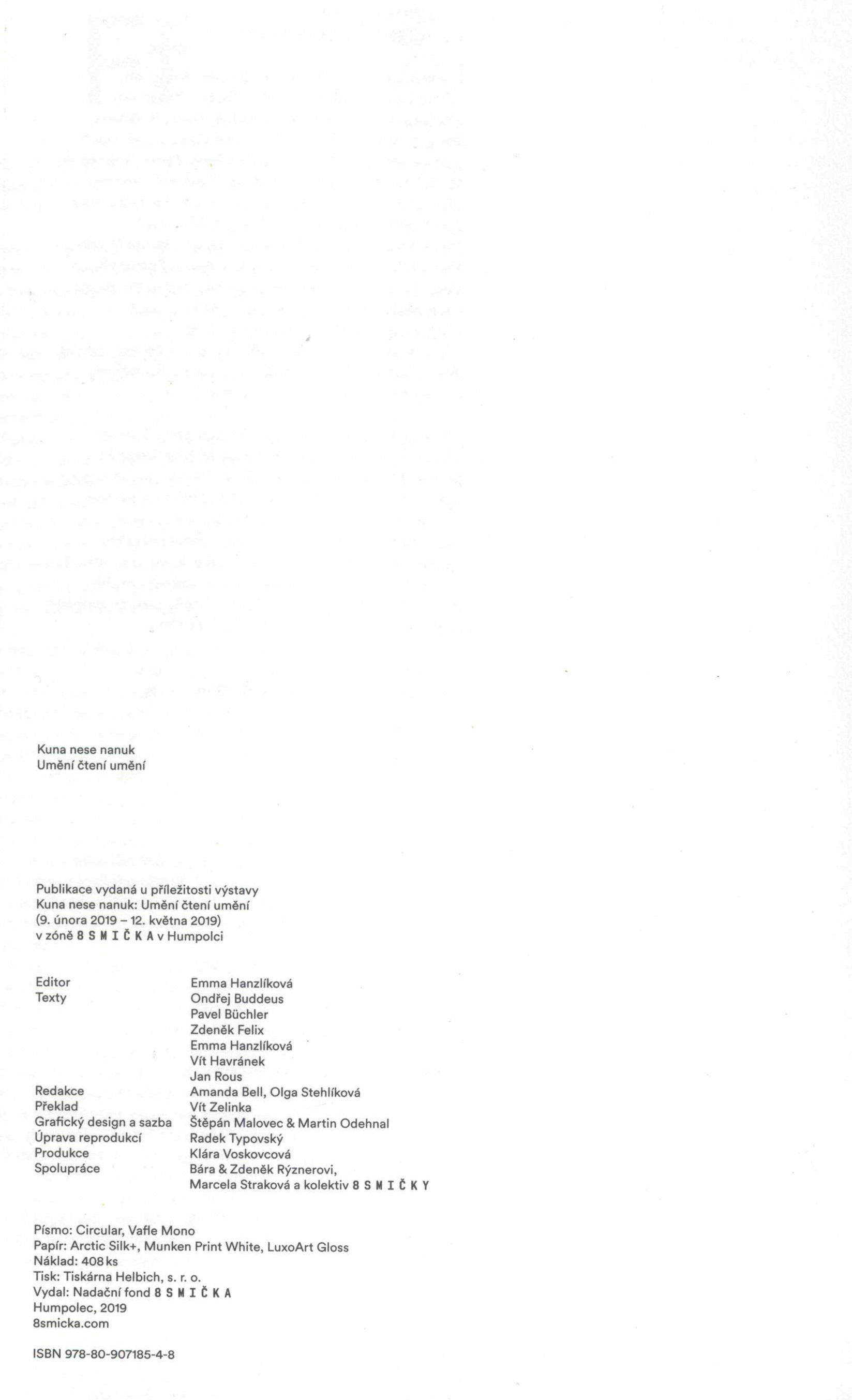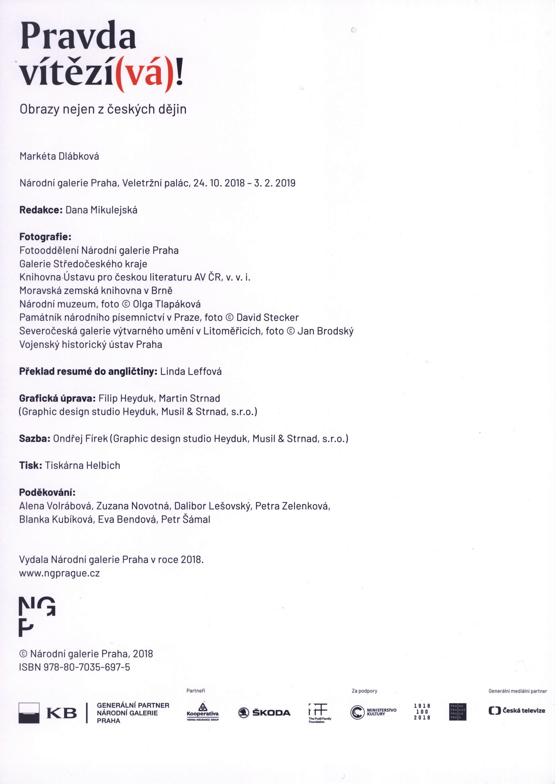 Názvové údaje Příběhy exilu : osudy exulantů z území bývalého Ruského impéria v meziválečném Československu = Stories of exile : the destinies of exiles from the territory of the former Russian empire in interwar Czechoslovakia = Istorii izgnanija : sud‘by èmigrantov s territorii byvšej Rossijskoj imperii v mežvojennoj Čechoslovakii / autoři textů: Lukáš Babka, Sergej Gagen, Ľubica Harbuľová, Dana Hašková, Jakub Hauser, Julie Jančárková, Daniela Kolenovská, Anastazie Kopřivová, Michaela Kuthanová, Oksana Pelenská, Miroslav Tomek, Olga Uhrová ; překlady: Moe Binarová, Jekatěrina Bobrakova-Timoškina, Melvyn Clarke, Barbara Day, Graeme Dibble, Sergej Gagen, Tereza Chlaňová, Michaela Lemeškinová, Anna Rossová Osobní jméno Babka, Lukáš, 1977- (Autor) (Překladatel) Další autoři Gagen, Serjej Ja. (Autor) (Překladatel) Harbuľová, Ľubica, 1962- (Autor) Hašková, Dana, 1965- (Autor) Hauser, Jakub, 1983- (Autor) (Editor) Jančárková, Julie, 1970- (Autor) Kolenovská, Daniela, 1976- (Autor) Kopřivová, Anastazie, 1936- (Autor) Kuthanová, Michaela, 1967- (Autor) Pelens‘ka, Oksana (Autor) Tomek, Miroslav, 1984- (Autor) Uhrová, Olga, 1948- (Autor) Binarová, Moe, 1981- (Překladatel) Bobrakova-Timoškina, Jekaterina, 1978- (Překladatel) Clarke, Melvyn (Překladatel) Day, Barbara, 1944- (Překladatel) Dibble, Graeme Kenneth, 1970- (Překladatel) Chlaňová, Tereza, 1974- (Překladatel) Lemeškinová, Michaela, 1978- (Překladatel) Rosová, Milena, 1971- (Překladatel) Korp. Památník národního písemnictví (muzeum literatury) (Nakladatel, vydavatel) Tiskárna Helbich (Tiskař) Nakladatel Praha : Památník národního písemnictví, 2018 Výrobce Tiskárna Helbich, a.s. Rozsah 335 stran : ilustrace (některé barevné), portréty, faksimile ; 28 cm Klíčová slova Rusové * Ukrajinci * ukrajinská emigrace * Bělorusové * imigranti * Československo * r. 1918-1939 * exil * Rusko * politická emigrace * kulturní život * exilový život * Rusko * r. 1918-1939 * kolektivní monografie * studie Počet ex. 2, z toho volných 2 Druh dok. monografie Signatura C12d 2439, C12d 2439a Názvové údaje Daniel Balabán : zpráva 2013 = report 2013 / [texty Yvona Ferencová, Edith Jeřábková / grafická úprava a sazba Petr Babák, Lukáš Kijonka] Osobní jméno Balabán, Daniel, 1957- (Umělec) Další autoři Ferencová, Yvona, 1962- (Autor úvodu atd.) (Editor) Jeřábková, Edith, 1970- (Autor úvodu atd.) Babák, Petr, 1967- (Knižní grafik) Kijonka, Lukáš, 1981- (Knižní grafik) Korp. Moravská galerie (Brno, Česko). Pražákův palác (Nakladatel, vydavatel) Tiskárna Helbich (Tiskař) Nakladatel V Brně : Moravská galerie, 2013 Rozsah [100] s. : il. (převážně barev.) ; 30 cm Osobní hesla Balabán, Daniel, 1957- - malíř, výtvarník Klíčová slova české výtvarné umění * české malířství * moderní malířství * čeští malíři * osobnosti * stol. 20.-21. * katalog výstavy Počet ex. 2, z toho volných 2 Druh dok. monografie Signatura C12d 1964, C12d 1964a Názvové údaje The nervous system : [Kunstverein Milano, December 2011 / text, collages, images, photographs, cover] Zbyněk Baladrán, Jiří Kovanda ; edited by Vít Havránek ; translation John Corner, Dan Morgan] Osobní jméno Baladrán, Zbyněk, 1973- (Umělec) (Autor úvodu atd.) Další autoři Kovanda, Jiří, 1953- (Umělec) (Autor úvodu atd.) Havránek, Vít, 1971- (Editor) Korp. Kunstverein Milano Tranzit.cz (nakladatelství) (Nakladatel, vydavatel) Tiskárna Helbich (Tiskař) Nakladatel Prague : Tranzit.cz ; Milano : Kunstverein ; Zurich : JRP/Ringier, 2013 Rozsah 193 s., [8] l. obr. příl. : il. (některé barev.) ; 21 cm Osobní hesla Baladrán, Zbyněk, 1973- - výtvarník * Kovanda, Jiří, 1953- - malíř a grafik Heslo korporace (zkrác. heslo korp.) : Nervous System (projekt) Klíčová slova české výtvarné umění * moderní umění * estetika * interpretace * rozhovory * výtvarné projekty * stol. 21. Počet ex. 1, z toho volných 1 Druh dok. ***nezařazeno*** Signatura C12b 15843 Názvové údaje Inteligence obrazu a jazyk dějin umění : výbor z textů / Michæl Baxandall ; výbor uspořádala a úvodní studii napsala Milena Bartlová ; přeložil Martin Pokorný Osobní jméno Baxandall, Michael, 1933-2008 (Autor) Další autoři Bartlová, Milena, 1958- (Sestavovatel, kompilátor) (Autor úvodu atd.) Pokorný, Martin, 1973- (Překladatel) Doležal, Kryštof, 1976- (Knižní grafik) Korp. Uměleckoprůmyslová škola (Praha, Česko) (Nakladatel, vydavatel) Tiskárna Helbich (Tiskař) (Tiskař obrazu) Nakladatel V Praze : Vysoká škola uměleckoprůmyslová, 2019 Výrobce [Brno] : Tiskárna Helbich Rozsah 240 stran : ilustrace (převážně barevné), faksimile ; 24 cm Předmětová hesla dějiny umění * history of art Klíčová slova britská literatura * anglická literatura * český překlad * výbor textů * výtvarné umění * jazyk * obraz * interpretace díla * obrazové přílohy Počet ex. 1, z toho volných 0, prezenčně 1 Druh dok. monografie Signatura MetC 0230 Názvové údaje Mezinárodní bienále grafického designu Brno 2014 : grafický design, vzdělávání a školy 16.6.-26.10.2014 = 26th International Biennial of Graphic Design Brno 2014 : graphic design, education and schools 16.6.-26.10. 2014 / koncepce katalogu Johannes Breyer, Fabian Harb, Tomáš Celizna, Adam Macháček, Radim Peško ; medailony autorů Robert Kotásek, Marta Sylvestrová ; anglický překlad Irma Charvátová, Tony Long ; český překlad Petr Dvořák, Robert Kotásek, Marta Sylvestrová, Martina Tlachová, Kateřina Tlachová ; grafické řešení Johannes Breyer, Fabian Harb ve spolupráci Tomáš Celizna, Adam Macháček, Radim Peško ; fotografie Kamil Till, Andrea Velnerová Osobní jméno Breyer, Johannes, 1987- (Autor koncepce) (Autor) (Jiná role) Další autoři Harb, Fabian, 1988- (Autor koncepce) (Auto