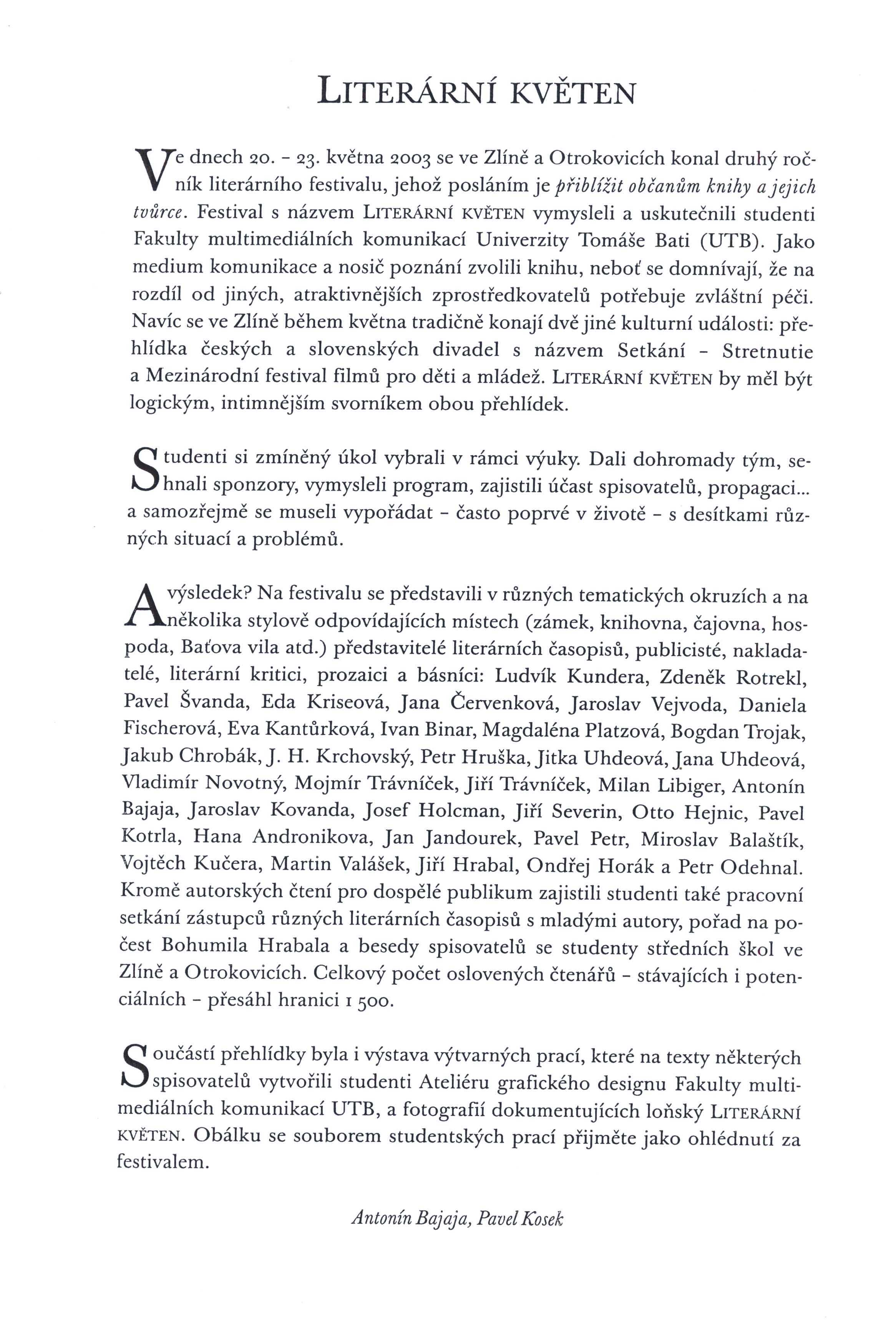 Názvové údaje AHA : autorská kniha / [ilustrácie] Tomáš Kompaník Osobní jméno Kompaník, Tomáš, 1988- (Ilustrátor) (Grafický technik) Další autoři Univerzita Tomáše Bati ve Zlíně. Fakulta multimediálních komunikací (Nakladatel, vydavatel) Nakladatel [Zlín] : Univerzita Tomáše Bati ve Zlíně, Fakulta multimediálních komunikací, 2012 Výrobce (Orman) Rozsah [296] s. : il. Klíčová slova grafický design * lidová tvorba * studijní práce Počet ex. 1, z toho volných 1 Druh dok. monografie Signatura NK/12 018 Názvové údaje Bible na jeden rok / navrhla, graficky upravila a vysázela Marie Čižmárová Osobní jméno Čižmárová, Marie, 1994- (Autor) (Knižní grafik) (Sazeč) Další autoři Univerzita Tomáše Bati ve Zlíně. Fakulta multimediálních komunikací (Nakladatel, vydavatel) (Jiná role) Centrum grafických papírů Olomouc (tiskařské a knihařské studio) (Tiskař) Nakladatel Ve Zlíně : FMK UTB, 2019 Výrobce Olomouc : graficke-papiry.cz Rozsah 1054 stran, 10 nečíslovaných stran : mapy ; 23,5 x 18 x 6 cm Klíčová slova česká literatura * studentské práce * diplomová práce * ateliéry * grafický design * multimediální umění * Bible * Starý zákon * Nový zákon * grafické zpracování * typografická úprava * Zlín * Česko * Nejkrásnější české knihy * r. 2019 Počet ex. 1, z toho volných 1 Druh dok. monografie Signatura NK/19 032 Názvové údaje Literární květen / za studentský tým Lenka Bajgarová Další autoři Bajgarová, Lenka (Editor) Korp. Literární květen (literární festival) Zlín, Česko Univerzita Tomáše Bati ve Zlíně. Fakulta multimediálních komunikací (Jiná role) Nakladatel Zlín : Univerzita Tomáše Bati, 2005 Rozsah 21 nečíslovaných listů Klíčová slova literární festival * čeští spisovatelé * české výtvarné umění * grafiky * umělecké náměty * obrazové publikace * Zlín * Kroměříž * Vsetín * Rožnov pod Radhoštěm * Česko * r. 2005 Počet ex. 1, z toho volných 1 Druh dok. monografie Signatura Kantůrková 0129 Názvové údaje Literární květen / Antonín Bajaja, Pavel Kosek Další autoři Bajaja, Antonín, 1942-2022 (Editor) Kosek, Pavel, 1972- (Editor) Korp. Literární květen (literární festival) Zlín, Česko Univerzita Tomáše Bati ve Zlíně. Fakulta multimediálních komunikací (Jiná role) Nakladatel Zlín : Univerzita Tomáše Bati, 2003 Rozsah 21 nečíslovaných listů Klíčová slova literární festival * čeští spisovatelé * české výtvarné umění * grafiky * umělecké náměty * obrazové publikace * Zlín * Otrokovice * Česko * r. 2003 Počet ex. 2, z toho volných 2 Druh dok. monografie Signatura Bbf V 0055, Kantůrková 0128 Názvové údaje Modern kamasutra / [grafická úprava, typografie Katka Orlíková] Další autoři Orlíková, Kateřina, 1986- (Knižní grafik) Korp. Univerzita Tomáše Bati ve Zlíně. Fakulta multimediálních komunikací (Nakladatel, vydavatel) Nakladatel Ve Zlíně : [Univerzita Tomáše Bati], 2008 Rozsah 59 s. : il. ; 15 cm Klíčová slova vysoké školy * Zlín * školní práce * grafika * typografie * Kámásútra Počet ex. 1, z toho volných 1 Druh dok. monografie Signatura C12a 4580 Názvové údaje Není drak ako drak : je to na draka / [navrhla a graficky zpracovala] Jana Náhliková Osobní jméno Náhliková, Jana (Autor) (Knižní grafik) Další autoři Univerzita Tomáše Bati ve Zlíně. Fakulta multimediálních komunikací (Nakladatel, vydavatel) Vach print (tiskárna) (Tiskař) Nakladatel Ve Zlíně : Univerzita Tomáše Bati, 2019 Výrobce V Bratislavě : Vach print Rozsah 95 nečíslovaných stran : ilustrace ; 18,5 cm Klíčová slova československá literatura * studentské práce * ilustrované vydání * učebnice * homonyma * čeština * slovenština * Nejkrásnější české knihy * r. 2019 Počet ex. 1, z toho volných 1 Druh dok. monografie Signatura NK/19 003 Názvové údaje Ženy o ženách : intimita tvorby českého ženského filmového a literárního dokumentu / Bára Baronová, Dita Pepe ; knižní design: Adéla Svobodová ; editace, jazyková redakce, korektury: Kateřina Kadlecová Osobní jméno Baronová, Barbora, 1980- (Autor) Další autoři Pepe, Dita, 1973- (Fotograf) Svobodová, Adéla, 1978- (Knižní grafik) Kadlecová, Kateřina, 1980- (Editor) Korp. Nakladatelství wo-men (Nakladatel, vydavatel) Univerzita Tomáše Bati ve Zlíně. Fakulta multimediálních komunikací (Nakladatel, vydavatel) Tiskárna Helbich (Tiskař) Nakladatel Praha : Wo-men ; a Zlín : Univerzita Tomáše Bati ve Zlíně, 2019 Výrobce Brno : Tiskárna Helbich, a.s. Rozsah 991 stran : barevné ilustrace, portréty ; 19 cm Předmětová hesla women documentarists - Czechia - 20th-21st centuries * women in film - Czechia - 20th-21st centuries * women in literature - Czechia - 20th-21st centuries * documentary film - Czechia - 20th-21st centuries * literary documentaries - Czechia - 20th-21st centuries * gender Klíčová slova česká literatura * odborná literatura * rozhovory * dokumentaristika * film * literatura * gender * dokumentaristky * osobní výpověď * Česko * stol. 20.-21. * Nejkrásnější české knihy * r. 2019 Počet ex. 1, z toho volných 1 Druh dok. monografie Signatura NK/19 005