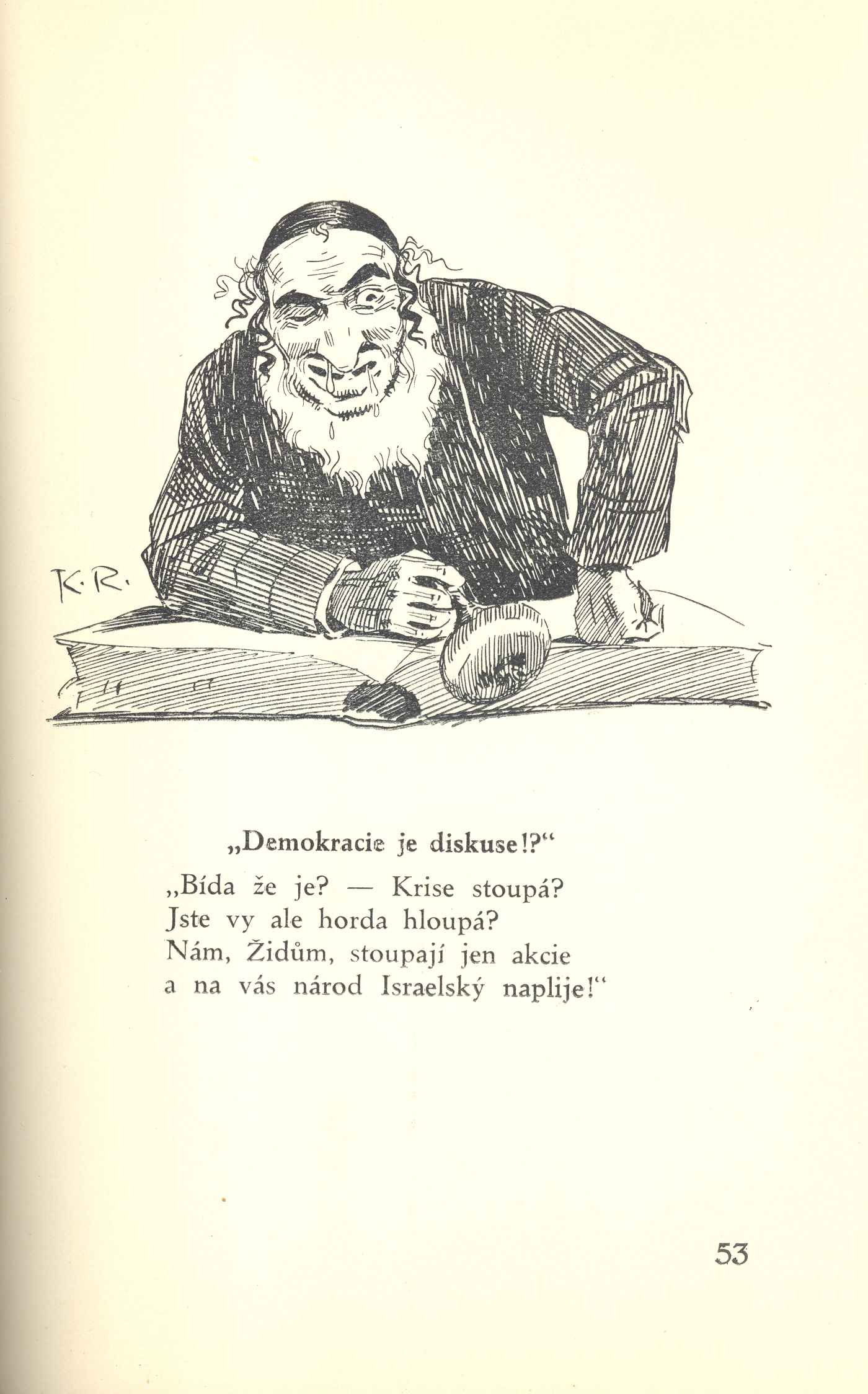 Klíčová slova česká literatura * výtvarné umění * české malířství * kresby * karikatury * antisemitismus * antisemitská ideologie * Židé * židovské dějiny * talmud * židovské náboženství * židovská otázka * první republika * stol. 20., léta 20.-40. * r. 1925