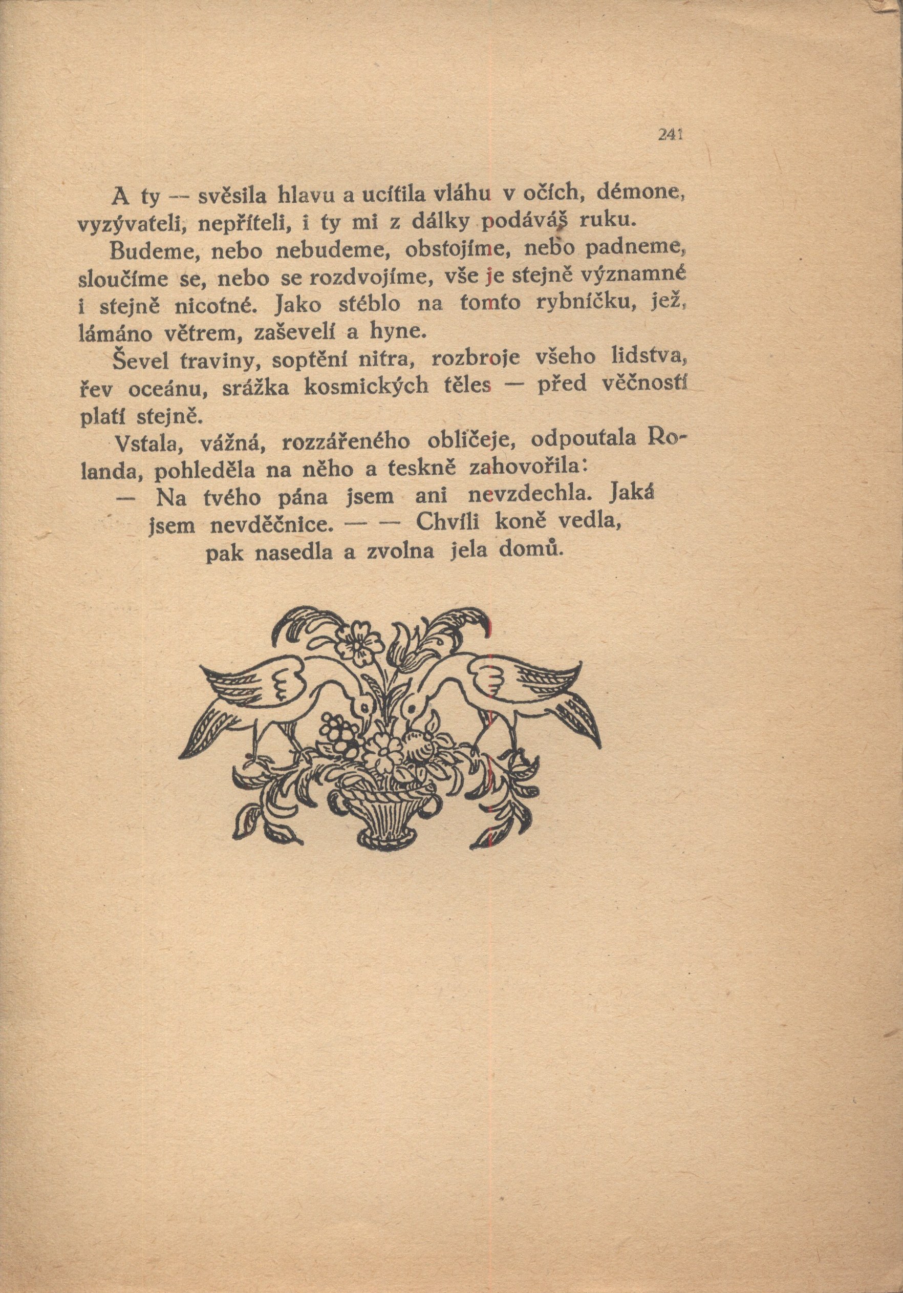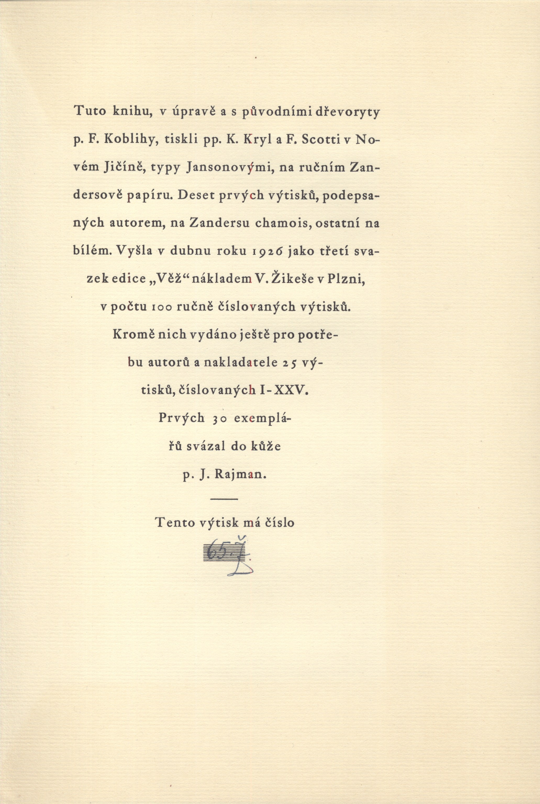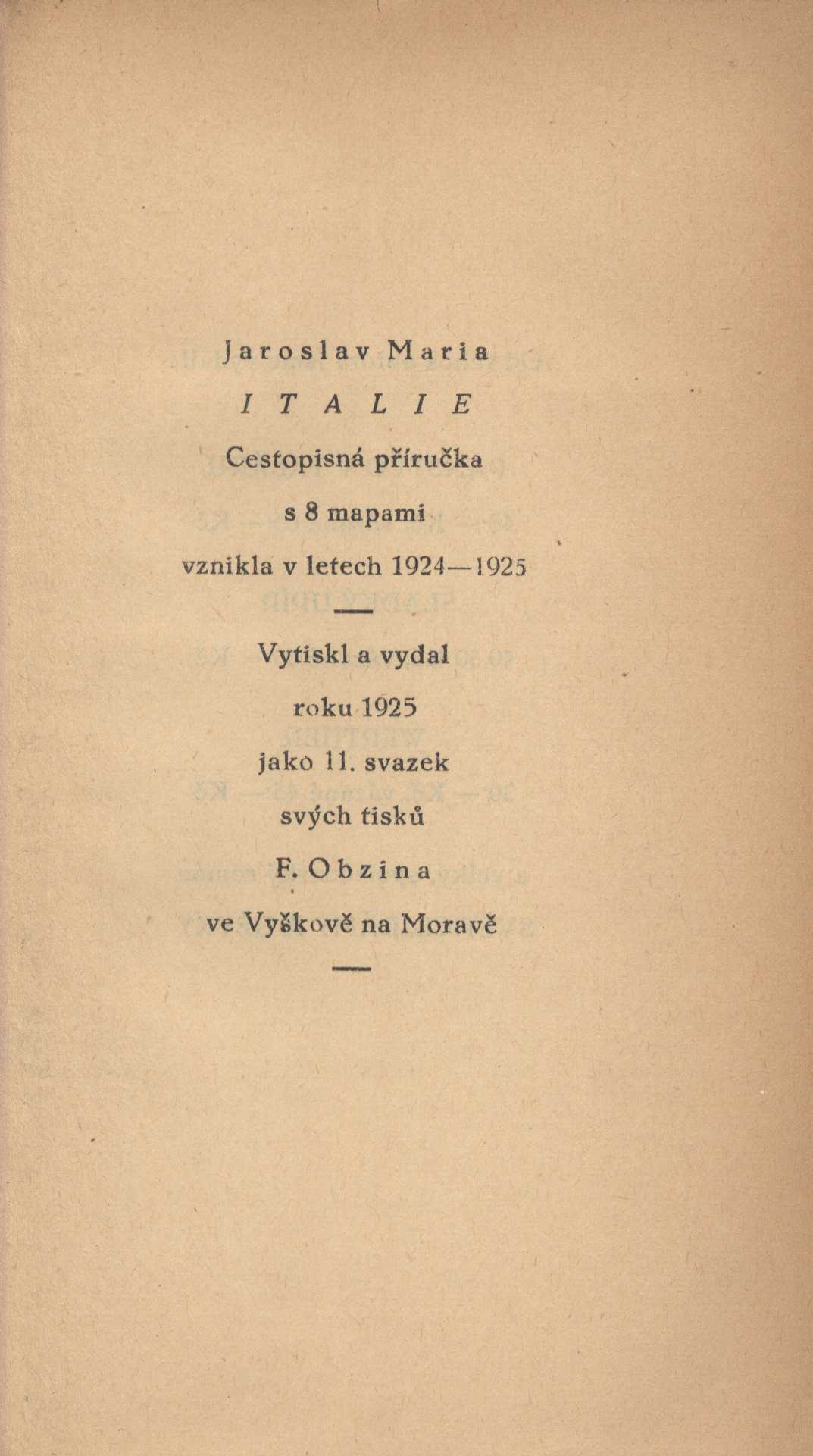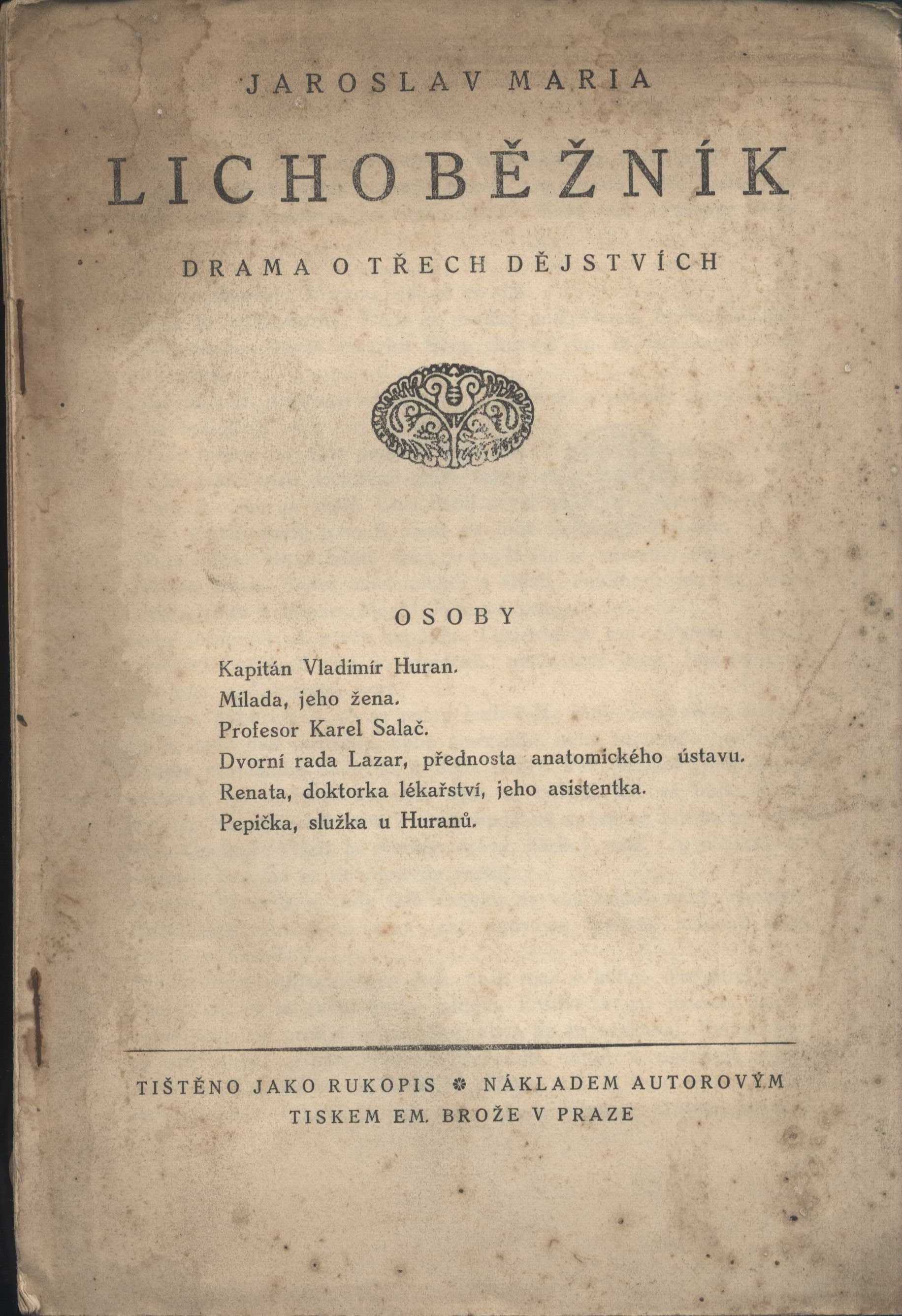 Názvové údaje Dobráci : hra o třech jednáních / Jaroslav Maria Osobní jméno Maria, Jaroslav, 1870-1942 (Autor) Další autoři Josef Nohavec (Terezín, Česko) (Nakladatel, vydavatel) (Tiskař) Nakladatel V Terezíně : Tiskem a nákladem Josefa Nohavce, 1899 Rozsah 127 s. Klíčová slova česká literatura * české drama * divadelní hra * stol. 19., léta 90. Počet ex. 1, z toho volných 1 Druh dok. monografie Signatura KaG LXII 152 Názvové údaje Emausy / Jaroslav Maria ; [v úpravě a s původními dřevoryty F. Koblihy ; prvých 30 exemplářů svázal do kůže J. Rajman] Osobní jméno Maria, Jaroslav, 1870-1942 (Autor) Další autoři Kobliha, František, 1877-1962 (Ilustrátor) (Autor podpisu) Rajman, Jenda, 1892-1965 (Vazač) Korp. Vladimír Žikeš (Praha, Plzeň) (Nakladatel, vydavatel) Kryl a Scotti (firma) (Tiskař) (Tiskař obrazu) Nakladatel V Plzni : nákladem V. Žikeše, 1926 Výrobce K. Kryl a F. Scotti) Rozsah 58 s. : il. ; 27 cm Klíčová slova česká literatura * drama * divadelní hra * Maria J. * česká dekadence * ilustrované knihy * ilustrace * Kobliha F. * číslovaný výtisk * bibliofilský výtisk * bibliofilie Počet ex. 1, z toho volných 1 Druh dok. monografie Signatura Topič 0768 Názvové údaje Grabbe : rysy generální / Jaroslav Maria ; [frontispicem, iniciálou a dvěma vignetami řezanými do dřeva vyzdobil F. Kobliha] Osobní jméno Maria, Jaroslav, 1870-1942 (Autor) (Nakladatel, vydavatel) (Autor podpisu) (Dedikátor) Nakladatel V Táboře : J. Maria, 1930 Rozsah 20 s. : il. Osobní hesla Grabbe, Christian Dietrich, 1801-1836 - německý dramatik Klíčová slova česká literatura * česká próza * esej * bibliofilie * bibliofilská vydání * bibliofilský tisk * soukromé tisky * eseje * esejistické texty * němečtí spisovatelé Počet ex. 1, z toho volných 1 Druh dok. monografie Signatura VHB 0803 Názvové údaje Italie : cestovní příručka / Jaroslav Maria Osobní jméno Maria, Jaroslav, 1870-1942 (Autor) (Dedikátor) Další autoři Karásek ze Lvovic, Jiří, 1871-1951 (Dedikant) (Autor podpisu) Korp. František Obzina (tiskárna, nakladatelství) (Nakladatel, vydavatel) Nakladatel Ve Vyškově na Moravě : F. Obzina, 1925 Rozsah 385 s. + 8 příl. Klíčová slova česká literatura * cestování * Itálie * italská architektura * italská literatura * italské malířství * italské umění * památky * průvodce * stol. 20., léta 20. Druh dok. monografie Názvové údaje Johanna Radimská : drama o čtyřech dějstvích / napsal Jaroslav Maria Osobní jméno Maria, Jaroslav, 1870-1942 (Autor) Další autoři Nakladatelské družstvo Máje (Nakladatel, vydavatel) Nakladatel V Praze : Nakladatelské družstvo "Máje", [1907] Výrobce (Knihtiskárna Dr. Ed. Grégra a syna) Rozsah 107 s. Klíčová slova česká dramata * divadelní hry * drama Počet ex. 2, z toho volných 2 Druh dok. monografie Signatura DSK 083, DSK 083a Názvové údaje Kantoři a inspektoři : román / Jaroslav Maria [pseud.] Osobní jméno Maria, Jaroslav, 1870-1942 (Autor) (Autor) Další autoři Šváb, Jaroslav, 1906-1999 (Grafický technik) Nakladatel Praha : L. Mazáč, 1937 Výrobce (Jaromír Dolenský) Rozsah 306 s. Klíčová slova česká próza román Počet ex. 1, z toho volných 1 Druh dok. ***nezařazeno*** Signatura C12b 5816 Názvové údaje Kyvadla věčnosti : románová truchlohra ve třech částech. Část I. / napsal Jaroslav Maria ; [kresbami vyzdobila Zdenka Braunerova] Osobní jméno Maria, Jaroslav, 1870-1942 (Autor) Další autoři Braunerová, Zdenka, 1858-1934 (Ilustrátor) Korp. J. Otto (nakladatelství) (Nakladatel, vydavatel) Politika (tiskárna, nakladatelství) (Tiskař) Unie (tiskárna) (Tiskař) Nakladatel V Praze : Nakladatel J. Otto, 1920 Výrobce [V Praze : kniha vytištěna v dílnách Politiky, 1919] Rozsah 241 stran : kresby, iniciály ; 22 cm Klíčová slova česká literatura * próza * Maria J. * román * tragédie * výzdoba knihy * Braunerová Z. * r. 1920 Počet ex. 1, z toho volných 1 Druh dok. monografie Signatura C12b 16748 Odkazy (2) - Monografie Názvové údaje Kyvadla věčnosti : románová truchlohra ve třech částech. Část II. / Jaroslav Maria ; [kresbami vyzdobila Zdenka Braunerova] Osobní jméno Maria, Jaroslav, 1870-1942 (Autor) Další autoři Braunerová, Zdenka, 1858-1934 (Ilustrátor) Korp. J. Otto (nakladatelství) (Nakladatel, vydavatel) Politika (tiskárna, nakladatelství) (Tiskař) Unie (tiskárna) (Tiskař) Nakladatel V Praze : Nakladatelství J. Otto, společnost s r. o. [1920] Výrobce [V Praze : kniha vytištěna v dílnách Politiky, 1919] Rozsah 237 stran : kresby, iniciály ; 22 cm Klíčová slova česká literatura * próza * Maria J. * román * tragédie * výzdoba knihy * Braunerová Z. * r. 1920 Počet ex. 1, z toho volných 1 Druh dok. monografie Signatura C12b 16749 Odkazy (2) - Monografie Názvové údaje Kyvadla věčnosti : románová truchlohra ve třech částech. Část III. / Jaroslav Maria ; kresbami vyzdobila Zdenka Braunerova Osobní jméno Maria, Jaroslav, 1870-1942 (Autor) Další autoři Braunerová, Zdenka, 1858-1934 (Ilustrátor) Korp. J. Otto (nakladatelství) (Nakladatel, vydavatel) Politika (tiskárna, nakladatelství) (Tiskař) Unie (tiskárna) (Tiskař) Nakladatel V Praze : Nakladatelství J. Otto, společnost s r. o. 1920 Výrobce V Praze : kniha vytištěna v dílnách Politiky, 1919 Rozsah 217 stran : kresby, iniciály ; 22 cm Klíčová slova česká literatura * próza * Maria J. * román * tragédie * výzdoba knihy * Braunerová Z. * r. 1920 Počet ex. 1, z toho volných 1 Druh dok. monografie Signatura C12b 16750 Odkazy (1) - Monografie Názvové údaje Lichoběžník : drama o třech dějstvích / Jaroslav Maria Osobní jméno Maria, Jaroslav, 1870-1942 (Autor) (Dedikátor) (Nakladatel, vydavatel) Další autoři Braunerová, Zdenka, 1858-1934 (Dedikant) (Dřívější majitel) Dolenský, Antonín, 1884-1956 (Dřívěj