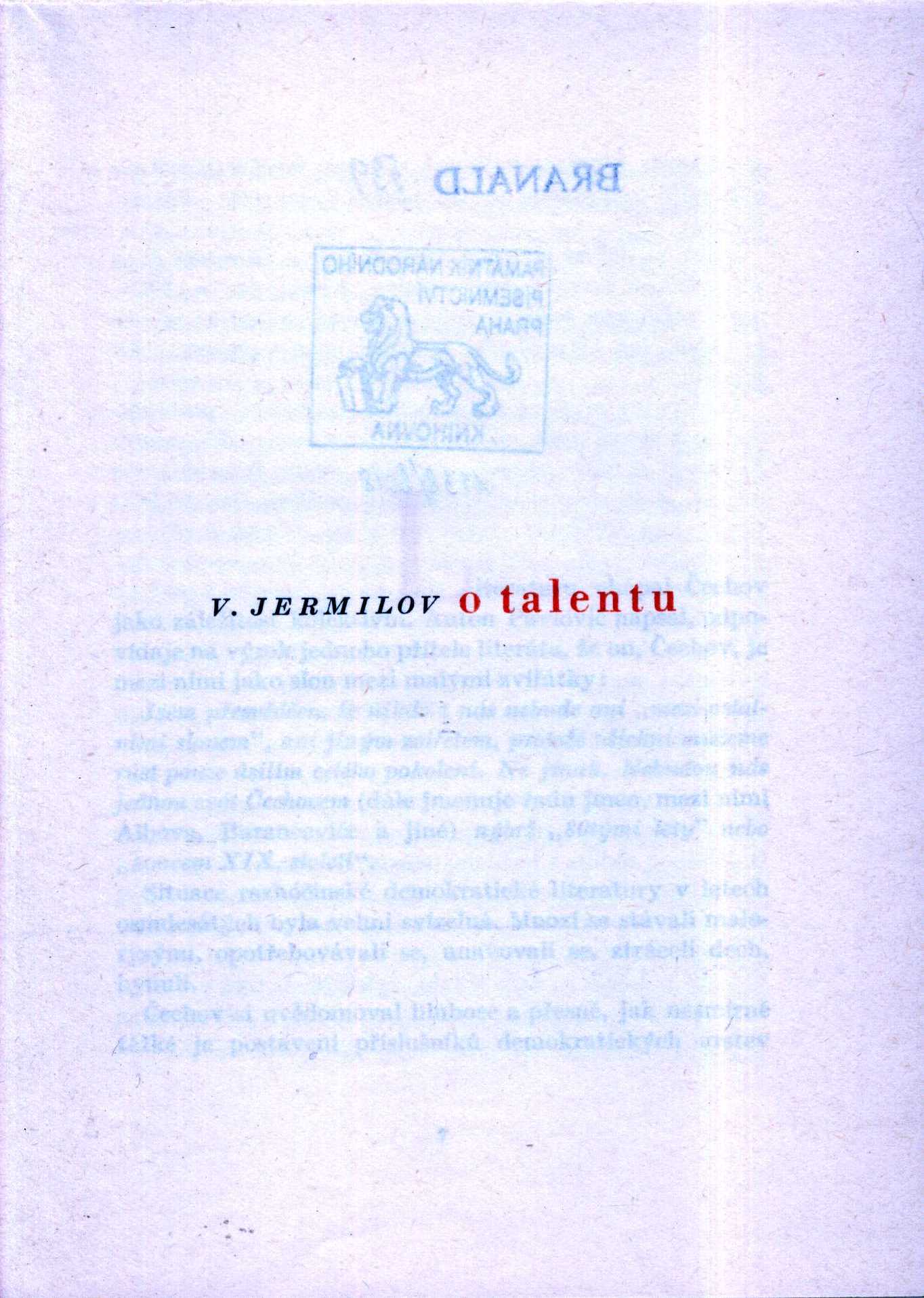Názvové údaje Sovětská literární věda : překlady vybraných studií / redigoval a úvod napsal M. Drozda Osobní jméno Drozda, Miroslav, 1924-1990 (Editor) (Autor úvodu atd.) Další autoři Lenin, Vladimir Iľjič, 1870-1924 (Autor) Gor‘kij, Maksim, 1868-1936 (Autor) Dement'jev, Aleksandr Grigor'jevič, 1904-1986 (Autor) Jermilov, Vladimir Vladimirovič, 1904-1965 (Autor) Plotkin, Lev Abramovič, 1906-1978 (Autor) Trofimov, Pavel Sergejevič, 1910-1971 (Autor) Smutný, Jaroslav, (Autor obálky) Korp. Orbis (nakladatelství a vydavatelství) (Nakladatel, vydavatel) Orbis (tiskárna) (Tiskař) Nakladatel Praha : Orbis, 1949 Výrobce knihtiskárna Orbis Rozsah 169 stran ; 22 cm Klíčová slova ruská literární věda * ruská literatura * literární kritika * literární marxistická studie * socialistický realismus * sborník prací * stol. 20. Počet ex. 2, z toho volných 2 Druh dok. monografie Signatura Thon 1355, C12b 19686 Názvové údaje Dramatik A. P. Čechov / V. Jermilov ; [Z ruš.] přel. Ivan Hollman ; Obálku, vazbu a typogr. úpr. navrhl Antonín Dvořák Osobní jméno Jermilov, Vladimir Vladimirovič, 1904-1965 (Autor) Další autoři Hollman, Ivan, -1974 (Překladatel) Dvořák, Antonín, 1920-1997 (Grafický technik) Nakladatel Praha : Československý spisovatel, 1951 Rozsah 275 s. Klíčová slova ruská literatura * Čechov A. P. * divadelní hry * rozbory * r. 1896-1903 Počet ex. 2, z toho volných 2 Druh dok. monografie Signatura AČS 04769, AČS 04769a Názvové údaje F. M. Dostojevskij / V. Jermilov ; [z ruš. přel. Otakar Mohyla ; obálku a vazbu navrhl Jiří Blažek] Osobní jméno Jermilov, Vladimir Vladimirovič, 1904-1965 (Autor) Další autoři Mohyla, Otakar, 1923-2003 (Překladatel) Blažek, Jiří, 1922-2017 (Grafický technik) Nakladatel Praha : Československý spisovatel, 1957 Rozsah 283 s. Osobní hesla Dostojevskij, Fedor Michajlovič, 1821-1881 - ruský spisovatel Klíčová slova ruská literatura Dostojevskij F. M. monografie Počet ex. 2, z toho volných 2 Druh dok. monografie Signatura AČS 05371, AČS 05371a Názvové údaje N. V. Gogol / V. Jermilov ; Z ruš. přel. Jiří Honzík ; Obálku a vazbu navrhl Josef Paukert ; Typogr. úpr. Josef Paták Osobní jméno Jermilov, Vladimir Vladimirovič, 1904-1965 (Autor) Další autoři Honzík, Jiří, 1924-2018 (Překladatel) Paukert, Josef, 1915-1991 (Grafický technik) Paták, Josef (Grafický technik) Nakladatel Praha : Československý spisovatel, 1953 Rozsah 278 s. Osobní hesla Gogol‘, Nikolaj Vasil‘jevič, 1809-1852 - ruský prozaik, dramatik Klíčová slova ruská literatura * sovětská literatura * Gogol N. V. * monografie Počet ex. 2, z toho volných 2 Druh dok. monografie Signatura AČS 02080, AČS 02080a Názvové údaje O talentu : stať z připravované knihy o A.P. Čechovovi / V. Jermilov ; graficky upravil J. Bursík Osobní jméno Jermilov, Vladimir Vladimirovič, 1904-1965 (Autor) Další autoři Bursík, Jiří, 1927-1966 (Knižní grafik) Korp. Mladá fronta (nakladatelství) (Nakladatel, vydavatel) (Tiskař) Nakladatel V Praze : Mladá fronta, 1948 Rozsah 27 stran ; 16 cm Osobní hesla Čechov, Anton Pavlovič, 1860-1904 - ruský prozaik, dramatik a lékař Klíčová slova ruští spisovatelé * literární osobnosti * literární studie * stati Počet ex. 1, z toho volných 2 Druh dok. monografie Signatura Branald 0539, M 52 g 29 Názvové údaje Sovětská literatura v boji za mír / V. Jermilov ; [přel. Bohumil Franěk ; Verše přel. Jiří Taufer ... et al.] Osobní jméno Jermilov, Vladimir Vladimirovič, 1904-1965 (Autor) Další autoři Franěk, Bohumil, 1911-1986 (Překladatel) Taufer, Jiří, 1911-1986 (Překladatel) Nakladatel Praha : Československý spisovatel, 1951 Rozsah 121 s. Klíčová slova sovětská literatura * r. 1917-1950 * studie Počet ex. 1, z toho volných 1 Druh dok. monografie Signatura AČS 05993 Názvové údaje Sovětská literatura v boji za mír / V. Jermilov ; Z ruš. přel. Bohumil Franěk ; Verše přel. Jiří ...[et al.]Taufer Osobní jméno Jermilov, Vladimir Vladimirovič, 1904-1965 (Autor) Další autoři Franěk, Bohumil, 1911-1986 (Překladatel) Taufer, Jiří, 1911-1986 (Překladatel) Nakladatel Praha : Československý spisovatel, 1951 Rozsah 121 s. Klíčová slova ruská literatura * sovětská literatura * r. 1917-1950 * studie Počet ex. 2, z toho volných 2 Druh dok. monografie Signatura AČS 03836, AČS 03836a Názvové údaje F. M. Dostojevskij / V. V. Jermilov Osobní jméno Jermilov, Vladimir Vladimirovič, 1904-1965 (Autor) Další autoři Gosudarstvennoje izdatel‘stvo chudožestvennoj literatury (nakladatelství) (Nakladatel, vydavatel) Nakladatel Moskva : Gosudarstvennoje izdatel‘stvo chudožestvennoj literatury, 1956 Rozsah 279 stran Osobní hesla Dostojevskij, Fedor Michajlovič, 1821-1881 - ruský spisovatel a filozof Klíčová slova ruská literatura * ruská literární věda * ruští spisovatelé Počet ex. 1, z toho volných 1 Druh dok. monografie Signatura J X V 20 Názvové údaje Talent : život velkého spisovatele / V. Jermilov ; z ruského originálu ... přeložila a poznámkami opatřila Naděžda Slabihoudová ; kresby Vladimíra Šolty Osobní jméno Jermilov, Vladimir Vladimirovič, 1904-1965 (Autor) Další autoři Slabihoudová, Naděžda, 1922-2014 (Překladatel) Šolta, Vladimír, 1924-1977 (Ilustrátor) Bursík, Jiří, 1927-1966 (Autor obálky) (Knižní grafik) Korp. Mladá fronta (nakladatelství) (Nakladatel, vydavatel) Nakladatel V Praze : Mladá fronta, 1948 Rozsah 285 stran Osobní hesla Čechov, Anton Pavlovič, 1860-1904 - ruský prozaik, dramatik a lékař Klíčová slova ruští spisovatelé Počet ex. 2, z toho volných 2 Druh dok. monografie Signatura P 66 e 41, Nezval 1458
