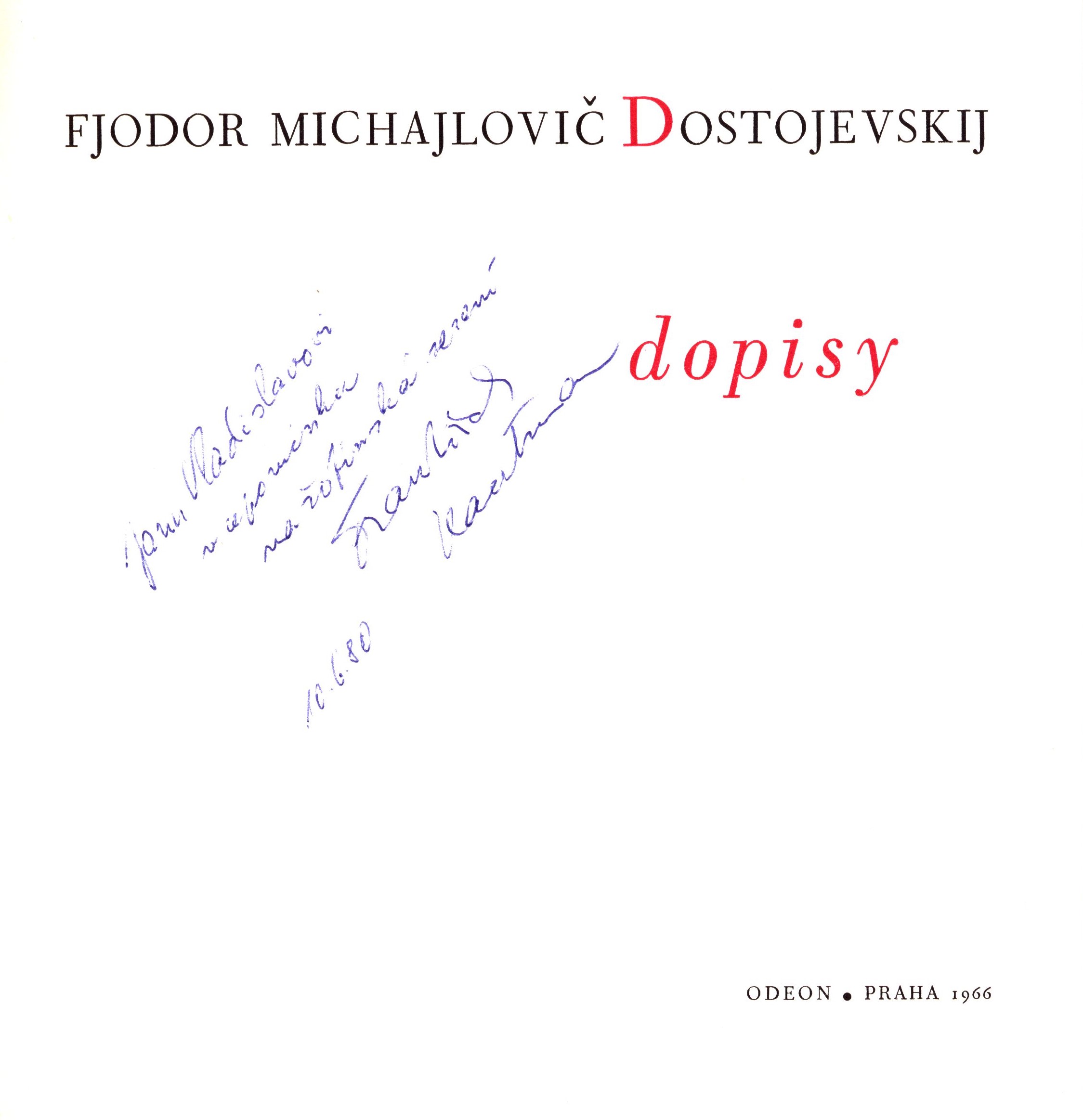 Názvové údaje Dopisy / Fjodor Michajlovič Dostojevskij ; z ruského originálu ... vybral, přeložil, doslov napsal, poznámkami, obrazovými přílohami a rejstříky opatřil František Kautman ; obálku, vazbu a grafickou úpravu navrhl Jan Kotík Osobní jméno Dostojevskij, Fedor Michajlovič, 1821-1881 (Autor) Další autoři Kautman, František, 1927-2016 (Editor) (Překladatel) (Autor doslovu, tiráže atd.) (Dedikátor) Kotík, Jan, 1916-2002 (Výtvarník vazby) (Knižní grafik) (Autor obálky) Vladislav, Jan, 1923-2009 (Dedikant) Korp. Odeon (nakladatelství) (Nakladatel, vydavatel) Polygrafia (tiskárna, Praha) (Tiskař) Nakladatel Praha : Odeon, 1966 Výrobce Polygrafia 3 Rozsah 370 stran, 45 stran černobílých obrazových příloh : černobílé ilustrace, faksimile, portréty ; 20x21cm Osobní hesla Dostojevskij, Fedor Michajlovič, 1821-1881 - ruský spisovatel Klíčová slova ruští spisovatelé * korespondence * dopisy * stol. 19. Počet ex. 3, z toho volných 3 Druh dok. monografie Signatura Holan 867, C12b 18920, JVladislav 411 Názvové údaje Vojenské povídky / Alois Jirásek ; S kresbami Mikoláše Alše ; Výbor uspoř., doslov a pozn. naps. František Kautman ; Obálku, vazbu a typogr. úpr. navrhl Oldřich Menhart Osobní jméno Jirásek, Alois, 1851-1930 (Autor) Další autoři Aleš, Mikoláš, 1852-1913 (Ilustrátor) Kautman, František, 1927-2016 (Sestavovatel, kompilátor) Kautman, František, 1927-2016 (Autor úvodu atd.) Kautman, František, 1927-2016 (Autor komentáře) Menhart, Oldřich, 1897-1962 (Grafický technik) Nakladatel Praha : Československý spisovatel, 1952 Rozsah 255 s. : il Klíčová slova česká literatura * próza * povídky * vojenské povídky Počet ex. 2, z toho volných 2 Druh dok. monografie Signatura AČS 02812, AČS 02812a Názvové údaje Dopisy Mileně / Franz Kafka ; uspořádal, úvodní stať a poznámky napsal František Kautman ; přeložila Hana Žantovská ; obálku, vazbu a grafickou úpravu navrhl Jaroslav Krouz Osobní jméno Kafka, Franz, 1883-1924 (Autor) Další autoři Kautman, František, 1927-2016 (Sestavovatel, kompilátor) (Autor úvodu atd.) (Editor) Žantovská, Hana, 1921-2004 (Překladatel) Krouz, Jaroslav, 1923- (Autor obálky) (Výtvarník vazby) (Knižní grafik) Korp. Academia (nakladatelství) (Nakladatel, vydavatel) Knihtisk (tiskárna) (Tiskař) Nakladatel Praha : Academia, 1968 Výrobce Praha : Knihtisk Copyright ©1952 Rozsah 261 stran, 20 stran obrazových příloh ; 21 cm Osobní hesla Kafka, Franz, 1883-1924 - pražský německý spisovatel * Jesenská, Milena, 1896-1944 - novinářka, redaktorka, publicistka, překladatelka Klíčová slova pražská německá literatura * pražští němečtí spisovatelé * korespondence * dopisy * Kafka F. * Jesenská M. * stol. 20., léta 20. Počet ex. 3, z toho volných 3 Druh dok. monografie Signatura Fuks 0806, EJulis 0151, BVolkova 0930 Názvové údaje O literatuře a dopisovatelích / M.I. Kalinin ; [z rus. orig. ... přel. Růžena Schulzová ; předmluva: F. Kautman] Osobní jméno Kalinin, Michail Ivanovič, 1875-1946 (Autor) Další autoři Schulzová, Růžena, 1889-1969 (Překladatel) Kautman, František, 1927-2016 (Autor úvodu atd.) Korp. Státní nakladatelství politické literatury (Nakladatel, vydavatel) Nakladatel Praha : Státní nakladatelství politické literatury, 1959 Výrobce (Rudé právo) Rozsah 258 s. ; 8° Osobní hesla Kalinin, Michail Ivanovič, 1875-1946 - sovětský politik a pedagog Klíčová slova ruská literatura * vzpomínky Počet ex. 1, z toho volných 1 Druh dok. monografie Signatura HZ VI 7 Názvové údaje Valivý čas proměn / Eva Kantůrková ; doslov napsal František Kautman ; obálka a grafická úprava Klára Horová Osobní jméno Kantůrková, Eva, 1930- (Autor) Další autoři Kautman, František, 1927-2016 (Autor doslovu, tiráže atd.) Horová, Klára, 1969- (Autor obálky) Korp. Český spisovatel (nakladatelství) (Nakladatel, vydavatel) Tiskárny Vimperk (firma) (Tiskař) Nakladatel Praha : Český spisovatel, 1995 Výrobce Vimperk : Tiskárny Vimperk, s. r. o. Copyright © Epilogue František Kautman, 1988 Rozsah 437 stran ; 17 cm Klíčová slova česká literatura * próza * eseje * osobnosti * Československo * r. 1978-1989 Počet ex. 2, z toho volných 2 Druh dok. monografie Signatura Kantůrková 0339, C12a 71 Názvové údaje Boje o Dostojevského / František Kautman ; Obálku navrhl a graf. upr. Leon Novotný Osobní jméno Kautman, František, 1927-2016 (Autor) Další autoři Novotný, Leo, 1931- (Grafický technik) Nakladatel Praha : Svět sovětů, 1966 Rozsah 150 [2] s. : fot Osobní hesla Dostojevskij, Fedor Michajlovič, 1821-1881 - ruský spisovatel Klíčová slova ruská literatura * Dostojevskij F. M. * literární kritika * rozbor díla Počet ex. 3, z toho volných 3 Druh dok. monografie Signatura C12b 4381, LK P 41 c 13, LK P 41 c 14 Názvové údaje Česká otázka po pětaosmdesáti letech / František Kautman Osobní jméno Kautman, František, 1927-2016 (Autor) Další autoři Kautman, František, 1927-2016 (Autor podpisu) Nakladatel B.m. : b.n., 1980 Rozsah 292 s. Osobní hesla Kautman, František, 1927-2016 - literární historik, spisovatel Klíčová slova česká literatura * samizdat * esej * Masaryk T. G. * česká otázka * r. 1979 Počet ex. 1, z toho volných 1 Druh dok. monografie Signatura C12b 3060