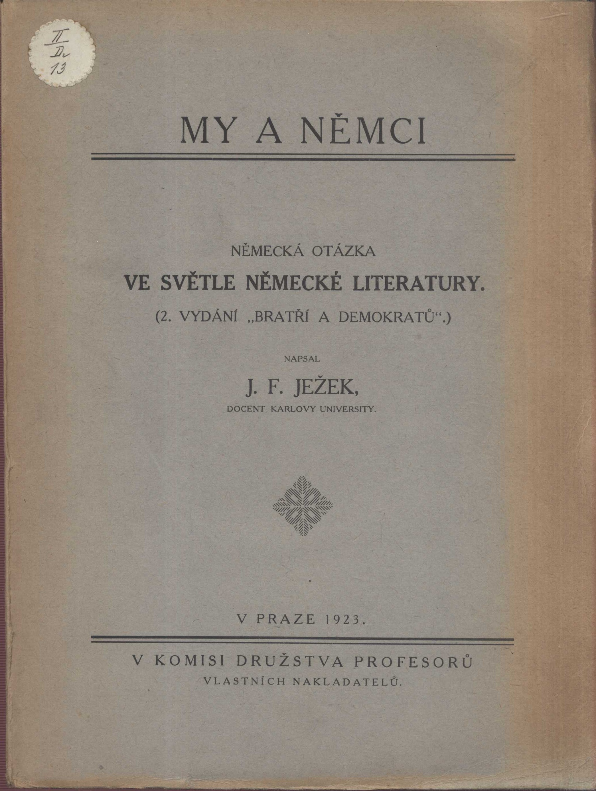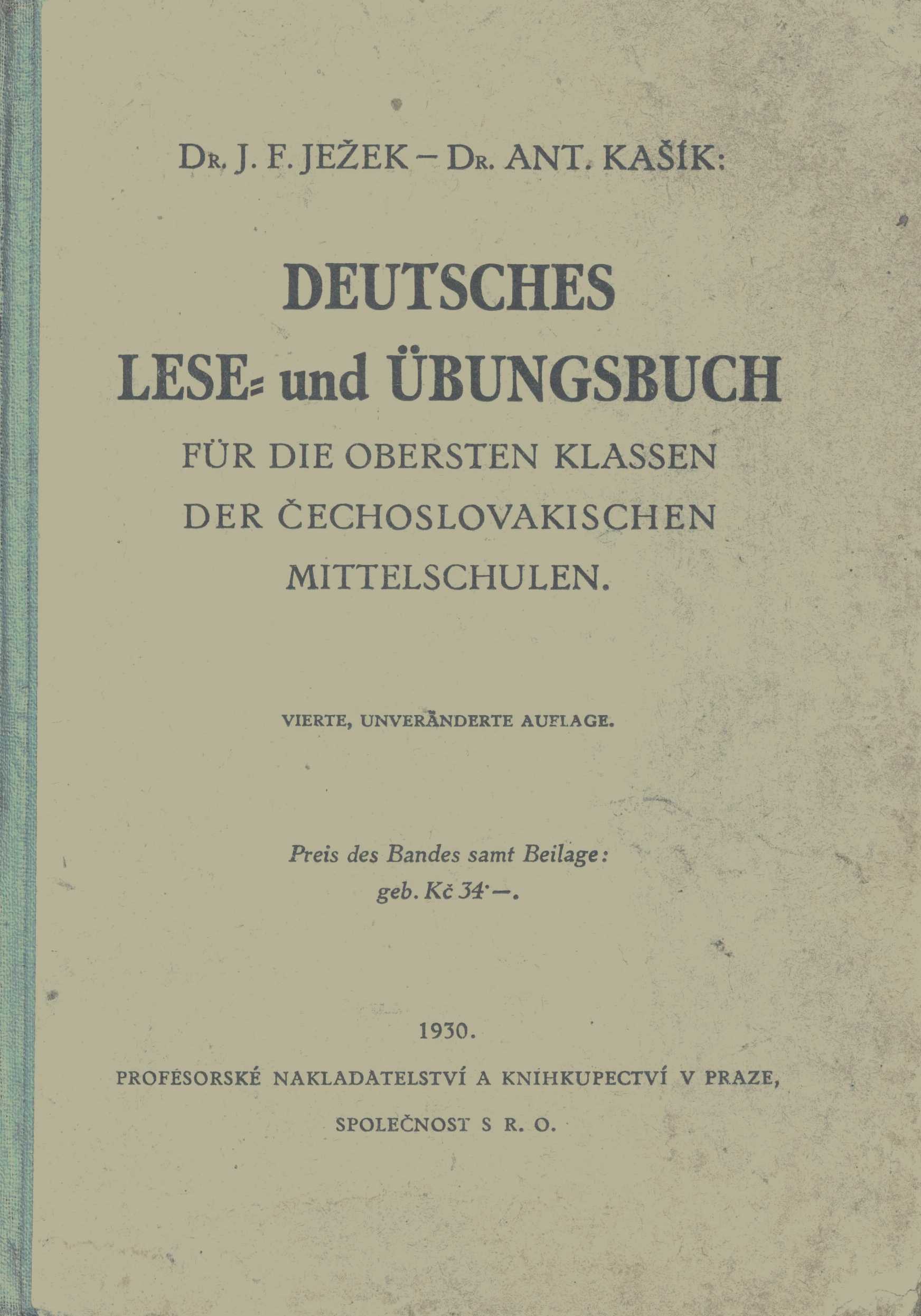 Názvové údaje Deutsches Lese- und Übungsbuch für die obersten Klassen der čechoslovakischen Mittelschulen : anthologie aus der deutschen Literatur samt Literaturgeschichte im Abriß und in Einzeldarstellungen / Dr. J.F. Ježek, Dr. Ant. Kašík Osobní jméno Ježek, Jan Ferdinand, 1875-1937 (Autor) Další autoři Kašík, Antonín, 1876-1916 (Autor) Korp. Profesorské nakladatelství a knihkupectví v Praze (Nakladatel, vydavatel) Politika (tiskárna, nakladatelství) (Tiskař) Nakladatel V Praze : Profesorské nakladatelství a knihkupectví, 1930 Výrobce (Politika) Rozsah 358 s. ; 8° Klíčová slova německá literatura * němečtí spisovatelé * antologie * učebnice * učebnice pro střední školy * stol. 12.-poč. stol. 20. * Luther M. * Goethe J. W. * Lessing G. E. * Herder J. G. * Schiller F. * Kant I. * Fichte J. G. * Körner T. * Kleist H. von * Bolzano B. * Lenau N. * Stifter A. * Ebert K. E. * Heine H. * Hebbel F. * Ludwig O. * Schopenhauer A. * Storm T. * Keller G. * Meyer C. F. * Ebner-Eschenbach M. von * Nietzsche F. * Dehmel R. * Hauptmann G. * Mann H. * Mann T. * Salus H. * Rilke R. M. * Brod M. * Werfel F. * r. 1930 Počet ex. 1, z toho volných 1 Druh dok. monografie Signatura AVrbova 255 Názvové údaje Můj spor s prof. dr. Arn. Krausem & spol. : Plaidoyer "Bratří a demokratů", knihy sebevědomí a odpovědnosti / Jan Ferdinand Ježek Osobní jméno Ježek, Jan Ferdinand, 1875-1937 (Autor) Nakladatel Praha : náklem vlastním, 1925 Výrobce Tiskem Ed. Grégra a syna Rozsah 23 stran ; v. 8° 23 cm Počet ex. 1, z toho volných 1 Druh dok. monografie Signatura M 56 b 272 Názvové údaje My a Němci : německá otázka ve světle německé literatury : (2. vydání " Bratří demokratů ") / napsal Jan Ferdinand Ježek Osobní jméno Ježek, Jan Ferdinand, 1875-1937 (Autor) Další autoři Alois Wiesner, knihtiskař České akademie císaře Františka Josefa pro vědy, slovesnost a umění (Praha) (Tiskař) Vydavatelské družstvo profesorů vlastních nakladatelů (Nakladatel, vydavatel) Nakladatel V Praze : V komisi Družstva profesorů vlastních nakladatelů, 1923 Výrobce V Praze : Tiskem Aloisa Wiesnera, 1923 Rozsah 162 stran Klíčová slova česká literatura * české dějiny * nacionalismus * česká společnost * Němci * československo-německé vztahy * česko-německá otázka * česko-německé vztahy * německo-české vztahy Počet ex. 1, z toho volných 1 Druh dok. monografie Signatura KaG II D2 13 Názvové údaje Bratří a demokraté : několik studií o německé literatuře s hlediska humanity a demokracie / Jan Ferdinand Ježek Osobní jméno Ježek, Jan Ferdinand, 1875-1937 (Autor) Nakladatel V Praze : Jan Ferdinand Ježek, 1923 Rozsah 162 stran ; 23 cm Klíčová slova německá literatura * humanitní ideály * demokraté * studie Počet ex. 5, z toho volných 5 Druh dok. monografie Signatura M 165 c 22, M 98 c 45, M 71 f 41, M 68 f 36, M 22 c 16 Názvové údaje Budoucnost ČSR podle Bolzana, Eberta a Smetany, členů Národního výboru 1848 / Jan F. Ježek [ed. a koment.] Další autoři Ježek, Jan Ferdinand, 1875-1937 (Editor) (Autor komentáře) Bolzano, Bernard, 1781-1848 (Autor) Ebert, Karl Egon, 1801-1882 (Autor) Smetana, Augustin, 1814-1851 (Autor) Korp. Kvasnička a Hampl (nakladatelství) (Nakladatel, vydavatel) Nakladatel Praha : Kvasnička a Hampl, 1931 Rozsah 124 stran Klíčová slova Československo * Slované * Němci * národnostní poměry * národnostní menšiny * vzájemné vztahy * přednášky Počet ex. 2, z toho volných 2 Druh dok. monografie Signatura H V VI 93, K Y VI 93 Názvové údaje Deutsches Lesebuch für die oberste Klasse der Realschulen und die ihnen gleichgestellten Lehranstalten mit böhmischer Unterrichtssprache / Jan Ferdinand Ježek a Antonín Kašík Osobní jméno Ježek, Jan Ferdinand, 1875-1937 (Autor) Další autoři Kašík, Antonín, 1876-1916 (Autor) Korp. R. Promberger (nakladatelství) (Nakladatel, vydavatel) Nakladatel Olomouc : Promberger, 1914 Distributor Höfer & Klouček Rozsah 359 stran + 1 příloha (96 stran) Klíčová slova německá literatura * čítanka * učebnice pro gymnázia Počet ex. 1, z toho volných 1 Druh dok. monografie Signatura Václavek 931 Názvové údaje Německé písemnictví od dob nejstarších až po naše dny / Jan Ferdinand Ježek a Antonín Kašík Osobní jméno Ježek, Jan Ferdinand, 1875-1937 (Autor) Další autoři Kašík, Antonín, 1876-1916 (Autor) Korp. R. Promberger (nakladatelství) (Nakladatel, vydavatel) Nakladatel Olomouc : Promberger, [1915] Rozsah 220 stran Klíčová slova německá literatura * písemnictví * dějiny * příručky Počet ex. 3, z toho volných 3 Druh dok. monografie Signatura M 12 g 82, P XVII e 6, M 156 b 69