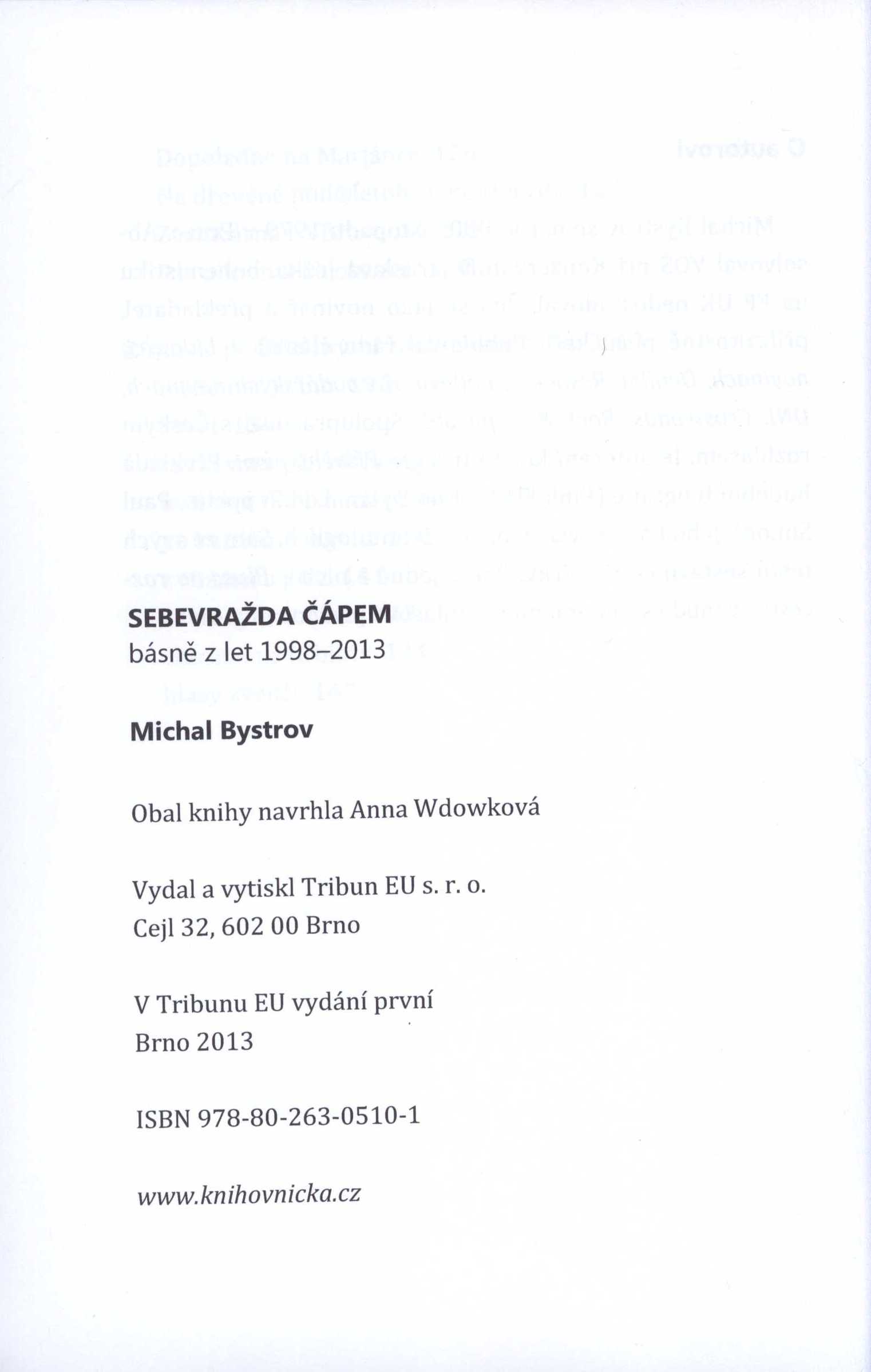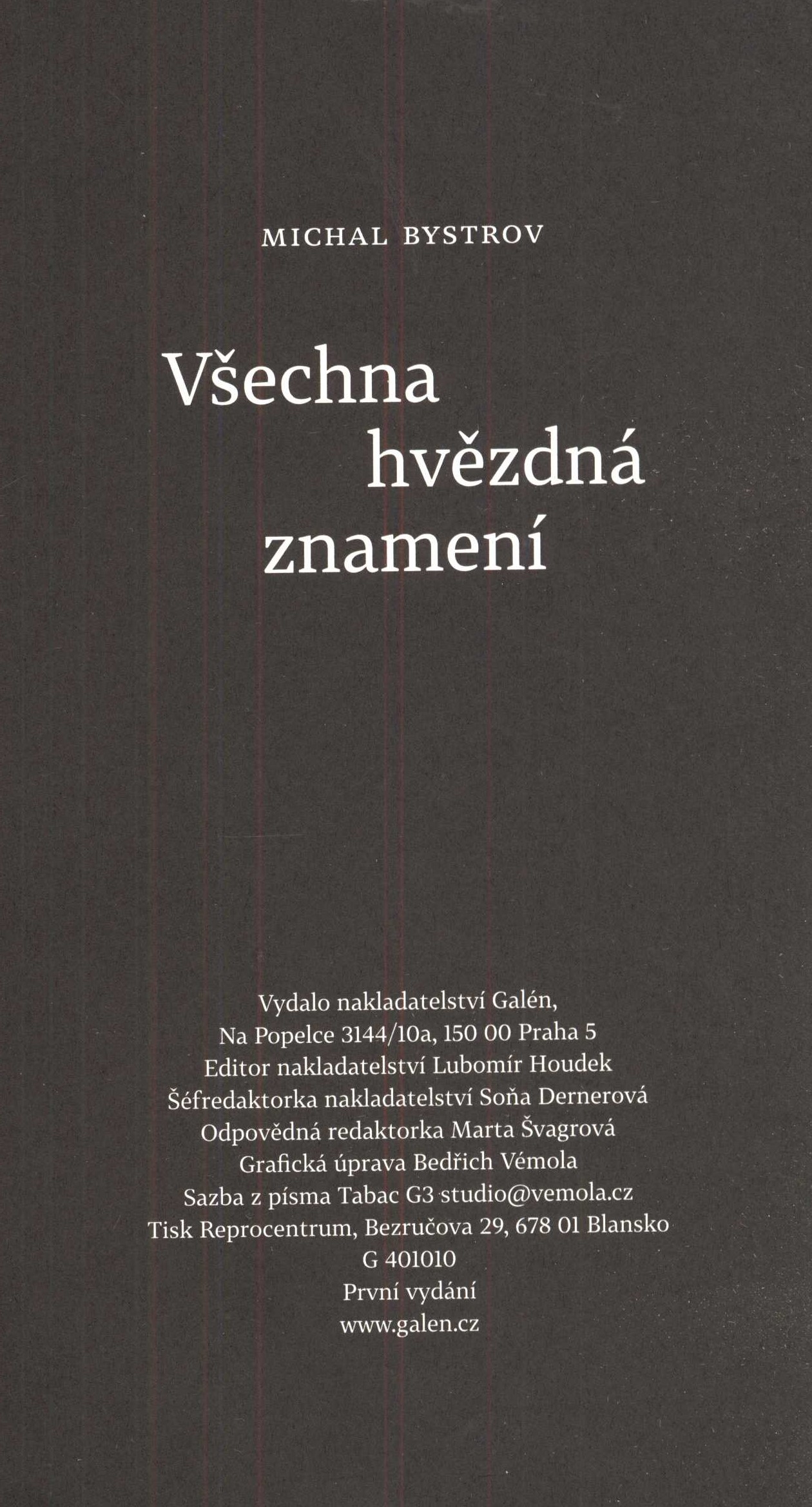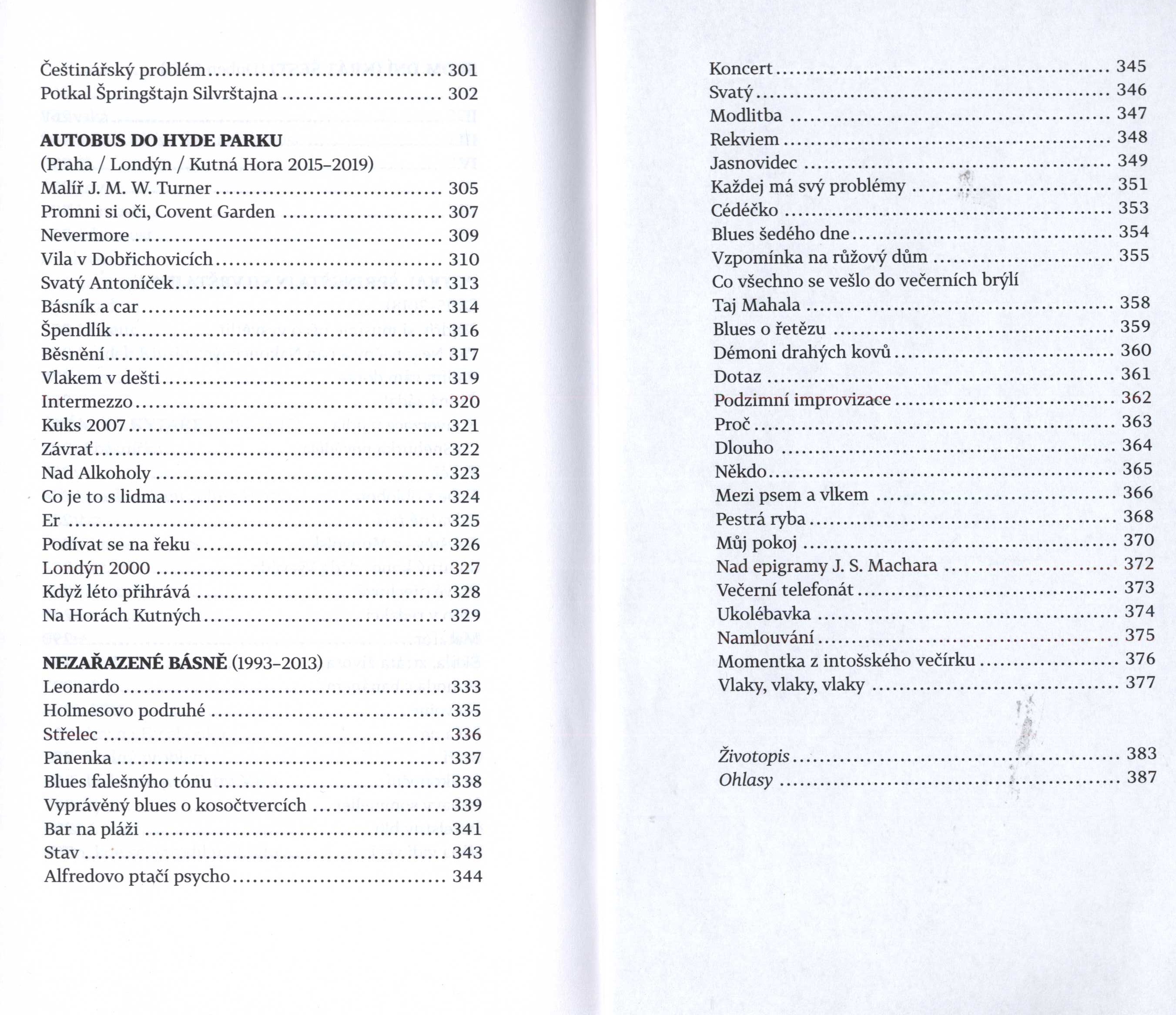 Názvové údaje Černovid / J.S. Machar ; vybral a uspořádal Michal Bystrov ; grafická úprava a sazba ... studio kapitola ; fotografie J.S. Machara ČTK/František Drtikol Osobní jméno Machar, Josef Svatopluk, 1864-1942 (Autor) Další autoři Bystrov, Michal, 1979- (Sestavovatel, kompilátor) Drtikol, František, 1883-1961 (Fotograf) Korp. studio Kapitola (grafické studio) (Knižní grafik) Galén (nakladatelství) (Nakladatel, vydavatel) Finidr (tiskárna) (Tiskař) Nakladatel Praha : Galén, [2022] Výrobce Český Těšín : FINIDR Copyright ©2022 Rozsah 504 stran : 1 portrét ; 22,5 cm Klíčová slova česká poezie * česká próza * texty * výbory Počet ex. 1, z toho volných 1 Druh dok. monografie Signatura LITc 0465 Názvové údaje George Voskovec & John Werich : americká cesta / Michal Bystrov Osobní jméno Bystrov, Michal, 1979- (Autor) Další autoři Dobrovský (firma) (Nakladatel, vydavatel) Finidr (tiskárna) (Tiskař) Nakladatel Praha : Dobrovský s.r.o., 2024 Výrobce [Český Těšín] : Finidr s.r.o. Rozsah 610 stran : ilustrace (některé barevné), 1 mapa, portréty, faksimile ; 23 cm Osobní hesla Voskovec, Jiří, 1905-1981 * Werich, Jan, 1905-1980 * Ježek, Jaroslav, 1906-1942 Předmětová hesla actors - Czechia - 20th century * actors - United States - 20th century * composers - Czechia - 20th century * composers - United States - 20th century * theater - Czechia - 20th century * theater - United States - 20th century * music - Czechia - 20th century * music - United States - 20th century * films - United States - 20th century Klíčová slova čeští umělci * čeští umělci v zahraničí * herci * divadlo * film * divadelní hry * divadelní herci * divadelní režiséři * hudba * hudebníci * Česko * V + W * emigrace * Spojené státy americké * biografie * r. 1939-1945 Počet ex. 1, z toho volných 1 Druh dok. monografie Signatura LITc 0781 Názvové údaje Láska, mír a jiná klišé : sloupky a úvahy z let 2011-2021 / Michal Bystrov ; ilustrace Miroslav Barták ; grafická úprava a sazba Petra Veverková Osobní jméno Bystrov, Michal, 1979- (Autor) Další autoři Barták, Miroslav, 1938- (Ilustrátor) Veverková, Petra, 1968- (Knižní grafik) (Sazeč) Korp. Galén (nakladatelství) (Nakladatel, vydavatel) Finidr (tiskárna) (Tiskař) Nakladatel Praha : Galén, [2021] Výrobce Český Těšín : FINIDR, s.r.o. Copyright ©2021 Rozsah 217 stran : ilustrace ; 20 cm Klíčová slova česká literatura * próza * publicistika * fejetony * sloupky * úvahy * r. 2011-2020 Počet ex. 1, z toho volných 1 Druh dok. monografie Signatura LITb 01265 Názvové údaje Pekelnej pes má na mě vztek : variace na texty starých bluesmanů / Michal Bystrov ; grafická úprava Bedřich Vémola Osobní jméno Bystrov, Michal, 1979- (Autor) Další autoři Vémola, Bedřich, 1970- (Knižní grafik) Korp. Galén (nakladatelství) (Nakladatel, vydavatel) Finidr (tiskárna) (Tiskař) Nakladatel Praha : Galén, 2024 Výrobce Český Těšín : Finidr, s.r.o. Rozsah 192 stran ; 26 cm Klíčová slova česká poezie * písňové texty * blues * americká hudba * vlivy * stol. 20.-21. Počet ex. 1, z toho volných 1 Druh dok. monografie Signatura LITc 0830