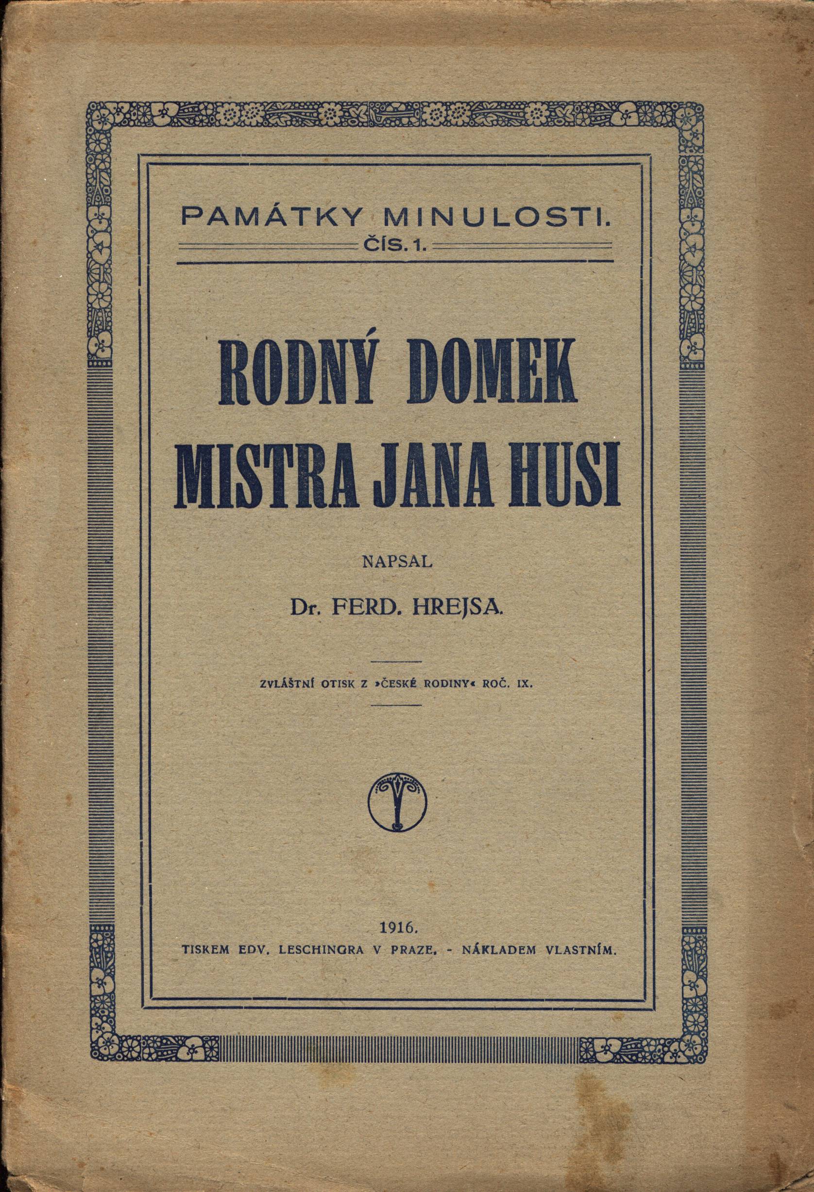 Názvové údaje Hus a lidstvo : předneseno při oslavě památky Husovy, pořádané Evangelickou Besedou v Praze dne 5. července 1915 / Frant. Drtina Osobní jméno Drtina, František, 1861-1925 (Autor) Další autoři Dědictví Komenského (vydavatelství) (Nakladatel, vydavatel) Nakladatel Praha : Nákladem Dědictví Komenského, 1915 Výrobce V Zábřeze : Tiskem Společnosti (dříve Družstva) knihtiskárny Rozsah 8 stran ; 24,5 cm Osobní hesla Hus, Jan, asi 1371-1415 - profesor a rektor pražské univerzity, kazatel, představitel české reformace, autor traktátů, polemik Klíčová slova české osobnosti * historické osobnosti * stol. 15. * jubilejní publikace Počet ex. 1, z toho volných 1 Druh dok. separáty Signatura Patočka 0399 Názvové údaje Křesťanství, husitství, české bratrství / řeč, kterou proslovil prof. dr. Fr. Drtina při oslavě Husově v Olomouci 8. července 1911 Osobní jméno Drtina, František, 1861-1925 (Autor) (Nakladatel, vydavatel) Další autoři Patočka, Jan, 1907-1977 (Dedikant) Korp. Edvard Leschinger (firma) (Tiskař) Nakladatel V Praze : nákladem vlastním, 1911 Výrobce Tiskem Edvarda Leschingra Rozsah 12 stran Osobní hesla Hus, Jan, asi 1371-1415 - profesor a rektor pražské univerzity, kazatel, představitel české reformace, autor traktátů, polemik Klíčová slova křesťanství * reformace * husitství * čeští bratři * projevy Počet ex. 2, z toho volných 2 Druh dok. separáty Signatura M 99 f 74, Patočka 0343 Názvové údaje Jan Hus in illuminated manuscripts of the Bohemian Renaissance / Martina Šárovcová ; [translated from the Czech by Zdeněk V. David] Osobní jméno Šárovcová, Martina, 1979- Další autoři David, Zdeněk V., 1931- (Překladatel) Nakladatel Prague Rozsah s. 287-314 : il. Osobní hesla Hus, Jan, asi 1371-1415 - profesor a rektor pražské univerzity, kazatel, představitel české reformace, autor traktátů, polemik Klíčová slova čeští teologové * čeští kněží * česká reformace * stol. 14.-15. * česká renesance * renesanční malířství * české iluminované rukopisy * kancionály * graduály * Hus J. * literární náměty * umělecké náměty * stol. 14.-16. * uměleckohistorické studie Počet ex. 1, z toho volných 1 Druh dok. separáty Signatura C12b 15292 Názvové údaje O mistru Janu Husovi / Karel Havlíček Borovský Osobní jméno Havlíček Borovský, Karel, 1821-1856 (Autor) Další autoři František Popelka (Polička, Česko) (Nakladatel, vydavatel) (Tiskař) Nakladatel Polička : tiskem a nákladem Jindřicha Popelky, [1867] Rozsah 15 stran ; 19 cm Osobní hesla Hus, Jan, asi 1371-1415 - profesor a rektor pražské univerzity, kazatel, představitel české reformace, autor traktátů, polemik Klíčová slova reforma církve * stol. 14.-15. * Hus J. Počet ex. 1, z toho volných 1 Druh dok. separáty Signatura JVladislav 2797 Názvové údaje Rodný domek Mistra Jana Husi / Ferd. Hrejsa Osobní jméno Hrejsa, Ferdinand, 1867-1953 (Autor) (Nakladatel, vydavatel) Další autoři E. Leschinger (knihtiskař, nakladatel) (Tiskař) Nakladatel V Praze : nákladem vlastním ; 1916 Výrobce Tiskem Edv. Leschingra Rozsah 16 stran ; 21 cm Osobní hesla Hus, Jan, asi 1371-1415 - profesor a rektor pražské univerzity, kazatel, představitel české reformace, autor traktátů, polemik Klíčová slova české dějiny * historický místopis * rodné domy * Hus J. * bádání Počet ex. 1, z toho volných 1 Druh dok. separáty Signatura C12b 19631