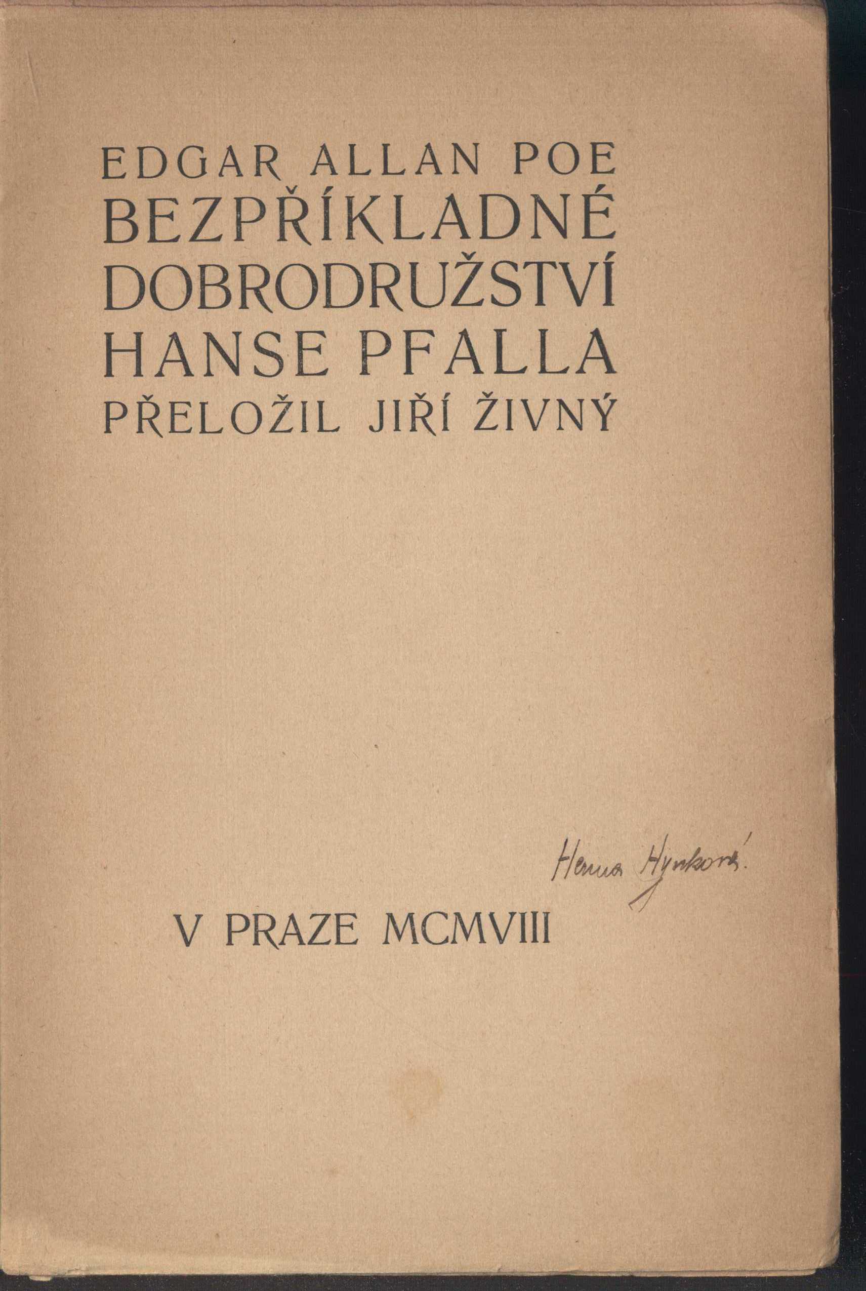 Názvové údaje Dopisy dvou mladých žen / Honoré de Balzac ; [přeložil O. Městecký] Osobní jméno Balzac, Honoré de, 1799-1850 (Autor) Další autoři Živný, Jiří, 1876-1948 (Nakladatel, vydavatel) Městecký, O. (Překladatel) Korp. Českoslovanská akciová tiskárna (Tiskař) Nakladatel V Praze : Nákladem vydavatelstva Knihovny : Vydává Jiří Živný, 1920 Výrobce (Tiskem Českoslovanské akc. tiskárny) Rozsah 277, [3] s. Klíčová slova francouzská literatura * francouzská próza * dopisy * ženy * stol. 20., léta 20. Počet ex. 1, z toho volných 1 Druh dok. monografie Signatura KaG XXVI C2 55 Názvové údaje Honorina : novela / napsal Honoré de Balzac ; přeložil Jiří Živný Osobní jméno Balzac, Honoré de, 1799-1850 (Autor) Další autoři Živný, Jiří, 1876-1948 (Překladatel) Vokolek, Vlastimil, 1903-1985 (Dřívější majitel) Havlůjová, Hermina, 1891-1974 (Dřívější majitel) Neumannová, Kamila, 1874-1956 (Nakladatel, vydavatel) Korp. Albert Malíř (tiskárna a nakladatelství) (Tiskař) Nakladatelství Kamilla Neumannová (Nakladatel, vydavatel) Nakladatel V Praze : Kamilla Neumannová, 1909 Výrobce Na Královských Vinohradech : Tiskem Alberta Malíře, 1909 Rozsah 114 stran Klíčová slova francouzská literatura * novely * stol. 19. Počet ex. 2, z toho volných 2 Druh dok. monografie Signatura C12b 8066, VHB 2031 Odkazy (1) - Monografie Názvové údaje Ztracené illuse / Honoré de Balzac ; přeložil Jiří Živný Osobní jméno Balzac, Honoré de, 1799-1850 (Autor) Další autoři Živný, Jiří, 1876-1948 (Překladatel) Nakladatel Král. Vinohrady : Nákladem Ludvíka Bradáče, 1919 Výrobce Tiskem Alberta Malíře Rozsah 630 stran ; 20 cm Klíčová slova francouzská literatura * překlady * překlady do češtiny * romány * stol. 19. Počet ex. 1, z toho volných 1 Druh dok. monografie Signatura P 76 F 25 Názvové údaje Tanec kolem zlatého telete : fantastický román / Thérese Dobsan ; [přeložil Jiří Živný] Osobní jméno Dobsan, Therése (Autor) Další autoři Živný, Jiří, 1876-1948 (Překladatel) Nakladatel Mor.Ostrava : Tomáš Pospíšil, 1925 Výrobce (Ed. Riedl) Rozsah 175 s. ; 8° Klíčová slova překladová literatura * próza * fantastický román Počet ex. 1, z toho volných 1 Druh dok. monografie Signatura P 64 f 32 Názvové údaje Vnitřní světlo ; Velký bůh Pan / Artur Machen ; [z angličtiny přeložil Jiří Živný] Osobní jméno Machen, Arthur, 1863-1947 (Autor) Další autoři Živný, Jiří, 1876-1948 (Překladatel) Havlůjová, Hermina, 1891-1974 (Dřívější majitel) Korp. Nakladatelství Kamilla Neumannová (Nakladatel, vydavatel) Knihtiskárna Ladislava Grunda (na Král. Vinohradech (Česko)) (Tiskař) Nakladatel V Praze : Kamilla Neumannová, 1905 Výrobce Knihtiskárna Ladislava Grunda) Rozsah 103 s. Klíčová slova velšská literatura * britská literatura * mystika * prózy Počet ex. 2, z toho volných 2 Druh dok. monografie Signatura Hoffmeister 0321, VHB 0098 Názvové údaje Imaginární portraity / Walter Pater ; přeložil Jiří Živný Osobní jméno Pater, Walter, 1839-1894 (Autor) Další autoři Živný, Jiří, 1876-1948 (Dedikátor) Karásek ze Lvovic, Jiří, 1871-1951 (Dedikant) Neumannová, Kamila, 1874-1956 (Nakladatel, vydavatel) Korp. Knihtiskárna Ladislava Grunda (na Král. Vinohradech (Česko)) (Tiskař) Nakladatel Praha K. Neumannová, 1907 Výrobce Tisk Lad. Grunda,) Rozsah 169 s. Klíčová slova britská literatura * próza * novely * umění Počet ex. 1, z toho volných 1 Druh dok. monografie Signatura KaG XVI C 101 Názvové údaje Imaginární portraity / Walter Pater ; přeložil Jiří Živný Osobní jméno Pater, Walter, 1839-1894 (Autor) Další autoři Živný, Jiří, 1876-1948 (Překladatel) Korp. Nakladatelství Kamilla Neumannová (Nakladatel, vydavatel) Knihtiskárna Ladislava Grunda (na Král. Vinohradech (Česko)) (Tiskař) Nakladatel V Praze : K. Neumannová, 1907 Výrobce (Tisk Lad. Grunda) Rozsah 169 s. Klíčová slova anglická literatura * dekadence * prózy Počet ex. 2, z toho volných 2 Druh dok. monografie Signatura Hoffmeister 0180, VHB 0108 Názvové údaje Berenice a jiné povídky / napsal Edgar Allan Poe ; [přeložil Jiří Živný] Osobní jméno Poe, Edgar Allan, 1809-1849 (Autor) Další autoři Živný, Jiří, 1876-1948 (Překladatel) Váchal, Josef, 1884-1969 (Dřívější majitel) Kosterka, Hugo, 1867-1956 (Nakladatel, vydavatel) Korp. Symposion (Hugo Kosterka) (Nakladatel, vydavatel) Nakladatel Praha (Vinohrady) : Symposion, [19--] Výrobce (Dělnické tiskárny) Rozsah 198 s. Osobní hesla Váchal, Josef, 1884-1969 - grafik, malíř, ilustrátor, výtvarník, dřevorytec Klíčová slova americká literatura * překlad * próza * americká romantická povídka Počet ex. 1, z toho volných 1 Druh dok. monografie Signatura Váchal 55 Názvové údaje Berenice a jiné povídky / Naps. Edgar Allan Poe ; přel. Jiří Živný Osobní jméno Poe, Edgar Allan, 1809-1849 (Autor) Další autoři Živný, Jiří, 1876-1948 (Překladatel) Nakladatel Praha : H. Kosterka, b.r. Výrobce (Dělnická tiskárna) Rozsah 198 s. Klíčová slova americká literatura * próza * povídky Počet ex. 2, z toho volných 2 Druh dok. monografie Signatura POR 248, LK P 43 F 60 Názvové údaje Bezpříkladné dobrodružství Hanse Pfalla / Edgar Allan Poe ; přeložil Jiří Živný Osobní jméno Poe, Edgar Allan, 1809-1849 (Autor) Další autoři Živný, Jiří, 1876-1948 (Překladatel) (Dedikátor) (Autor podpisu) Vokolek, Vlastimil, 1903-1985 (Dřívější majitel) Havlůjová, Hermina, 1891-1974 (Dřívější majitel) Korp. Nakladatelství Kamilla Neumannová (Nakladatel, vydavatel) Albert Malíř (tiskárna a nakladatelství) (Tiskař) Nakladatel V Praze : K. Neumannová, 1908 Výrobce Král. Vinohrady : tisk Alb. Malíře Rozsah 104 stran ; 22 cm Klíčová slova americká literatura * próza * Poe E. A. * pov