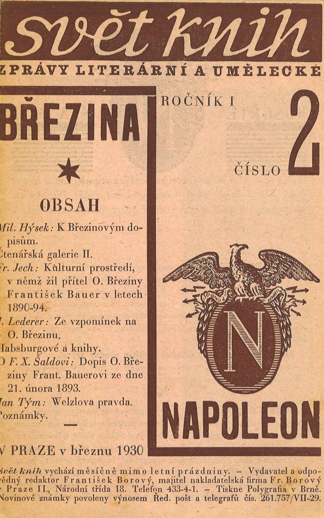 Názvové údaje Un poeta ceco moderno Otokar Březina / Ettore Lo Gatto Osobní jméno Lo Gatto, Ettore, 1890-1983 (Autor) Další autoři Anonima Romana Editoriale (vydavatelství) Nakladatel Roma : Anonima Romana Editoriale, 1930 Rozsah Strana 318-442 : 1 portrét ; 22,5 cm Osobní hesla Březina, Otokar, 1868-1929 - učitel, básník, esejista, prozaik a myslitel Klíčová slova čeští spisovatelé * čeští básníci * život a dílo * stol. 19.-20. Počet ex. 1, z toho volných 1 Druh dok. periodika Signatura Holman-Březina 0201 Názvové údaje Svět knih : zprávy literární a umělecké. Ročník I, číslo 2 / vydavatel a odpovědný redaktor František Borový Další autoři Borový, František, 1874-1936 (Redaktor, výkonný redaktor) (Nakladatel, vydavatel) Korp. Polygrafia (nakladatelství a tiskárna, Brno) (Tiskař) Nakladatel V Praze : Fr. Borový, 1930 Výrobce V Brně : Polygrafia Rozsah Strana 9-24 : ilustrace ; 17,5 cm Osobní hesla Březina, Otokar, 1868-1929 - učitel, básník, esejista, prozaik a myslitel Klíčová slova zpravodaj * literatura * umění * r. 1930 Počet ex. 1, z toho volných 1 Druh dok. periodika Signatura Holman-Březina 0573
