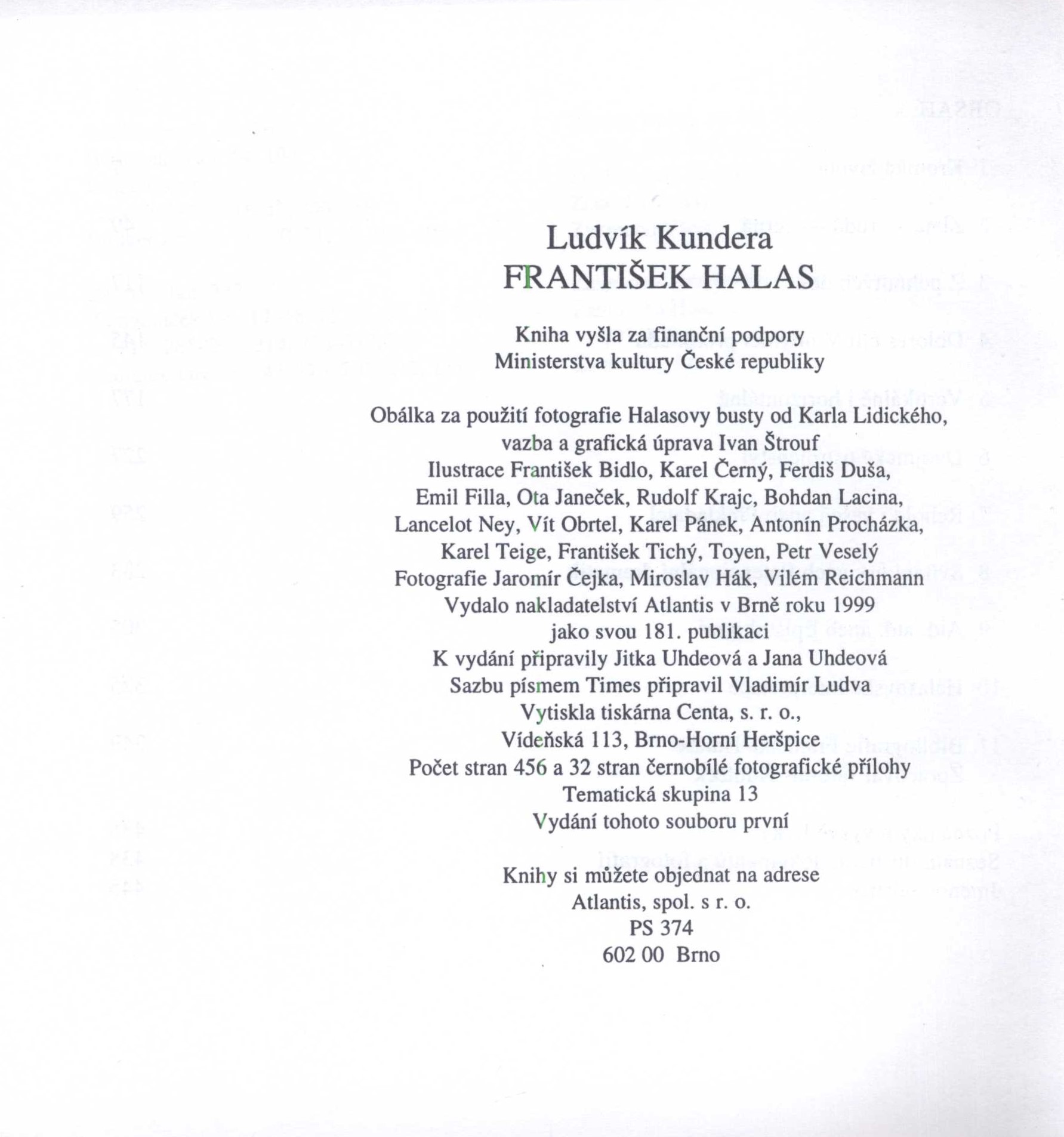 Názvové údaje Zajatci tmy : román / Jean Paul Clébert ; z francouzského originálu Le Blockhaus ... přeložil a doslovem opatřil V. Cibula Osobní jméno Clébert, Jean-Paul, 1926-2011 (Autor) Další autoři Cibula, Václav, 1925-2009 (Překladatel) (Autor doslovu, tiráže atd.) Černý, Karel, 1910-1960 (Autor obálky) (Ilustrátor) (Výtvarník vazby) Korp. Svobodné slovo - Melantrich (nakladatelství) (Nakladatel, vydavatel) Jihočeské tiskárny (firma) (Tiskař) (Tiskař obrazu) Nakladatel Praha : Svobodné slovo-Melantrich, 1958 Výrobce Vimperk : Jihočeské tiskárny, n. p., provozovna 13 Rozsah 154 stran : ilustrace ; 21 cm Klíčová slova francouzská literatura * próza * román * Clébert J. P. * válečný román * český překlad * Cibula V. * 2. světová válka Počet ex. 3, z toho volných 3 Druh dok. monografie Signatura MEL 0800, MEL 1175, VZinková 0619 Názvové údaje Zločin a trest : román o 6 částech a epilogu / F.M. Dostojevskij ; přeložil Jaroslav Hulák ; doslov napsal Václav Běhounek ; obálku a vazbu navrhl a kresbou protitulu vyzdobil Karel Černý ; graficky upravil Antonín Kodeda Osobní jméno Dostojevskij, Fedor Michajlovič, 1821-1881 (Autor) Další autoři Hulák, Jaroslav, 1920-1999 (Překladatel) Běhounek, Václav, 1902-1980 (Autor doslovu, tiráže atd.) Černý, Karel, 1910-1960 (Ilustrátor) (Autor obálky) (Výtvarník vazby) Kodeda, Antonín, 1917- (Knižní grafik) Korp. Svět sovětů (nakladatelství) (Nakladatel, vydavatel) Rudé právo (tiskárna, Praha) (Tiskař) Severografia Liberec (tiskárna) (Tiskař obrazu) Nakladatel Praha : Svět sovětů, 1958 Výrobce Praha : Rudé právo, vydavatelství ÚV KSČ Rozsah 544 stran, 1 nečíslovaný list barevné obrazové přílohy ; 20 cm Osobní hesla Dostojevskij, Fedor Michajlovič, 1821-1881 - ruský spisovatel Klíčová slova ruská literatura * próza * Dostojevskij F. M. * román * překlad * Hulák J. Počet ex. 2, z toho volných 2 Adr. el. zdr. http://www.bibliohelp.cz/sites/default/files/fulltext/Zlocin_a_trest.pdf Druh dok. monografie Signatura VZinková 0226, JVladislav 819 Názvové údaje Malíř Karel Černý = [Der Maler K. Černý] / Jan Drda ; [obálka F. Muziky] Osobní jméno Drda, Jan, 1915-1970 (Autor) Další autoři Muzika, František, 1900-1974 (Autor obálky) Korp. Česká grafická Unie (tiskárna a nakladatelství) (Tiskař) Nakladatel V Praze : Dr. Václav Tomsa, 1943 Výrobce (Česká grafická Unie) Rozsah 34 s. : il. ; 8° Osobní hesla Černý, Karel, 1910-1960 - malíř Klíčová slova výtvarné umění * české malířství * čeští malíři Počet ex. 1, z toho volných 1 Druh dok. monografie Signatura K CH V 39 Názvové údaje Malíř Karel Černý = [Der Maler K. Černý] / Jan Drda ; [obálka F. Muziky] Osobní jméno Drda, Jan, 1915-1970 (Autor) Další autoři Muzika, František, 1900-1974 (Autor obálky) Korp. Česká grafická Unie (tiskárna a nakladatelství) (Tiskař) Nakladatel V Praze : Dr. Václav Tomsa, 1943 Výrobce (Česká grafická Unie) Rozsah 34 . : il. ; 8° Osobní hesla Černý, Karel, 1910-1960 - malíř Klíčová slova výtvarné umění * české malířství * čeští malíři Počet ex. 2, z toho volných 2 Druh dok. monografie Signatura P 65 a 47, M 22 b 14 Názvové údaje Komedie / Carlo Goldoni ; [uspořádal a komentáře napsal Jaroslav Pokorný ; z italštiny a francouzštiny přeložili Jaroslav Pokorný (hry) a Jan Vladislav (Paměti) ; obálku a vazbu navrhl a kresbami doprovodil Karel Černý ; graficky upravil Alois Hodek]. svazek třetí Osobní jméno Goldoni, Carlo, 1707-1793 (Autor) Další autoři Pokorný, Jaroslav, 1920-1983 (Sestavovatel, kompilátor) (Autor komentáře textu) (Překladatel) Vladislav, Jan, 1923-2009 (Překladatel) Černý, Karel, 1910-1960 (Autor obálky) (Výtvarník vazby) (Ilustrátor) Hodek, Alois (Knižní grafik) Korp. Státní nakladatelství krásné literatury, hudby a umění (Nakladatel, vydavatel) Orbis (tiskárna) (Tiskař) Nakladatel Praha : Státní nakladatelství krásné literatury, hudby a umění, 1957 Výrobce Orbis) Rozsah 474 s. : il. Osobní hesla Goldoni, Carlo, 1707-1793 - italský dramatik, prozaik, básník a divadelní režisér Klíčová slova italské divadlo * Goldoni C. * divadelní hry * paměti * výbor Počet ex. 1, z toho volných 1 Druh dok. monografie Signatura JVladislav 172 Názvové údaje Magická moc poesie / František Halas ; vybral a uspořádal Jan Grossman a Vladimír Justl ; doslov Jiří Brabec ; ediční příprava a poznámky Vladimír Justl ; na frontispicu kresba Františka Bidla ; obálku navrhl Karel Černý ; typograficky upravil Zdenek Seydl Osobní jméno Halas, František, 1901-1949 (Autor) Další autoři Grossman, Jan, 1925-1993 (Sestavovatel, kompilátor) Justl, Vladimír, 1928-2010 (Sestavovatel, kompilátor) (Autor úvodu atd.) (Editor) Brabec, Jiří, 1929- (Autor doslovu, tiráže atd.) Bidlo, Franta, 1895-1945 (Ilustrátor) Černý, Karel, 1910-1960 (Autor obálky) Seydl, Zdenek, 1916-1978 (Knižní grafik) (Typograf) Korp. Československý spisovatel (nakladatelství) (Nakladatel, vydavatel) Tisk Brno (tiskárna) (Tiskař) Nakladatel Praha : Československý spisovatel, 1958 Výrobce V Brně : Tisk, knižní výroba, n. p. Rozsah 154, stran : ilustrace ; 19 cm Klíčová slova česká literatura * články * výběr * literární studie * kulturně politické články * Halas F. Počet ex. 4, z toho volných 4 Druh dok. monografie Signatura AČS 00856, AČS 00856a, OŘíha 072, R&AHamanovi 1602 Názvové údaje Staré ženy / František Halas ; [s kresbami Karla Černého] Osobní jméno Halas, František, 1901-1949 (Autor) Další autoři Černý, Karel, 1910-1960 (Ilustrátor) Korp. Nakladatelské družstvo Máje (Nakladatel, vydavatel) Průmyslová tiskárna v Praze (Tiskař) Nakladatel V Praze : vydalo Nakladatelské družstvo Máje v Praze pro Literární klub Máj, 1947 Výrobce (Průmysl