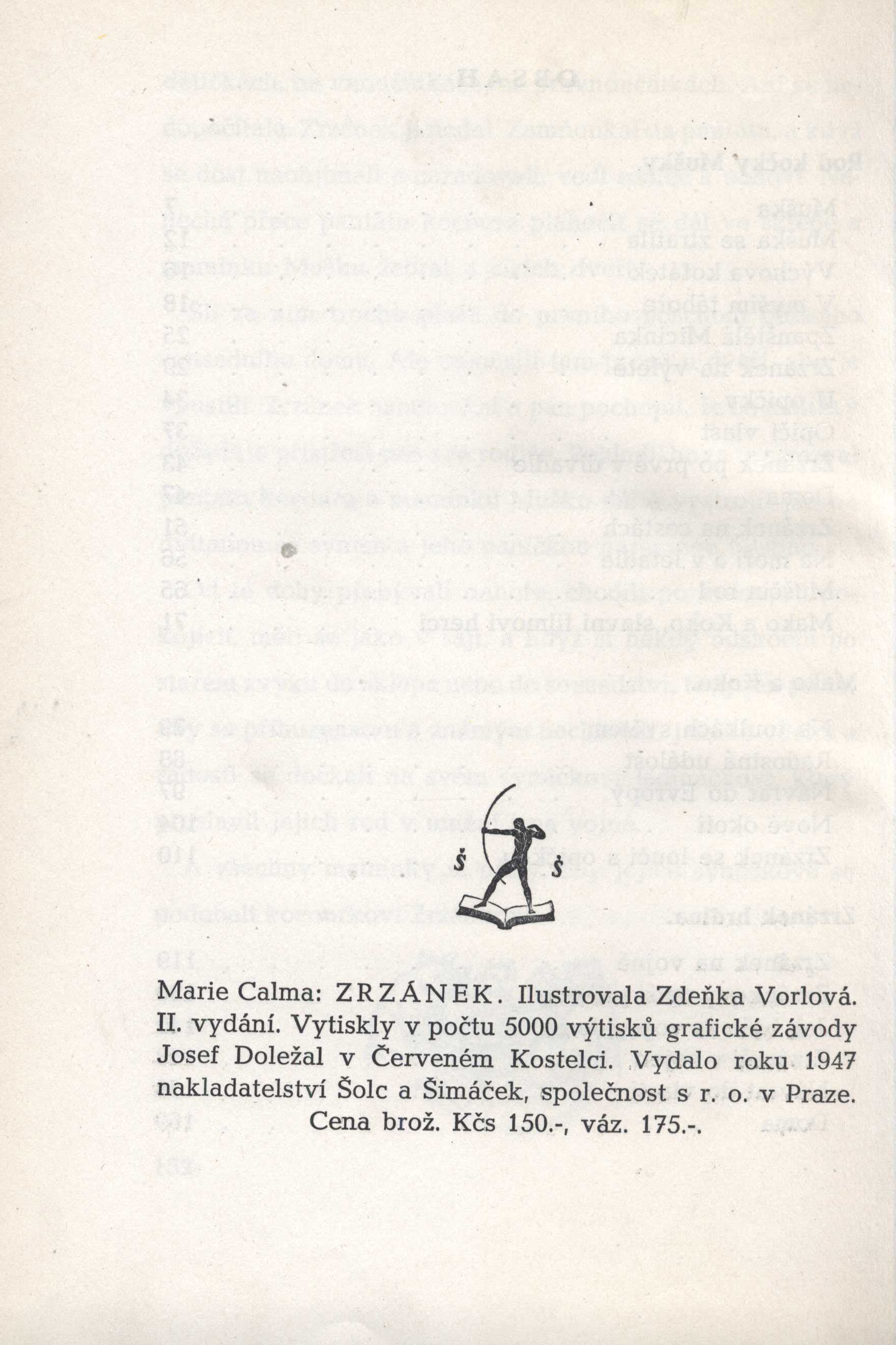 Názvové údaje Svatá Helena : maličký ostrov / Mark Aleksandr Aldanov ; se svolením autorovým z ruštiny přeložila Dagmar Autratová Osobní jméno Aldanov, Mark Aleksandrovič, 1886-1957 (Autor) Další autoři Outratová, Dagmar, 1905-1968 (Překladatel) Korp. Šolc a Šimáček (nakladatelství) (Nakladatel, vydavatel) Neuber, Pour a spol. (tiskárna) (Nakladatel, vydavatel) Nakladatel V Praze : Šolc a Šimáček, 1926 Výrobce Neuber, Pour a spol. Rozsah 126 stran Klíčová slova ruská literatura Počet ex. 1, z toho volných 1 Druh dok. monografie Signatura P 58 f 40 Názvové údaje Svatá Helena, maličký ostrov / M. A. Aldanov ; se svolením autora z ruštiny přeložila Dagmar Autratová Osobní jméno Aldanov, Mark Aleksandrovič, 1886-1957 (Autor) Další autoři Outratová, Dagmar, (Překladatel) 1905-1968 Korp. Šolc a Šimáček (nakladatelství) (Nakladatel, vydavatel) Neuber, Pour a spol. (tiskárna) (Tiskař) Nakladatel V Praze : Šolc a Šimáček, 1930 Výrobce Neuber, Pour a spol. Rozsah 126 stran Klíčová slova ruská literatura Počet ex. 1, z toho volných 1 Druh dok. monografie Signatura P 29 d 69 Názvové údaje Doplněk ilustrovaného průvodce po Slovensku / napsal Stanislav Klíma Osobní jméno Bílý, František, 1854-1920 (Autor) Další autoři Klíma, Stanislav, 1878-1944 (Autor) Korp. Šolc a Šimáček (nakladatelství) (Nakladatel, vydavatel) Dr. Ed. Grégr a syn (nakladatelství, tiskárna) (Tiskař) Nakladatel V Praze : Nakladatelství Šolc a Šimáček, společnost s r. o., 1925 Výrobce V Kutné Hoře : Knihtiskárna Dr. Ed. Grégra a syna, 1925 Rozsah 27 stran Klíčová slova česká literatura * Slovensko * průvodce * turistický průvodce Počet ex. 1, z toho volných 1 Druh dok. monografie Signatura KaG XXV A 56 Názvové údaje V zemi umění : (tři měsíce v Italii) / Vicente Blasco Ibañez ; ze španělštiny přeložil Karel Vít-Veith Osobní jméno Blasco Ibáñez, Vicente, 1867-1928 (Autor) Další autoři Šolc a Šimáček (nakladatelství) (Nakladatel, vydavatel) Neuber, Pour a spol. (tiskárna) (Tiskař) Nakladatel V Praze : Šolc a Šimáček, společnost s r.o. [1928] Výrobce Grafické závody Neuber, Pour a spol. Rozsah 299 stran : ilustrace ; 22 cm Klíčová slova umění * výtvarné umění * italská architektura * městská architektura * církevní architektura * církevní umění * italští umělci * Itálie Počet ex. 1, z toho volných 1 Druh dok. monografie Signatura Patočka 0235 Názvové údaje Mako a Koko, čili, Zrzánkovy další osudy / dětem pro radost napsala Marie Calma ; ilustrovala Zdenka Vorlová Osobní jméno Calma, Marie, 1881-1966 (Autor) Další autoři Vorlová-Vlčková, Zdenka, (Ilustrátor) 1872-1954 Korp. Šolc a Šimáček (nakladatelství) (Nakladatel, vydavatel) Neuber, Pour a spol. (tiskárna) (Tiskař) Nakladatel V Praze : Nakladatelství Šolc a Šimáček, společnost s r. o., 1931 Výrobce Neuber, Pour a spol. Rozsah 95 stran ; ilustrace ; 26 cm Klíčová slova česká próza * pohádky o zvířatech * literatura pro děti Počet ex. 1, z toho volných 1 Druh dok. monografie Signatura ZB 2 A 29 Názvové údaje Zrzánek / dětem pro radost napsala Marie Calma ; ilustrovala Zdeňka Vorlová Osobní jméno Calma, Marie, 1881-1966 (Autor) Další autoři Vorlová-Vlčková, Zdenka, (Ilustrátor) 1872-1954 Korp. Šolc a Šimáček (nakladatelství) (Nakladatel, vydavatel) Josef Doležal (Červený Kostelec, Česko) (Tiskař) Nakladatel V Praze : Nakladatelství Šolc a Šimáček, společnost s r.o., 1947 Výrobce V Červeném Kostelci : grafické závody Josef Doležal Rozsah 182 stran : ilustrace ; 24,5 cm Počet ex. 2, z toho volných 2 Druh dok. monografie Signatura P 3 C 28, ZB 2 A 46 Názvové údaje Balady / Karel Dewetter Osobní jméno Dewetter, Karel, 1882-1962 (Autor) (Dedikátor) Další autoři Karásek ze Lvovic, Jiří, 1871-1951 (Dedikant) Korp. Šolc a Šimáček (nakladatelství) (Nakladatel, vydavatel) Grafické závody Pour a spol. (Praha, Plzeň) (Tiskař) Nakladatel V Praze : Šolc a Šimáček, 1939 Výrobce (Grafické závody Pour a spol.) Rozsah 57 s. Klíčová slova česká literatura * česká poezie * balady * epická poezie * básnické sbírky * stol. 20., léta 30. * r. 1939 Počet ex. 2, z toho volných 2 Druh dok. monografie Signatura KaG XXXIII G 30, VHB 0374 Názvové údaje O autonomii university / Rudolf Dominik Osobní jméno Dominik, Rudolf, 1890-1951 (Autor) Další autoři Šolc a Šimáček (nakladatelství) (Nakladatel, vydavatel) Holinkova tiskárna Viktorin a Žatečka (Praha) (Tiskař) Nakladatel Praha : Šolc a Šimáček, 1937 Výrobce (Tiskárna Holinkova n. Jindřich Žatečka) Rozsah 95 s. ; 8° Klíčová slova vysoké školy * legislativa * samospráva * studie * česká literatura Počet ex. 1, z toho volných 1 Druh dok. monografie Signatura VHB 0376 Názvové údaje O autonomii university / Rudolf Dominik Osobní jméno Dominik, Rudolf, 1890-1951 (Autor) Další autoři Šolc a Šimáček (nakladatelství) (Nakladatel, vydavatel) Holinkova tiskárna Viktorin a Žatečka (Praha) (Tiskař) Nakladatel Praha : Šolc a Šimáček, 1937 Výrobce (Tiskárna Šolc a Šimáček n. Jindřich Žatečka) Rozsah 95 s. ; 8° Klíčová slova vysoké školy * legislativa * samospráva * studie Počet ex. 1, z toho volných 1 Druh dok. monografie Signatura M 45 f 45 Názvové údaje Vyhubení Slovanů pobaltských = Helmholdi presbyteri bozoviensis cronica Slavorum : (s mapkou) / slovanská kronika bošovského kněze Helmholda ; z latiny přeložil, úvodem a poznámkami opatřil Pavel Papáček. [I.] Autor Helmold, asi 1120-asi 1177 (Autor) Další autoři Papáček, Pavel, 1863-1930 (Překladatel) (Autor úvodu atd.) (Editor) Korp. Šolc a Šimáček (nakladatelství) (Nakladatel, vydavatel) Grafické závody Neuber, Pour a spol. (Tiskař) Podřípské knihkupectví Josef Nývlt (Kralupy nad Vltavou) (Knihkupec) Nakladatel V