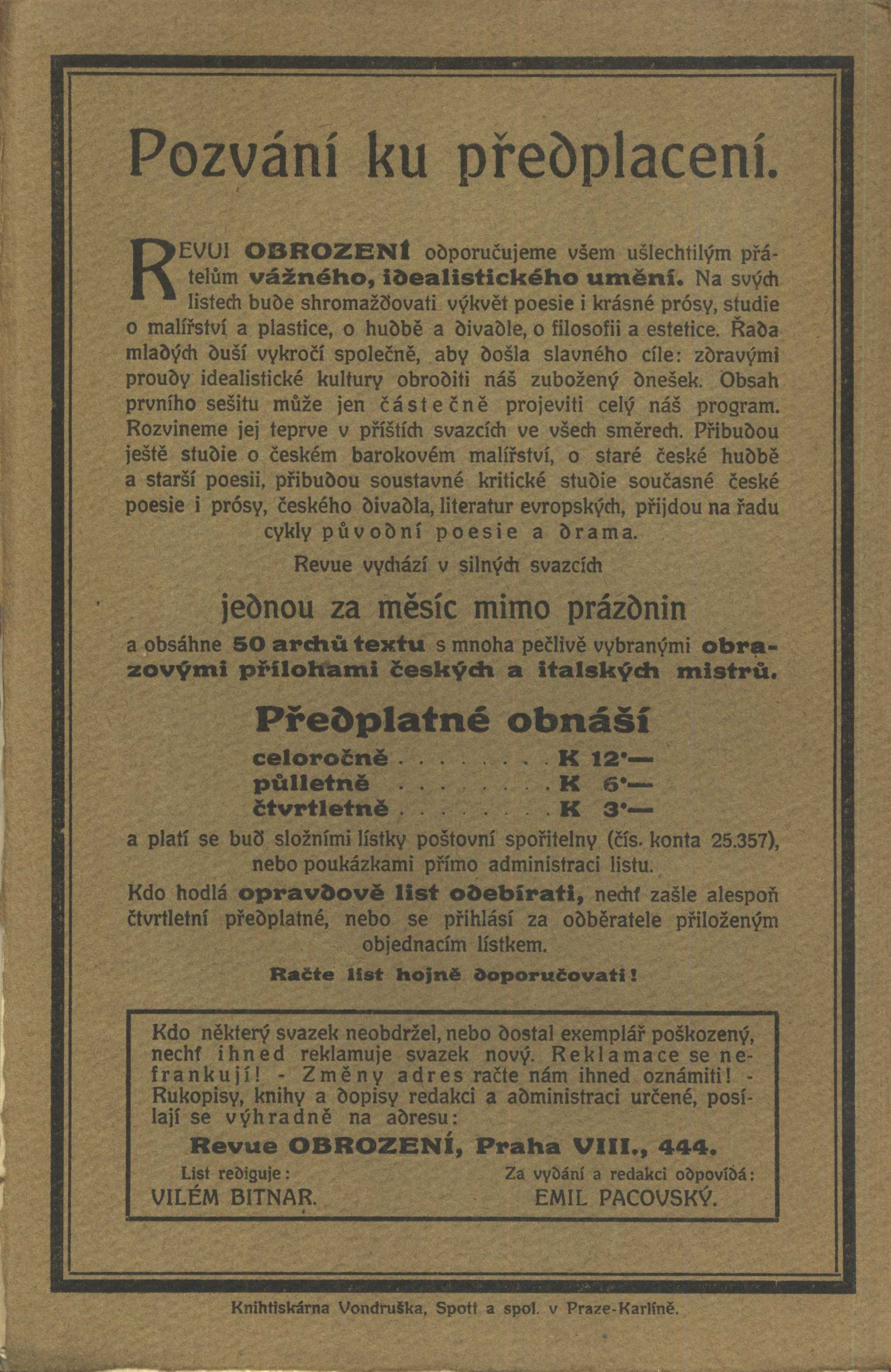 Názvové údaje Archa : sborník pro literaturu, umění, kulturu a život Další autoři Zamykal, Ladislav, 1884-1937 (Editor) Němec, Karel, 1879-1960 (Ilustrátor) Hrabal, Arnošt, 1886-1969 (Ilustrátor) Bílkovský, František, 1909-1998 (Ilustrátor) Gajdoš, Adolf, 1884-1966 (Editor) Masák, Emanuel, 1883-1964 (Editor) Korp. Družina literární a umělecká (spolek) (pbl (spolek)) Lidová tiskárna (Olomouc (Česko)) (prt (Olomouc (Česko))) Roč., číslo ročník 23, číslo 1-6, 1935 Nakladatel V Olomouci : Družina literární a umělecká, 1935 Výrobce (Lidová tiskárna) Rozsah il. 287 s., [4] s. obsahu ročníku, [7] l. obr. příl. Osobní hesla Podlaha, Antonín, 1865-1932 - literární a náboženský historik * Dudík, Antonín, 1824-1892 - český katolický kněz * Bridel, Bedřich, 1619-1680 - jezuita, básník * Vojtěch, svatý, asi 955-997 - pražský biskup, misionář a mučedník z rodu Slavníkovců, zemský patron Česka a Polska * Tomáš Akvinský, svatý, 1225-1274 - italský dominikán, teolog a filozof * Lanson, Gustave, 1857-1934 - francouzský literární kritik a historik, vysokoškolský pedagog * Hildegarda, z Bingenu, svatá, 1098-1179 - německá mystička, abatyše, autorka spisů * Bitnar, Vilém, 1874-1948 - básník, kritik, literární historik, redaktor Klíčová slova česká literatura * české časopisy * časopisy * literární časopis * literární časopisy * literární revue * katolíci * katolicismus * česká katolická moderna * česká katolická poezie * český katolicismus * katolická literatura * katolická poezie * katolické duchovenstvo * katolictví * česká poezie * česká próza * literární kritika * teologie * náboženství * r. 1935 Nadřízená jednotka Archa Počet ex. 1, z toho volných 1 Druh dok. PERIODIKA - Svázaný ročník periodika Signatura KaG LII B 5m Názvové údaje Archa : sborník pro literaturu, umění, kulturu a život Další autoři Zamykal, Ladislav, 1884-1937 (Editor) Hlavica, Emil, 1887-1952 (Sochař) Slavíček, Antonín Václav, 1895-1938 (Ilustrátor) Hrabal, Arnošt, 1886-1969 (Ilustrátor) Gajdoš, Adolf, 1884-1966 (Editor) Masák, Emanuel, 1883-1964 (Editor) Korp. Družina literární a umělecká (spolek) (pbl (spolek)) Lidová tiskárna (Olomouc (Česko)) (prt (Olomouc (Česko))) Roč., číslo ročník 22, číslo 1-4, 1934 Nakladatel V Olomouci : Družina literární a umělecká, 1934 Výrobce (Lidová tiskárna) Rozsah il. 327 s., [4] s. obsahu ročníku, [13] l. obr. příl. Osobní hesla Bitnar, Vilém, 1874-1948 - básník, kritik, literární historik, redaktor * George, Stefan, 1868-1933 - německý lyrik, esejista a překladatel * Třanovský, Jiří, 1592-1637 - český evangelický kněz * Slavíček, Antonín Václav, 1895-1938 - malíř, grafik, ilustrátor, karikaturista * Mauriac, François, 1885-1970 - francouzský romanopisec, esejista, dramatik Klíčová slova česká literatura * české časopisy * časopisy * literární časopis * literární časopisy * literární revue * katolíci * katolicismus * česká katolická moderna * česká katolická poezie * český katolicismus * katolická literatura * katolická poezie * katolické duchovenstvo * katolictví * česká poezie * česká próza * literární kritika * teologie * náboženství * r. 1934 Nadřízená jednotka Archa Počet ex. 1, z toho volných 1 Druh dok. PERIODIKA - Svázaný ročník periodika Signatura KaG LII B 5l Názvové údaje Archiv literární : prameny dějin české literatury katolické : příloha k revui Archa Další autoři Zamykal, Ladislav, 1884-1937 (Editor) Bitnar, Vilém, 1874-1948 (Editor) Korp. Družina literární a umělecká (spolek) (Nakladatel, vydavatel) Knihtiskárna J. Strojil (Tiskař) Roč., číslo ročník 2, číslo 1-19, 1920-1921 Nakladatel Olomouc : Nákladem Družiny literární a umělecké, 1920-1921 Výrobce Tiskem Jar. Strojila) Rozsah 387 s. Osobní hesla Doucha, František, 1810-1884 - český katolický kněz, spisovatel, bibliograf a překladatel * Marten, Miloš, 1883-1917 - spisovatel, překladatel, kritik * Jirsík, Jan Valerian, 1798-1883 - biskup, buditel, redaktor * Jan z Hvězdy, 1803-1853 - katolický kněz, básník, prozaik * Ebner-Eschenbach, Marie von, 1830-1916 - spisovatelka * Dudík, Beda, 1815-1890 - O.S.B., historik * Bačkovský, František, 1854-1908 - spisovatel, překladatel, nakladatel, knihkupec, redaktor Klíčová slova česká literatura * dějiny české literatury * česká literární věda * české časopisy * katolíci * katolicismus * katolická literatura * katolická moderna * katolická poezie * katoličtí kněží * literární historie * literární teorie * studie * metody * edice * edice pramenů * korespondence * r. 1920-1921 Nadřízená jednotka Archiv literární Počet ex. 2, z toho volných 2 Druh dok. PERIODIKA - Svázaný ročník periodika Signatura KaG XLIV E 17, Q 43 G 30 Odkazy (1) - PERIODIKA - Svázaný ročník periodika Názvové údaje Archiv literární : prameny dějin české literatury katolické : příloha k revui Archa Další autoři Zamykal, Ladislav, 1884-1937 (Editor) Bitnar, Vilém, 1874-1948 (Editor) Čmejrek, Eduard (Editor) Korp. Družina literární a umělecká (spolek) (Nakladatel, vydavatel) Knihtiskárna J. Strojil (Tiskař) Roč., číslo ročník 1, číslo 1-17, 1918-1919 Nakladatel Olomouc : Nákladem Družiny literární a umělecké, 1918-1919 Výrobce Tiskem Jar. Strojila) Rozsah 339 s. Osobní hesla Doucha, František, 1810-1884 - český katolický kněz, spisovatel, bibliograf a překladatel * Kott, František Štěpán, 1825-1915 - lexikograf, překladatel * Lang, Alois, 1869-1957 - středoškolský profesor náboženství, překladatel * Dostál-Lutinov, Karel, 1871-1923 - básník a publicista, překladatel * Zeyer, Julius, 1841-1901 - básník, prozaik, dramatik, překladatel * Bitnar, Vilém, 1874-1948 - básník, kritik, literární historik, r