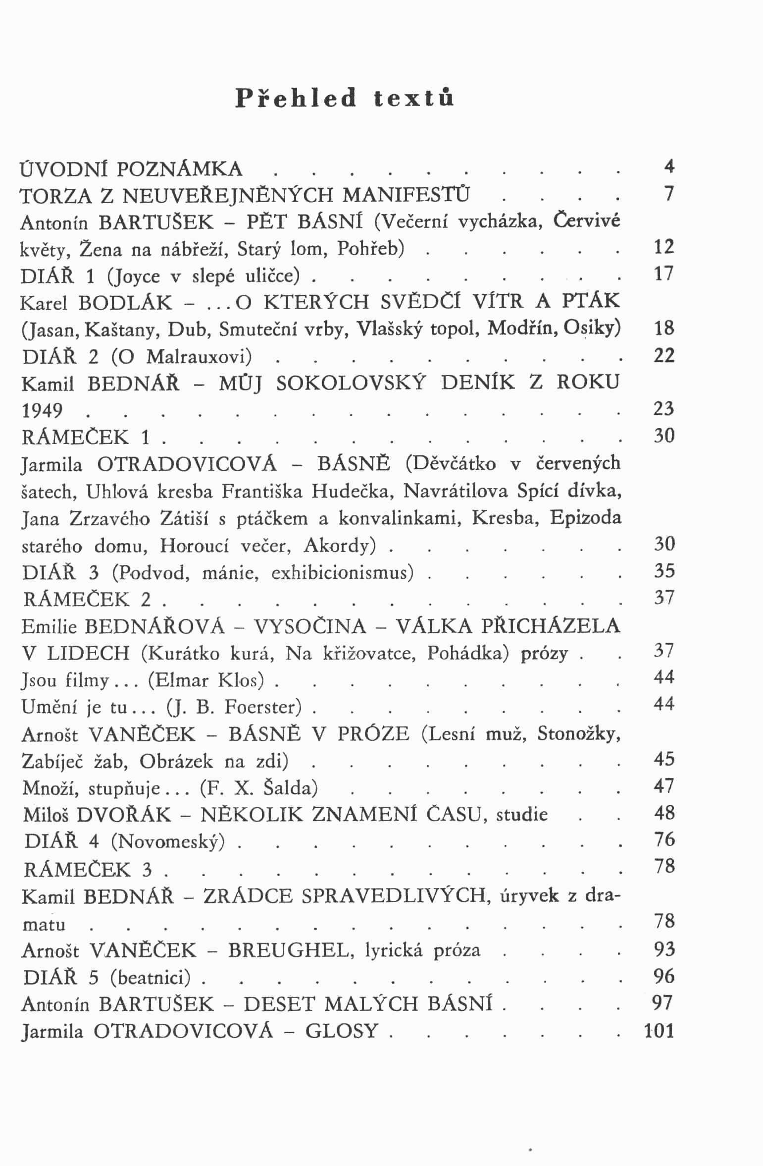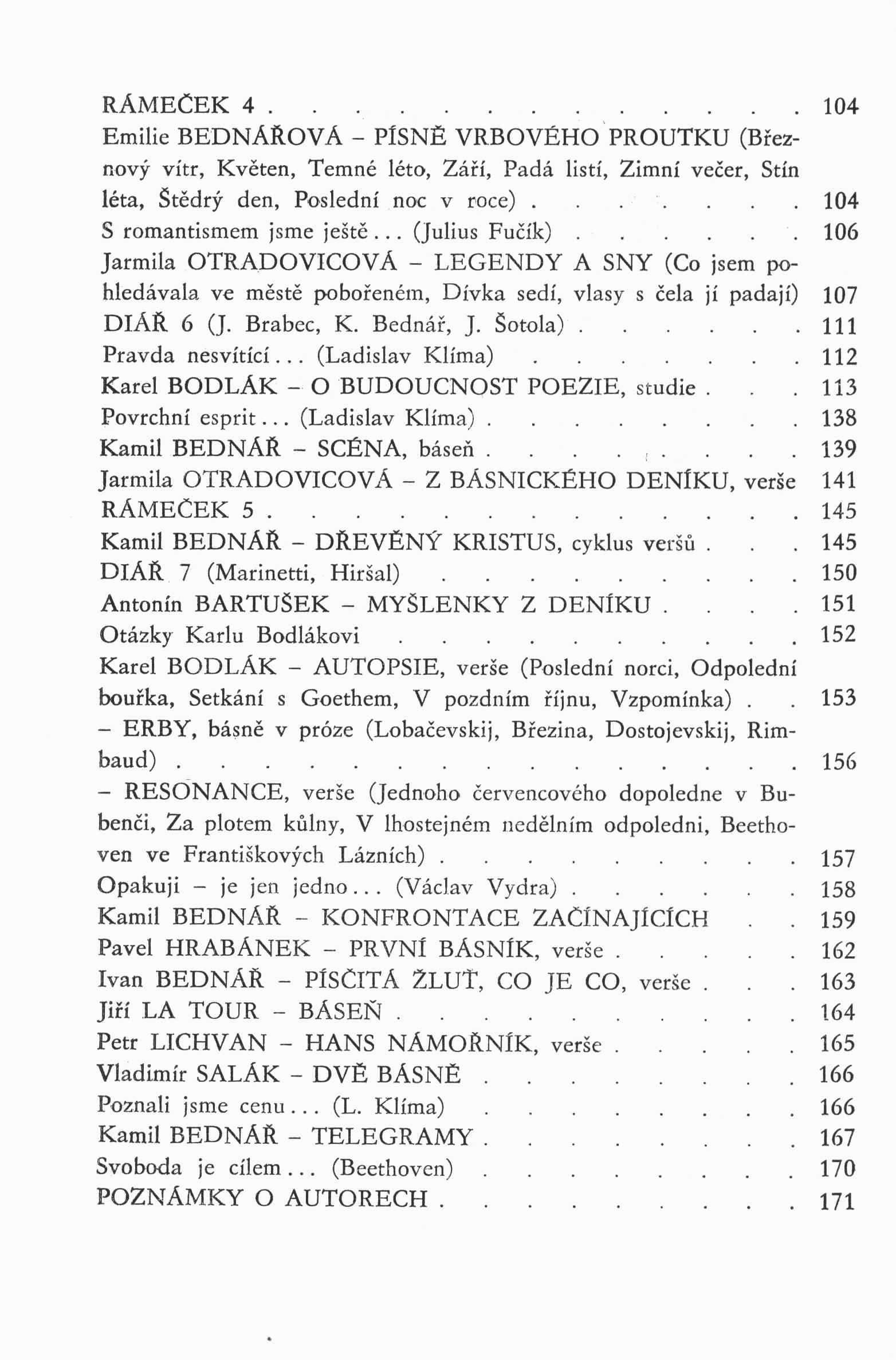 Názvové údaje První parta / Karel Čapek ; Obálku a vazbu navrhl Libor Wagner ; Graf. upravil Lumír Ševčík Osobní jméno Čapek, Karel, 1890-1938 (Autor) Další autoři Wagner, Libor, 1933-1994 Ševčík, Lumír, 1921-2016 (Grafický technik) Nakladatel Praha : Práce, 1970 Rozsah 162 s. : il Klíčová slova česká literatura * próza * román * stol. 20., léta 30. Počet ex. 1, z toho volných 1 Druh dok. monografie Signatura C12b 899 Názvové údaje Zpěv rodné zemi / báseň Josefa Hory ; [dřevoryty Libor Wagner] Osobní jméno Hora, Josef, 1891-1945 (Autor) Další autoři Wagner, Libor, 1933-1994 (Ilustrátor) Korp. Památník národního písemnictví (muzeum literatury) (Nakladatel, vydavatel) Nakladatel Praha : Památník národního písemnictví, 1968 Rozsah 13 s. : il. Klíčová slova česká literatura * poezie * básně * verše Počet ex. 1, z toho volných 1 Druh dok. monografie Signatura R&AHamanovi 0995 Názvové údaje Vteřiny zrání / Jiří Karen Osobní jméno Karen, Jiří, 1920-2000 (Autor) Další autoři Wagner, Libor, 1933-1994 (Ilustrátor) Korp. Práce (nakladatelství, tiskárna) (Nakladatel, vydavatel) Mír, novinářské závody (tiskárna) (Tiskař) Nakladatel Praha : Práce, 1972 Výrobce (Mír 1) Rozsah 80, [4] s. : il. ; 8° Klíčová slova česká poezie * básně * výbor básní Počet ex. 2, z toho volných 2 Druh dok. monografie Signatura P 43 c 75, ZA 6 g 34 Názvové údaje Pevný bod : Literární sborník / uspoř. Kamil Bednář, Jarmila Otradovicová ; obálka, frontisp. a typogr. úpr. Libor Wágner Další autoři Bednář, Kamil, 1912-1972 (Sestavovatel, kompilátor) Otradovicová, Jarmila, 1908-1996 (Sestavovatel, kompilátor) Wagner, Libor, 1933-1994 (Grafický technik) Nakladatel Praha : Československý spisovatel, 1967 Rozsah 175 s. Klíčová slova sborník * literatura * Pevný bod * próza * poezie * příspěvky * Bartušek A. * Bednář K. * Bednářová E. * Bodlák K. * Dvořák M. * Otradovicová J. * Vaněček A. * Bednář I. * Hrabánek P. * Lichvan P. * Salák V. * La Tour J. Počet ex. 2, z toho volných 2 Druh dok. monografie Signatura M 217 d 37, C12b 4963 Názvové údaje Pevný bod : literární sborník / uspořádali Kamil Bednář a Jarmila Otradovicová ; [obálka, frontispis a typografická úprava Libor Wagner] Další autoři Bednář, Kamil, 1912-1972 (Sestavovatel, kompilátor) Otradovicová, Jarmila, 1908-1996 (Sestavovatel, kompilátor) Wagner, Libor, 1933-1994 (Autor obálky) (Ilustrátor) (Typograf) Korp. Československý spisovatel (nakladatelství) (Nakladatel, vydavatel) Nakladatel Praha : Československý spisovatel, 1967 Rozsah 175 s. Klíčová slova česká literatura * česká próza * česká poezie * Pevný bod * literární sborník Počet ex. 4, z toho volných 4 Druh dok. monografie Signatura AČS 03096, AČS 03096a, R&AHamanovi 0472, BVolkova 0550 Názvové údaje Pole neorané / Peter Jilemnický ; ze slovenského originálu přeložil Břetislav Truhlář Osobní jméno Jilemnický, Peter, 1901-1949 (Autor) Další autoři Truhlář, Břetislav, 1926-1990 (Překladatel) Wagner, Libor, 1933-1994 (Ilustrátor) (Autor obálky) Korp. Práce (nakladatelství, tiskárna) (Nakladatel, vydavatel) Mír, novinářské závody (tiskárna) (Tiskař) Nakladatel Praha : Práce, 1968 Výrobce Mír 1 Rozsah 303 stran Klíčová slova slovenská próza * slovenský román Počet ex. 1, z toho volných 1 Druh dok. monografie Signatura P 112 e 11 Názvové údaje Vojáci bídy / Mariano Azuela ; z mexického originálu ... přeložil Václav Čep ; předmluvu napsal Eduard Hodoušek ; ilustroval Libor Wagner] Osobní jméno Azuela, Mariano, 1873-1952 (Autor) Další autoři Čep, Václav, 1908-1985 (Překladatel) Hodoušek, Eduard, 1921-2004 (Autor úvodu atd.) Wagner, Libor, 1933-1994 (Ilustrátor) Korp. Naše vojsko (nakladatelství) (Nakladatel, vydavatel) Nakladatel Praha : Naše vojsko, 1964 Rozsah 163 stran : ilustrace Klíčová slova mexická literatura * španělsky psaná literatura * romány * autobiografické prožitky Počet ex. 1, z toho volných 1 Druh dok. monografie Signatura P 56 e 26