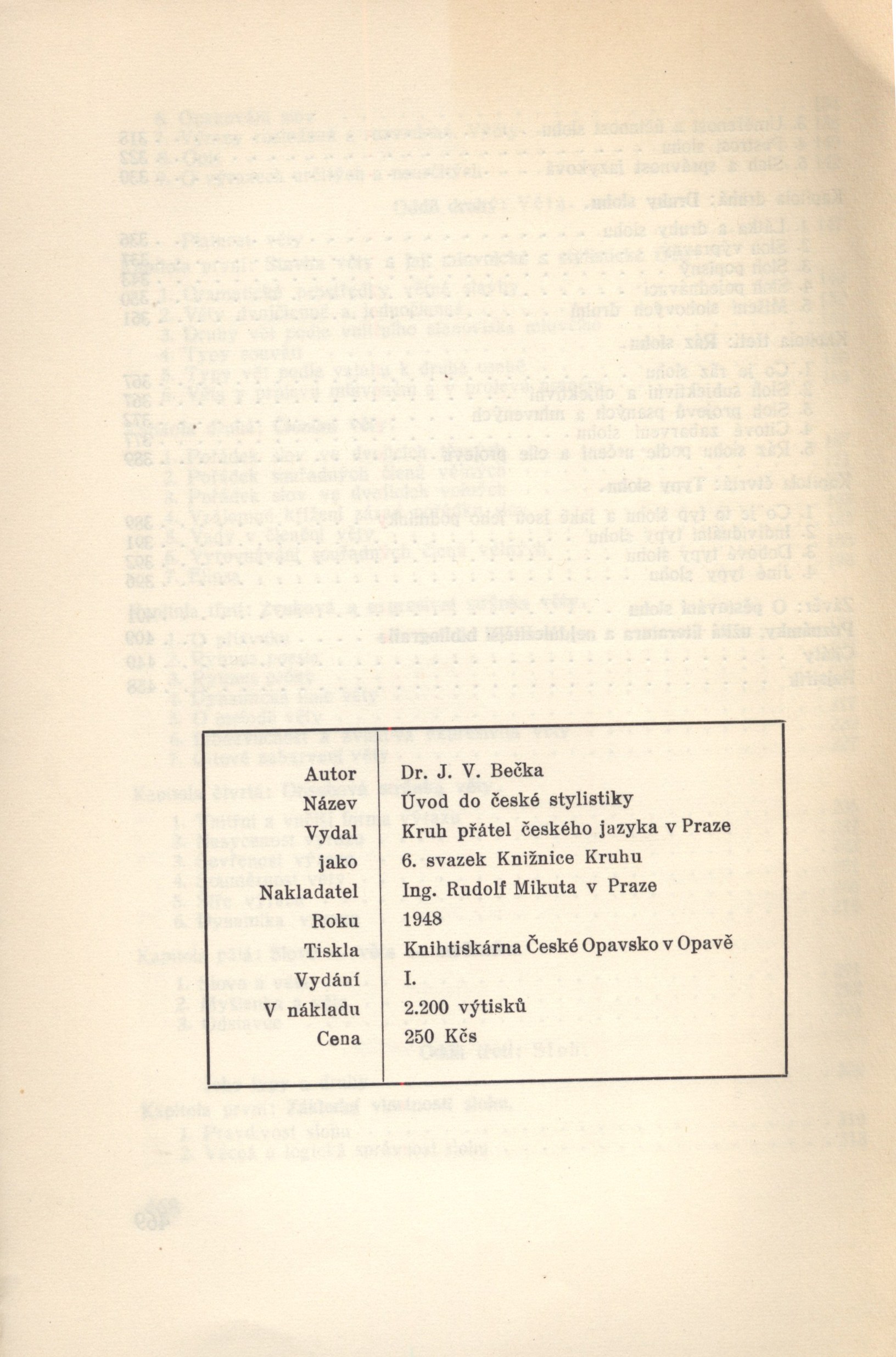 Názvové údaje Úvod do české stylistiky / J. V. Bečka Osobní jméno Bečka, Josef Václav, 1903-1992 (Autor) Další autoři Ing. R. Mikuta (nakladatelství) (Nakladatel, vydavatel) České Opavsko (Opava) (Tiskař) Nakladatel V Praze : nakladatel Ing. Rudolf Mikuta : vydal Kruh přátel českého jazyka, 1948 Výrobce Knihtiskárna České Opavsko) Rozsah 469 s. ; 22 cm Klíčová slova český jazyk * stylistika * studie * ukázky * učebnice * jazykové učebnice Počet ex. 1, z toho volných 1 Druh dok. monografie Signatura Topič 0059 Názvové údaje Stát a revoluce : učení marxismu o státu a úkoly proletariátu v revoluci / Vlad. I. Lenin ; z ruského originálu Gosudarstvo i revolucia přeložil Jaroslav Procházka ; za redakční spolupráce G. Bareše, F. Vody-Pexy a V. Prokůpka ; předmluvu napsal Vladimír Procházka ; obálku navrhl Karel Poličanský Osobní jméno Lenin, Vladimir Iľjič, 1870-1924 (Autor) Další autoři Bareš, Gustav, 1910-1979 (Editor) Procházka, Jaroslav, 1897-1980 (Překladatel) (Autor úvodu atd.) Voda-Pexa, Bedřich, 1908-1953 (Editor) Poličanský, Karel, 1913-1996 (Autor obálky) Prokůpek, Václav, 1895-1954 (Editor) Korp. Svoboda (tiskárna) (Nakladatel, vydavatel) České Opavsko (Opava) (Tiskař) Nakladatel Praha : Nakladatelství Svoboda, 1946 Výrobce Opava : České Opavsko, 1946 Rozsah 116 stran Klíčová slova socialismus * politická ekonomie * ruská literatura * komunismus * komunistická ideologie * marxismus * marxismus-leninismus * filozofie * kritické studie Počet ex. 1, z toho volných 1 Druh dok. monografie Signatura VHB 1721 Názvové údaje Kolchida : [román o budování Sovětského Svazu] / K. Paustovskij ; [přeložil Vlasta Borek ; obálka a úprava Toyen] Osobní jméno Paustovskij, Konstantin Georgijevič, 1892-1968 (Autor) Další autoři Borek, Vlastimil, 1886-1952 (Překladatel) Toyen, 1902-1980 (Autor obálky) (Grafický technik) Korp. Odeon (nakladatelství) (Nakladatel, vydavatel) České Opavsko (Opava) (Tiskař) Nakladatel [V Praze] : Odeon, 1946 Výrobce České Opavsko) Rozsah 159 s. Klíčová slova ruská literatura * sovětská literatura * překlad * próza * román * budování Sovětského Svazu * socialismus * Kolchida * Kavkaz * Sovětský svaz * stol. 20, léta 30.-40. Počet ex. 1, z toho volných 1 Druh dok. monografie Signatura C12b 12396 Názvové údaje V nový život : z historie slezské dědiny / R. Jesenický Osobní jméno Jesenický, Rudolf, 1906-1991 (Autor) Další autoři Dudič, Karel, 1918-1983 (Jiná role) Korp. Iskra (nakladatelství) (Nakladatel, vydavatel) České Opavsko (Opava) (Tiskař) Nakladatel Opava : Iskra - Ad. Tománek, 1948 Výrobce České Opavsko Rozsah 118 stran Klíčová slova Slezsko * venkovský život * historie Počet ex. 1, z toho volných 1 Druh dok. monografie Signatura M 176 d 26