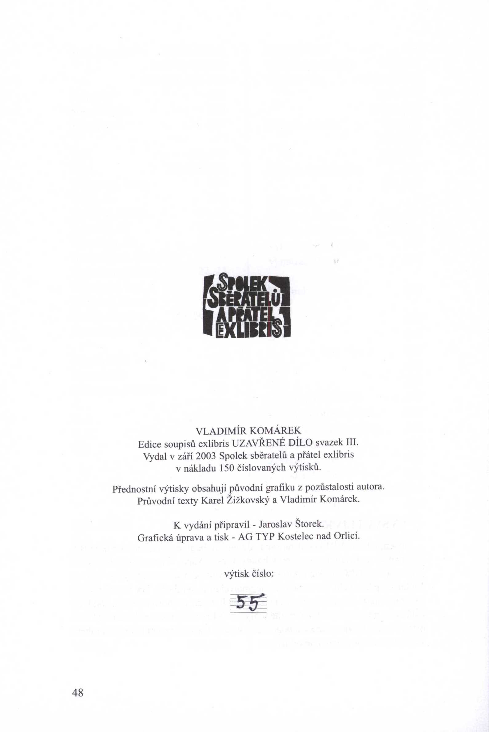 Názvové údaje Eva Bednářová : ilustrace : rodný dům Václava Šolce, Sobotka, červenec 1979 / text Jaroslav Šimůnek Osobní jméno Bednářová, Eva, 1937-1986 (Umělec) (Ilustrátor) Další autoři Šimůnek, Jaroslav, 1931-1997 (Autor) Korp. Šolcův statek (Sobotka, Česko) (Jiná role) Okresní muzeum a galerie (Jičín, Česko) (Organizátor akce) Spolek sběratelů a přátel exlibris (Organizátor akce) Nakladatelství Albatros (Organizátor akce) Rudé právo (tiskárna, Praha) (Tiskař) Nakladatel [Česko] : [nakladatel není známý], 1979 Výrobce Praha : Rudé právo, tiskařské závody Rozsah 6 nečíslovaných stran ; 21 cm Osobní hesla Bednářová, Eva, 1937-1986 - grafička, ilustrátorka, malířka Klíčová slova ilustrátorky * grafičky * knižní ilustrace * výstava * katalogy výstav * Česko * stol. 20. Počet ex. 2, z toho volných 2 Druh dok. monografie Signatura C12b 17022, C12b 19245 Názvové údaje Ladislav Josef Kašpar : soupis exlibris / autoři : František Vaníček, František Šára Osobní jméno Kašpar, Ladislav Josef, 1915-1997 (Umělec) Další autoři Vaníček, František, 1936-2022 (Autor) Šára, František, 1929-2013 (Autor) Korp. Spolek sběratelů a přátel exlibris (Nakladatel, vydavatel) Fastr typo-tisk (tiskárna) (Tiskař) Nakladatel Praha : Spolek přátel a sběratelů exlibris, 2009 Výrobce Jiří Laněk - Fastr Typo-tisk Rozsah 33 stran : ilustrace, portréty ; 21 cm Osobní hesla Kašpar, Ladislav Josef, 1915-1997 - malíř a grafik, ilustrátor, autor exlibris, pedagog Klíčová slova česká literatura * soupis * moderní umění * česká grafika * drobná grafika * exlibris * výtvarníci * Kašpar L. J. * Česko * r. 1940-1997 Počet ex. 2, z toho volných 2 Druh dok. monografie Signatura C12b 18473, C12b 18473a Názvové údaje Vladimír Komárek : soupis exlibris 1948-2002 / průvodní texty Karel Žižkovský, Vladimír Komárek ; k vydání připravil Jaroslav Štorek Osobní jméno Komárek, Vladimír, 1928-2002 (Autor) (Umělec) Další autoři Žižkovský, Karel, 1938- (Autor) Štorek, Jaroslav (Editor) Korp. AG TYP (tiskárna) (Tiskař) Spolek sběratelů a přátel exlibris (Nakladatel, vydavatel) Nakladatel Praha : Spolek sběratelů a přátel exlibris, 2003 Výrobce Kostelec nad Orlicí : AG Typ Rozsah 48 stran : ilustrace ; 21 cm Osobní hesla Komárek, Vladimír, 1928-2002 - malíř, grafik, ilustrátor, pedagog Chronologie 1948-2002 Klíčová slova exlibris * česká grafika * drobná grafika * knižní kultura * Česko * stol. 20.-21. * soupisy * r. 1948-2002 Počet ex. 1, z toho volných 1 Druh dok. monografie Signatura C12b 18882 Názvové údaje Vladimír Komárek : soupis novoročenek / autor Jaroslav Štorek Osobní jméno Komárek, Vladimír, 1928-2002 (Autor exlibris) (Ilustrátor) (Umělec) Další autoři Štorek, Jaroslav (Sestavovatel, kompilátor) (Autor) Korp. Spolek sběratelů a přátel exlibris (Nakladatel, vydavatel) AG TYP (tiskárna) (Tiskař) Nakladatel Praha : SSPE, 2003 Výrobce Kostelec nad Orlicí : AG TYP Rozsah 31 stran : ilustrace ; 21 cm + 1 grafický list Osobní hesla Komárek, Vladimír, 1928-2002 - malíř, grafik, ilustrátor, pedagog Klíčová slova česká grafika * drobná grafika * novoročenky * Česko * stol. 20.-21. * soupisy Počet ex. 1, z toho volných 1 Druh dok. monografie Signatura C12b 18883 Názvové údaje Oldřich Kulhánek : soupis novoročenek a exlibris 1969-2012 Osobní jméno Kulhánek, Oldřich, 1940-2013 (Umělec) (Ilustrátor) Další autoři Vencl, Slavomil, 1936-2019 (Sestavovatel, kompilátor) Korp. Spolek sběratelů a přátel exlibris (Nakladatel, vydavatel) Nová tiskárna Pelhřimov (tiskárna) (Sazeč) Nakladatel Praha : Spolek sběratelů a přátel exlibris, 2013 Výrobce [Pelhřimov] : Nová tiskárna Pelhřimov, spol. s r. o. Rozsah 41 stran : ilustrace, portréty ; 21 cm Osobní hesla Kulhánek, Oldřich, 1940-2013 - grafik, ilustrátor, redaktor Předmětová hesla novoročenky - Česko - 20.-21. století * exlibris - Česko - 20.-21. století * česká grafika - 20.-21. století * drobná grafika - Česko - 20.-21. století * moderní umění - Česko - 20.-21. století Klíčová slova české výtvarné umění * české grafické umění * čeští grafici * Kulhánek O. * novoročenky * exlibris * grafiky * r. 1969-2012 * soupisy * obrazové přílohy * r. 2013 Počet ex. 2, z toho volných 2 Druh dok. monografie Signatura C12b 18169, C12b 18881 Názvové údaje České sběratelství exlibris v datech : sto let SSPE / Jan Langhammer Osobní jméno Langhammer, Jan, 1939- (Autor) (Autor úvodu atd.) Další autoři Spolek sběratelů a přátel exlibris (Nakladatel, vydavatel) SOS print s. r. o. (tiskárna) (Knižní grafik) (Tiskař) (Tiskař obrazu) Nakladatel Praha : Spolek sběratelů a přátel exlibris, 2018 Výrobce Plzeň : SOS print s. r. o. Rozsah 159 stran : ilustrace (převážně barevné), portréty, faksimile ; 22 cm Heslo korporace (zkrác. heslo korp.) : Spolek sběratelů a přátel exlibris Předmětová hesla spolky - Česko - 20.-21. století * sběratelství - Česko - 20.-21. století * česká grafika - 19.-21. století * exlibris - Česko - 19.-21. století * associations - Czechia - 20th-21st centuries * collecting - Czechia - 20th-21st centuries * Czech prints - 19th-21st centuries * bookplates - Czechia - 19th-21st centuries Klíčová slova česká literatura * výtvarné umění * exlibris * české spolky * 100. výročí * Spolek sběratelů a přátel exlibris * barevné reprodukce * drobná grafika * r. 2018 Počet ex. 2, z toho volných 2 Druh dok. monografie Signatura VZinková 0745, C12b 19338 Názvové údaje Petr Melan : soupis exlibris a novoročenek 1980-2009 / autoři Slavomil Vencl, Karel Žižkovský Osobní jméno Melan, Petr, 1947- (Umělec) Další autoři Vencl, Slavomil, 1936-2019 (Autor) Žižkovský, Karel, 1938- (Autor) Korp. Spolek sběratelů a přátel exlib