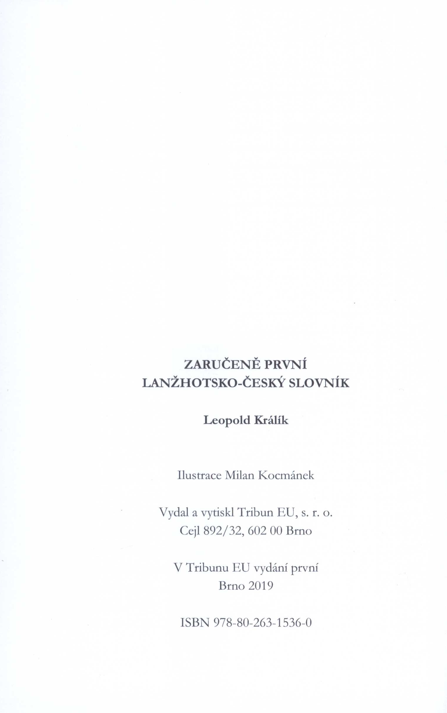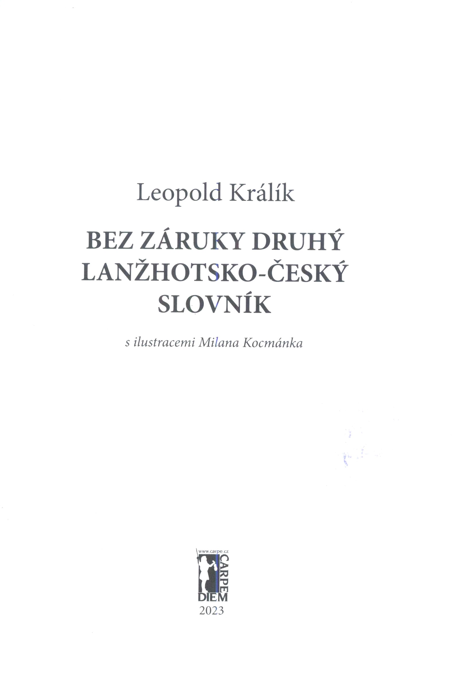 Názvové údaje Bez záruky druhý lanžhotsko-český slovník / Leopold Králík ; s ilustracemi Milana Kocmánka ; obálka, grafická úprava, sazba a redakce Michal Huvar Osobní jméno Králík, Leopold, 1954- (Autor) (Autor úvodu atd.) Další autoři Kocmánek, Milan, 1964- (Ilustrátor) Huvar, Michal, 1960- (Autor obálky) (Knižní grafik) (Sazeč) (Redaktor, výkonný redaktor) Korp. Carpe diem (nakladatelství) (Nakladatel, vydavatel) Tiskárny Havlíčkův Brod (firma) (Tiskař) Nakladatel Brumovice : Carpe diem, 2023 Výrobce Tiskárny Havlíčkův Brod, a.s. Rozsah 107 stran : ilustrace ; 22 cm Geografické heslo Lanžhot (Česko : oblast) Klíčová slova česká próza * české příběhy * humoristické příběhy Počet ex. 1, z toho volných 1 Druh dok. monografie Signatura LITb 02922 Názvové údaje Milovníci hraček, aneb, Všichni musí zemřít / Leopold Králík ; obálku navrhl Adda Adowicz Osobní jméno Králík, Leopold, 1954- (Autor) Další autoři Adowicz, Adda (Autor obálky) Korp. Carpe diem (nakladatelství) (Nakladatel, vydavatel) Carter Reproplus s.r.o. (tiskárna) (Tiskař) Nakladatel V Brumovicích : Carpe diem, 2025 Výrobce V Praze : Carter\reproplus s.r.o. Rozsah 175 stran ; 19 cm Klíčová slova česká próza * český román * detektivní román Počet ex. 1, z toho volných 1 Druh dok. monografie Signatura LITb 03157 Názvové údaje Milovníci knížek, aneb, Až na dno temnoty / Leopold Králík ; obálku navrhl Adda Adowicz Osobní jméno Králík, Leopold, 1954- (Autor) Další autoři Adowicz, Adda (Autor obálky) Korp. Carpe diem (nakladatelství) (Nakladatel, vydavatel) Tisk Kvalitně, s.r.o. (tiskárna) (Tiskař) Nakladatel V Brumovicích : Carpe diem, 2024 Výrobce V Praze : Tisk kvalitně, s.r.o. Rozsah 202 stran ; 19 cm Klíčová slova česká literatura * próza * detektivní román Počet ex. 1, z toho volných 1 Druh dok. monografie Signatura LITb 02664