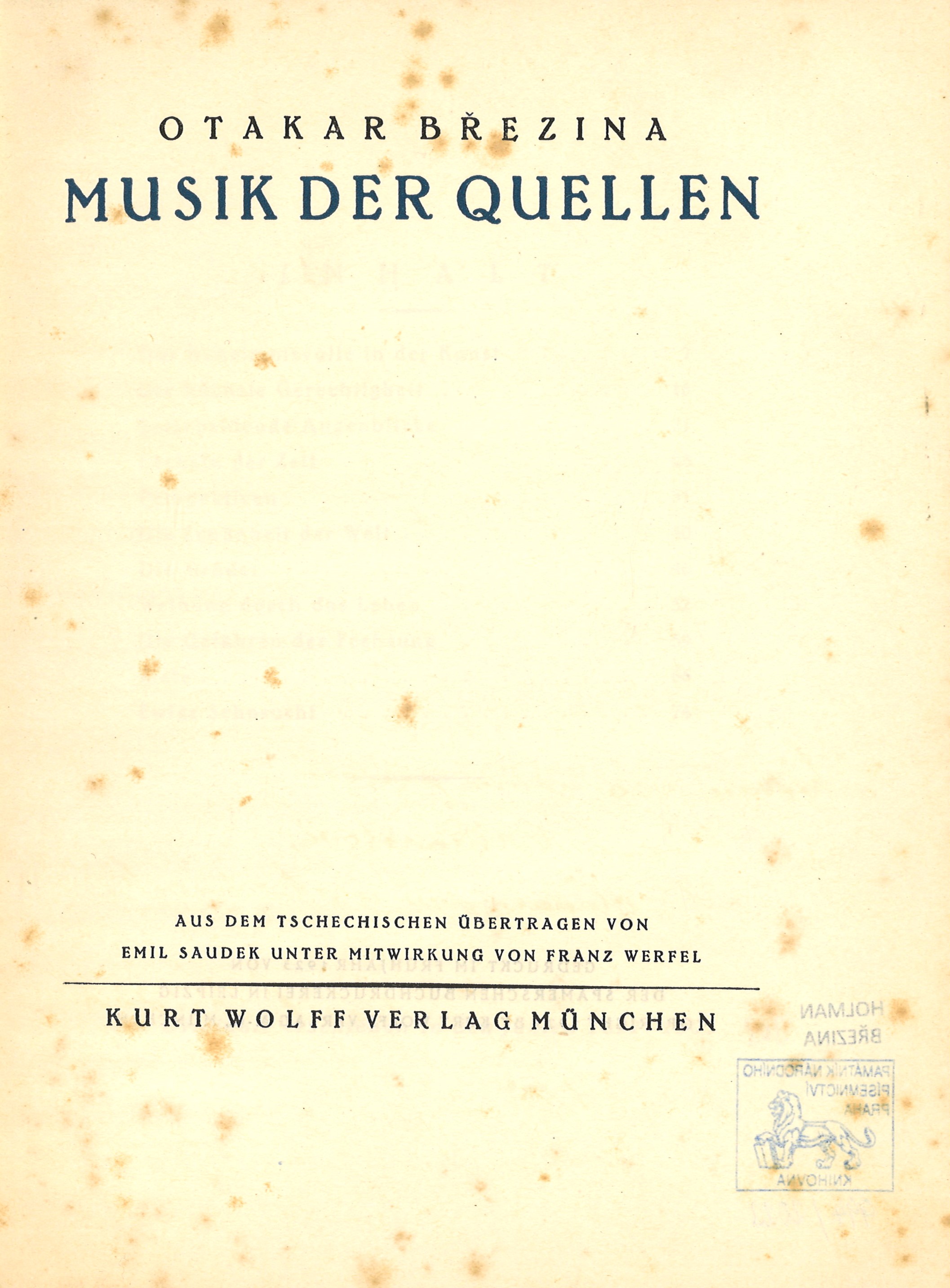 Názvové údaje Die oberitalienischen Maler der Renaissance : mit 42 Bildtafeln / Bernhard Berenson ; [berechtigte Übersetzung aus dem Englischen von Robert West ; Einbandzeichnung von Emil Preetorius] Osobní jméno Berenson, Bernard, 1865-1959 (Autor) Další autoři West, Robert, 1875- (Překladatel) Preetorius, Emil, 1883-1973 (Výtvarník vazby) Korp. Universitätbuchdruckerei C. Wolf & Sohn (München, Německo) (Tiskař) Meisenbach, Riffarth & Co. (Berlin, Německo) (Tiskař obrazu) Kurt Wolff Verlag (Nakladatel, vydavatel) Nakladatel München : Kurt Wolff Verlag, 1925 Výrobce (Wolf & Sohn) Rozsah 247 s., [42] l. obr. příl. : il. Klíčová slova německá literatura * výtvarné umění * výtvarná díla * italské umění * italští umělci * dějiny umění * malířství * Itálie * renesance * renesanční malířství * renesanční umění Počet ex. 1, z toho volných 1 Druh dok. monografie Signatura KaG IV B 80 Názvové údaje Lieder eines schlesischen Bergmanns / Petr Bezruč ; aus dem Tschechischen übersetzt von Rudolf Fuchs Osobní jméno Bezruč, Petr, 1867-1958 (Autor) Další autoři Fuchs, Rudolf, 1890-1942 (Překladatel) (Autor úvodu atd.) Korp. Kurt Wolff Verlag (Nakladatel, vydavatel) Bernhard Tauchnitz Verlag (Tiskař) Nakladatel München : Kurt Wolff Verlag, 1926 Výrobce Bernhard Tauchnitz) Rozsah 65, [3] s. ; 23,5 x 16 cm ; 8° Klíčová slova česká literatura * česká poezie * Slezsko * horníci * sociální poezie * stol. 20., léta 20. Počet ex. 1, z toho volných 1 Druh dok. monografie Signatura KaG XVI B2 312 Názvové údaje Rëubeni : Fürst der Juden : ein Renaissanceroman / Max Brod ; [Einbandzeichnung von Emil Preetorius] Osobní jméno Brod, Max, 1884-1968 (Autor) Další autoři Preetorius, Emil, 1883-1973 (Výtvarník vazby) (Autor obálky) Korp. Kurt Wolff Verlag (Nakladatel, vydavatel) Spamerschen Buchdruckerei (tiskárna) (Tiskař) Nakladatel Leipzig : Kurt Wolff Verlag, 1926 Výrobce ([Spamersche Buchdruckerei]) Rozsah 523 s. Klíčová slova německá literatura * pražská německá literatura * německá próza * román * historické romány * historický román Počet ex. 1, z toho volných 1 Druh dok. monografie Signatura VHB 3271 Názvové údaje Rëubeni : Fürst der Juden : ein Renaissanceroman / Max Brod ; [Einbandzeichnung von Emil Preetorius] Osobní jméno Brod, Max, 1884-1968 (Autor) Další autoři Preetorius, Emil, 1883-1973 (Výtvarník vazby) (Autor obálky) Korp. Kurt Wolff Verlag (Nakladatel, vydavatel) Spamerschen Buchdruckerei (tiskárna) (Tiskař) Nakladatel Leipzig : Kurt Wolff Verlag, 1925 Výrobce ([Spamersche Buchdruckerei]) Rozsah 523 s. Klíčová slova německá literatura * pražská německá literatura * německá próza * román * historické romány * historický román Počet ex. 1, z toho volných 1 Druh dok. monografie Signatura VHB 3890 Názvové údaje Tycho Brahes Weg zu Gott : ein Roman / von Max Brod Osobní jméno Brod, Max, 1884-1968 (Autor) Další autoři Durlín, Viktor (Dárce) Korp. Kurt Wolff Verlag (Nakladatel, vydavatel) Nakladatel Leipzig : Kurt Wolff Verlag, 1916 Rozsah 425 s. Klíčová slova německá literatura * pražská německá literatura * německá próza * román * historické romány * historický román Počet ex. 1, z toho volných 1 Druh dok. monografie Signatura KaG XLVII B 1 Názvové údaje Tycho Brahes Weg zu Gott : ein Roman / von Max Brod Osobní jméno Brod, Max, 1884-1968 (Autor) Další autoři Perger, Anna (Autor podpisu) (Dřívější majitel) Korp. Kurt Wolff Verlag (Nakladatel, vydavatel) Hesse & Becker (Leipzig, Německo) (Tiskař) Nakladatel Leipzig : Kurt Wolff Verlag, 1916 Výrobce (Hesse & Becker) Rozsah 425 s. Klíčová slova německá literatura * pražská německá literatura * německá próza * román * historické romány * historický román Počet ex. 1, z toho volných 1 Druh dok. monografie Signatura VHB 3272 Názvové údaje Über die Schönheit häßlicher Bilder : ein Vademecum für Romantiker unserer Zeit / Max Brod Osobní jméno Brod, Max, 1884-1968 (Autor) Další autoři Kurt Wolff Verlag (Nakladatel, vydavatel) Oscar Brandstetter Verlag (Tiskař) Nakladatel Leipzig : Kurt Wolff Verlag, 1913 Výrobce (Oskar Brandstetter) Rozsah [2], 213, [3] s. ; 19,5 x 13,5 cm ; 8° Klíčová slova německá literatura * německá próza * židovská literatura * úvahy * kritika * pojednání * stol. 20., léta 10. * r. 1913 Počet ex. 2, z toho volných 2 Druh dok. monografie Signatura KaG XXV A 30, KaG XLII E2 2 Názvové údaje Musik der Quellen / Otakar Březina ; aus dem Tschechischen übertragen von Emil Saudek unter Mitwirkung von Franz Werfel Osobní jméno Březina, Otokar, 1868-1929 (Autor) Další autoři Saudek, Emil, 1876-1941 (Překladatel) (Dedikátor) (Autor podpisu) Werfel, Franz, 1890-1945 (Překladatel) Olbracht, Ivan, 1882-1952 (Dedikant) Korp. Kurt Wolff Verlag (Nakladatel, vydavatel) Spamerschen Buchdruckerei (tiskárna) (Tiskař) Nakladatel München : Kurt Wolff Verlag, 1923 Výrobce In Lepzig : gedruckt von der Spamerschen Buchdruckerei Rozsah 79 stran ; 25,5 cm Klíčová slova česká próza * filozofie umění * symbolismus (literatura) * idealismus * eseje Počet ex. 3, z toho volných 3 Druh dok. monografie Signatura M 217 b 42, Holman-Březina 0303, Holman-Březina 0304 Názvové údaje Die Geschichte von Ulenspiegel und Lamme Goedzak und ihren heldenmässigen, fröhlichen und glorreichen Abenteuern im Lande Flandern und anderwärts / Charles de Coster ; deutsch von Karl Wolfskehl ; mit holzschnitten von Frans Masereel. Zweiter Band Osobní jméno De Coster, Charles Théodore Henri, 1827-1879 (Autor) Další autoři Masereel, Frans, 1889-1972 (Ilustrátor) Wolfskehl, Karl, 1869-1948 (Překladatel) Korp. Kurt Wolff Verlag (Nakladatel, vydavatel) Nakladatel München : Kurt Wolf Verlag, 1926 Rozsah 534 s. : il. Klíčová slova německá literatura * prózy * německá próza * dobrodružné příběhy Počet