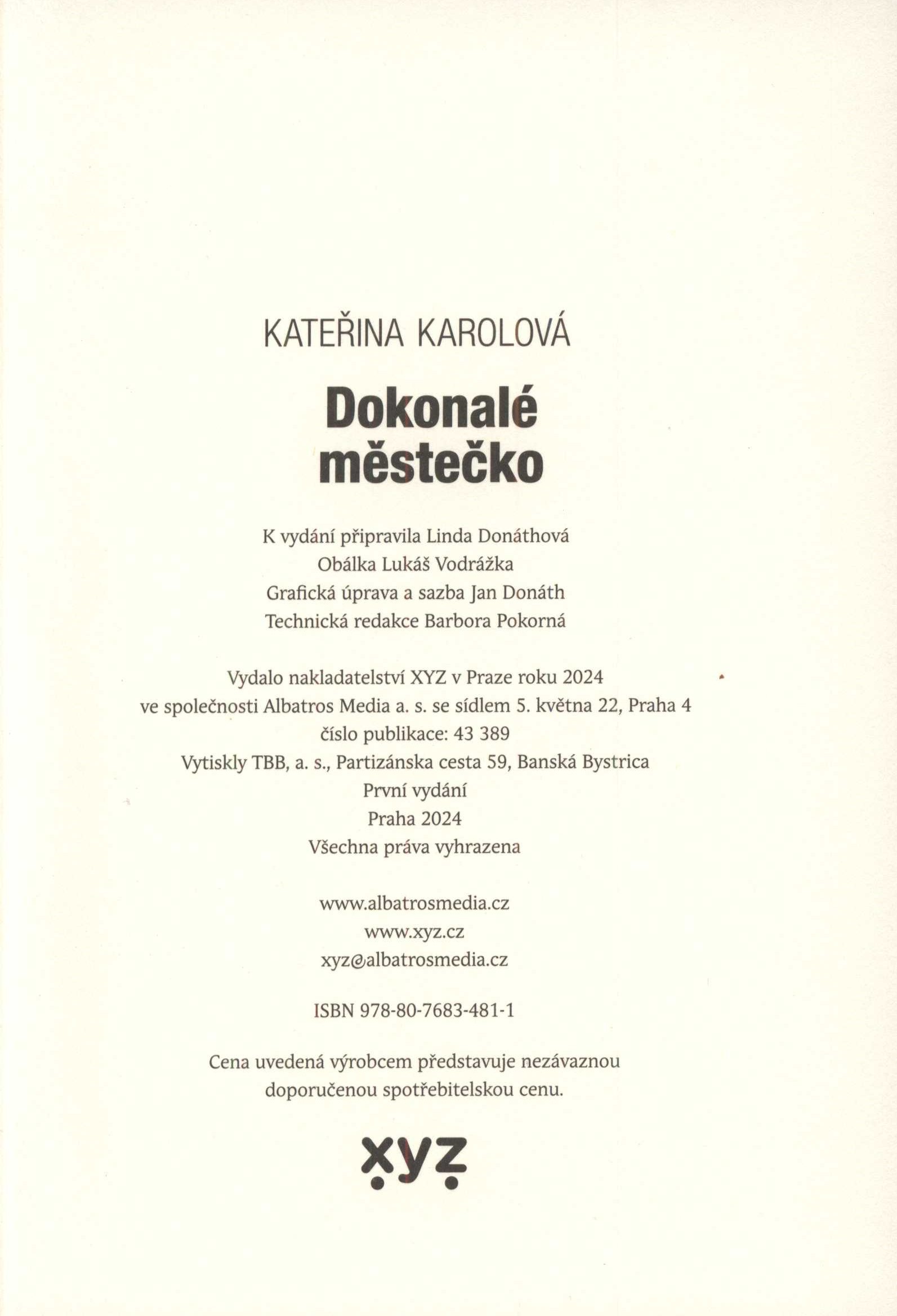 Názvové údaje Dokonalé městečko / Kateřina Karolová ; k vydání připravila Linda Donáthová ; obálka Lukáš Vodrážka ; grafická úprava a sazba Jan Donáth Osobní jméno Karolová, Kateřina, 1981- (Autor) Další autoři Donáthová, Linda, 1984- (Editor) Vodrážka, Lukáš (Autor obálky) Donáth, Jan, 1979- (Knižní grafik) (Sazeč) Korp. XYZ (nakladatelství) (Nakladatel, vydavatel) Tlačiareň BB (tiskárna) (Tiskař) Nakladatel V Praze : XYZ, 2024 Výrobce Banská Bystrica : TBB, a.s. Rozsah 240 stran ; 21,5 cm Klíčová slova česká próza * český román * thriller Počet ex. 1, z toho volných 1 Druh dok. monografie Signatura LITb 02196 Názvové údaje Ve výslužbě. Smrt na vsi / Martin Goffa ; obálka Lukáš vodrážka Osobní jméno Goffa, Martin, 1973- (Autor) Další autoři Vodrážka, Lukáš (Autor obálky) Korp. Mladá fronta (nakladatelství) (Nakladatel, vydavatel) Tlačiareň BB (tiskárna) (Tiskař) Nakladatel V Praze : Mladá fronta, 2025 Výrobce Banská Bystrica : TBB, a.s. Rozsah 190 stran ; 21 cm Klíčová slova česká próza * český román * detektivní román Počet ex. 1, z toho volných 1 Druh dok. monografie Signatura LITb 02632 Názvové údaje Ve výslužbě. Zmizelá, aneb, První poslední případ / Martin Goffa ; obálka Lukáš Vodrážka Osobní jméno Goffa, Martin, 1973- (Autor) Další autoři Vodrážka, Lukáš (Autor obálky) Korp. Mladá fronta (nakladatelství) (Nakladatel, vydavatel) Finidr (tiskárna) (Tiskař) Nakladatel V Praze : Mladá fronta, 2024 Výrobce Český Těšín : FINIDR, s.r.o. Rozsah 187 stran ; 21 cm Klíčová slova česká literatura * próza * detektivní román Počet ex. 1, z toho volných 1 Druh dok. monografie Signatura LITb 02481 Názvové údaje Všechno se v dobré obrátí / Adam Suchý ; obálka Lukáš Vodrážka Osobní jméno Suchý, Adam, 1974- (Autor) Další autoři Vodrážka, Lukáš (Autor obálky) Korp. XYZ (nakladatelství) (Nakladatel, vydavatel) Finidr (tiskárna) (Tiskař) Nakladatel V Praze : XYZ, 2022 Výrobce Český Těšín : FINIDR, s.r.o. Rozsah 270 stran ; 22 cm Klíčová slova česká literatura * próza * satirický román * osobní zkušenosti * Československo * stol. 20., léta 90. Počet ex. 1, z toho volných 1 Druh dok. monografie Signatura LITb 01726
