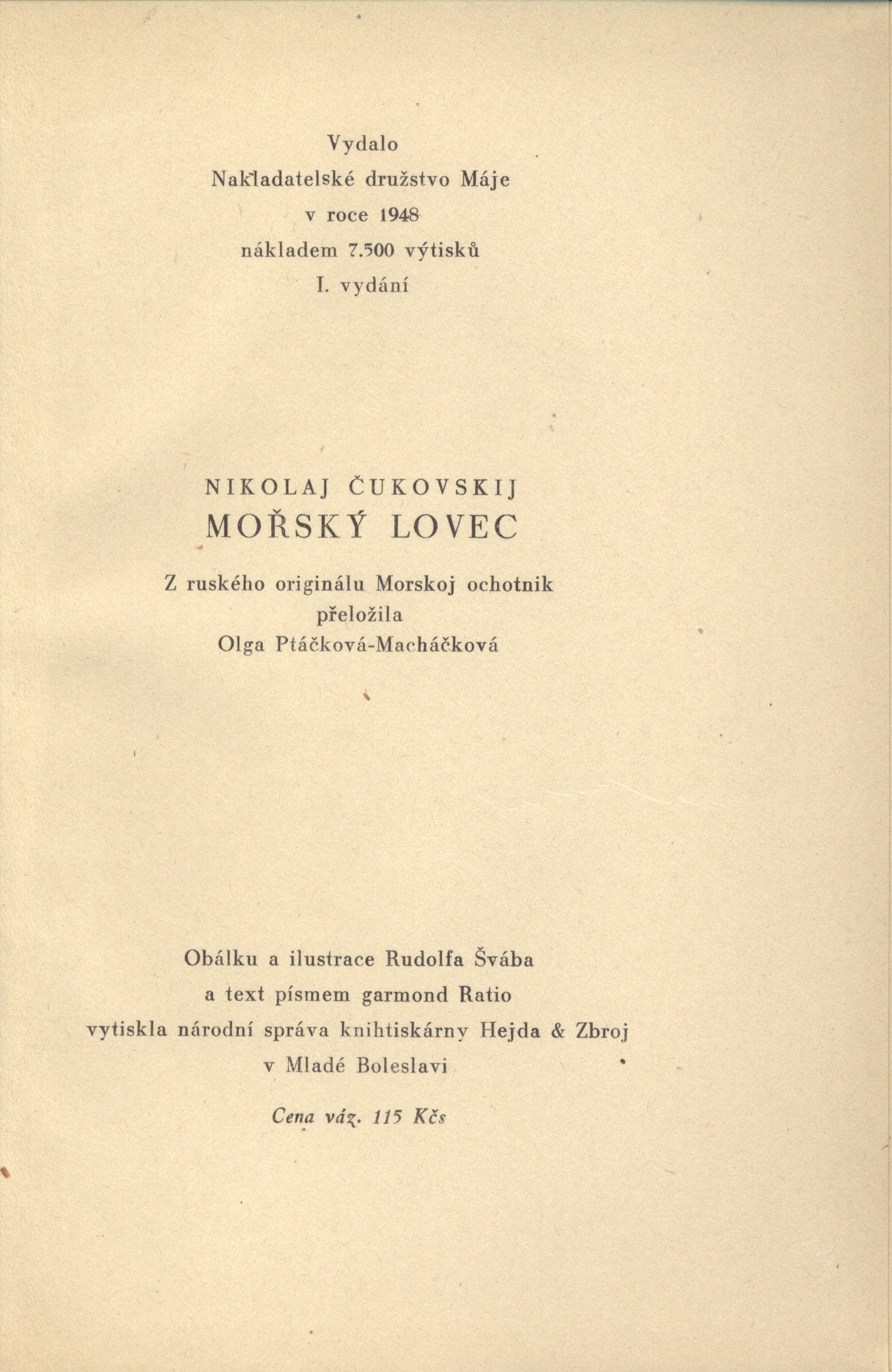 Názvové údaje Nový epochální výlet pana Broučka tentokrát do 15. století / Svatopluk Čech ; [text k vydání připravil a vysvětlivkami opatřil Antonín Procházka ; doslov napsal Josef Brambora ; kresby, obálka a grafická úprava od Rudolfa Švába] Osobní jméno Čech, Svatopluk, 1846-1908 (Autor) Další autoři Brambora, Josef, 1904-1980 (Autor doslovu, tiráže atd.) Procházka, Antonín, 1885-1968 (Editor) Šváb, Rudolf, 1909-1989 (Ilustrátor) (Autor obálky) (Knižní grafik) Nakladatel Praha : Státní pedagogické nakladatelství, 1957 Výrobce Ostravské tiskárny 08) Rozsah 205 s. ; 8° Klíčová slova česká próza * historický román * husitství * Praha (Česko) * stol. 15. * měšťanstvo * stol. 19. * fantasticko-satirický román Počet ex. 1, z toho volných 1 Druh dok. monografie Signatura C12b 10784 Názvové údaje Výlety pana Broučka / Svatopluk Čech ; ilustroval Ruda Šváb ; [k vydání připravil, poznámky a slovníček sestavil Josef Špičák ; obálka, vazba, ilustrace a grafická úprava Rudy Švába] Osobní jméno Čech, Svatopluk, 1846-1908 (Autor) Další autoři Čech, Svatopluk, 1846-1908. Pravý výlet pana Broučka do Měsíce Čech, Svatopluk, 1846-1908. Nový epochální výlet pana Broučka, tentokrát do patnáctého století Šváb, Rudolf, 1909-1989 (Ilustrátor) (Autor obálky) (Výtvarník vazby) (Knižní grafik) Špičák, Josef, 1918-1989 (Editor) (Autor komentáře textu) Korp. Melantrich (nakladatelství) (Nakladatel, vydavatel) Nakladatel Praha : Melantrich, 1952 Rozsah 309 s. : il., ukázky faksimile Čechova rukopisu ; 22 cm Klíčová slova česká literatura * česká próza * satirická próza Počet ex. 1, z toho volných 1 Druh dok. monografie Signatura MEL 1321 Názvové údaje Mořský lovec / Nikolaj Čukovskij ; [z ruského originálu ...] přeložila Olga Ptáčková-Macháčková ; obálka a ilustrace Rudolfa Švába] Osobní jméno Čukovskij, Nikolaj Kornejevič, 1904-1965 (Autor) Další autoři Ptáčková-Macháčková, Olga, 1906-1992 (Překladatel) Šváb, Rudolf, 1909-1989 (Autor obálky) (Ilustrátor) Korp. Nakladatelské družstvo Máje (Nakladatel, vydavatel) Hejda a Zbroj (tiskárna, nakladatelství) (Tiskař) Nakladatel V Praze : Nakladatelské družstvo Máje, 1948 Výrobce národní správa knihtiskárny Hejda & Zbroj) Rozsah 117 s. : il. ; 22 cm Klíčová slova ruská literatura * próza * překlad * literatura pro děti * ilustrované knihy Počet ex. 1, z toho volných 1 Druh dok. monografie Signatura Máj 065 Názvové údaje Amaranta : deník tragické lásky / Gabriele d'Annunzio ; z italštiny přeložila Marie Votrubová-Haunerová ; graficky upravil Rudolf Šváb Osobní jméno D'Annunzio, Gabriele, 1863-1938 (Autor) Další autoři Votrubová-Haunerová, Marie, 1878-1957 (Překladatel) Šváb, Rudolf, 1909-1989 (Knižní grafik) Blasi, Jolanda de (Autor úvodu atd.) Korp. Grafia (tiskárna, nakladatelství) (Tiskař) Čin - tiskové a nakladatelské družstvo československých legionářů (Nakladatel, vydavatel) Nakladatel Praha : Čin, 1943 Výrobce Grafia Rozsah 218 stran Klíčová slova italská literatura * próza * román * deníková forma * dekadence Počet ex. 2, z toho volných 2 Druh dok. monografie Signatura KaG XXXIX B 7, P 45 c 13 Názvové údaje Dva z Tókja / Futabatei Šimei [pseud.] ; z japonštiny přeložila [a doslov Futabatei Šimei a realistický román napsala] Vlasta Hilská-Průšková Autor Futabatei Šimei, 1864-1909 (Autor) Další autoři Hilská, Vlasta, 1909-1968 (Překladatel) (Autor doslovu, tiráže atd.) Šváb, Rudolf, 1909-1989 (Grafický technik) Šaraku, Tošusai, 1770-1825 (Ilustrátor) Suzuki, Harunobu, 1724-1770 (Ilustrátor) Korp. Čin - tiskové a nakladatelské družstvo československých legionářů (Nakladatel, vydavatel) Nakladatel Praha : Čin, 1943 Výrobce (Grafia) Rozsah 351, [2] s. ; 8° Klíčová slova japonská literatura * próza * realistický román * Tokio * Japonsko * stol. 20. Počet ex. 1, z toho volných 1 Druh dok. monografie Signatura C12b 5885 Názvové údaje Zrcadlo ženy : biologie matky [Der Frauenspiegel. Eine Biologie der Mutter] / Heinz Graupner ; přeložil Bohumil Sekla ; [obálka, úprava, vazba Ruda Šváb] Osobní jméno Graupner, Heinz, 1906-1966 (Autor) Další autoři Sekla, Bohumil, 1901-1987 (Překladatel) Šváb, Rudolf, 1909-1989 (Autor obálky) (Grafický technik) Korp. Čin - tiskové a nakladatelské družstvo československých legionářů (Nakladatel, vydavatel) Knihtisk (Praha, Česko) (Tiskař) Nakladatel Praha : Čin, 1941 Výrobce (Knihtisk) Rozsah 220 - [VII] s. ; 8° Klíčová slova německá literatura * překlad * odborná literatura * lékařství * etika * gynekologie * mateřství * manželství * rodina * dítě * r. 1941 Počet ex. 1, z toho volných 1 Druh dok. monografie Signatura AVrbova 028 Názvové údaje Bandita Paťara a spol Osobní jméno Kaplický, Václav, 1895-1982 (Autor) Další autoři Šváb, Rudolf, 1909-1989 (Ilustrátor) Korp. Nakladatelství Albatros (Nakladatel, vydavatel) Nakladatel Praha : Albatros, 1969 Rozsah 280 s. : il. Klíčová slova česká próza * dobrodružný román * literatura pro děti a mládež Počet ex. 1, z toho volných 1 Druh dok. monografie Signatura P 117 b 5 Názvové údaje Královský souboj / Václav Kaplický ; il. Rudolf Šváb Osobní jméno Kaplický, Václav, 1895-1982 (Autor) Další autoři Šváb, Rudolf, 1909-1989 (Ilustrátor) Korp. Nakladatelství Albatros (Nakladatel, vydavatel) Tisk Brno (tiskárna) (Tiskař) Nakladatel Praha : Albatros, 1971 Výrobce Tisk 1) Rozsah 160, [3] s. : il. ; 8° Klíčová slova česká próza * historické romány Počet ex. 1, z toho volných 1 Druh dok. monografie Signatura P 126 b 8 Názvové údaje Modrá stuha : román / Bernhard Kellermann ; [přeložil z němčiny Bedřich Václavek] Osobní jméno Kellermann, Bernhard, 1879-1951 (Autor) Další autoři Václavek, B