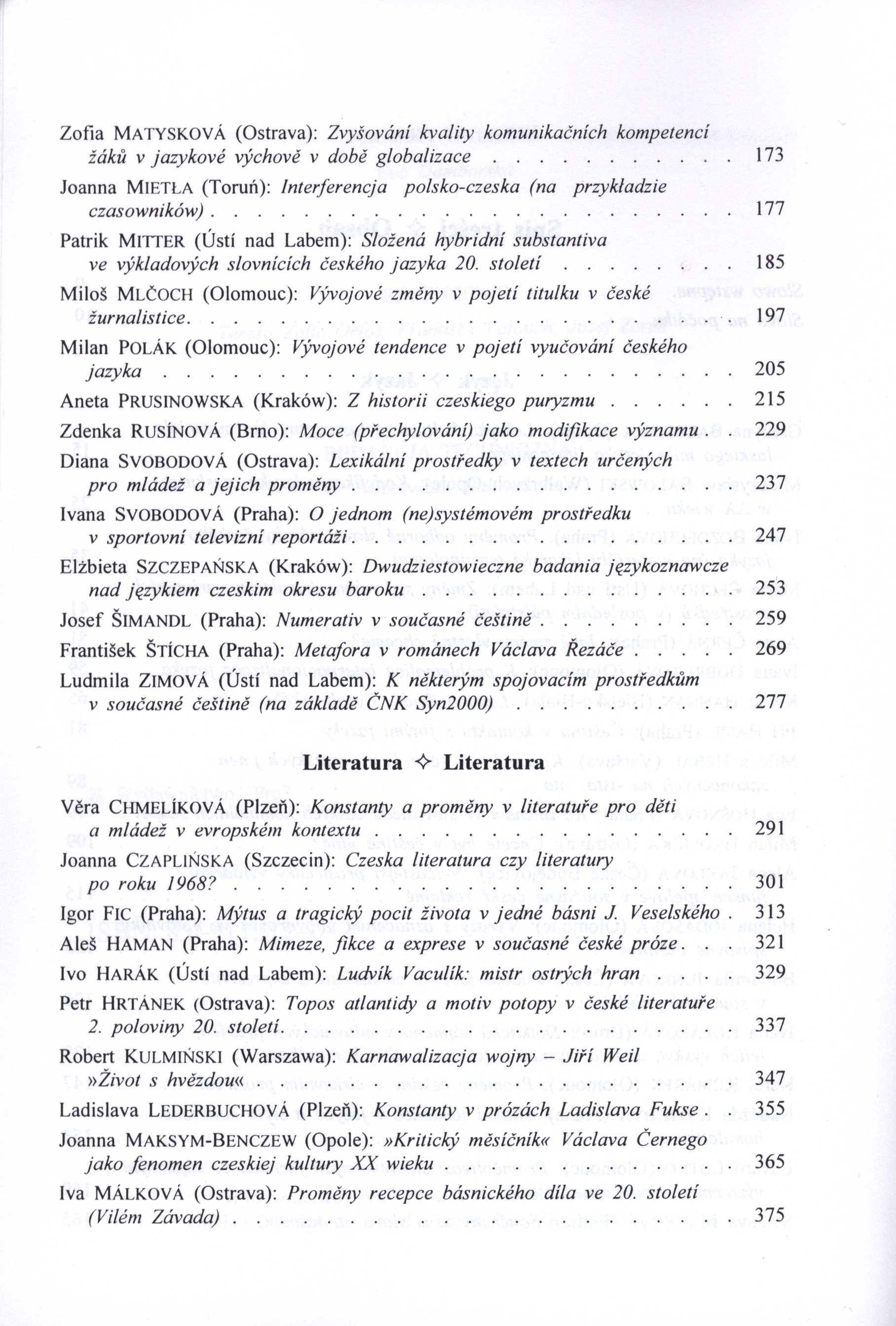 Názvové údaje Adam Mickiewicz a Slované : materiály z mezinárodní vědecké konference uskutečněné v Ostravě ve dnech 29.-30. listopadu 2005 u příležitosti 150. výročí úmrtí Adama Mickiewicze / vědecký redaktor Mieczysław Balowski Záhlaví-akce Adam Mickiewicz a Slované (2005 : Ostrava, Česko) Další autoři Balowski, Mieczysław, 1956- (Editor) Korp. Ostravská univerzita. Filozofická fakulta Uniwersytet im. Adama Mickiewicza w Poznaniu (univerzita) Vilniaus Pedagoginis universitetas Nakladatel Ostrava : Ostravská univerzita, Filozofická fakulta, 2008 Rozsah 347 s. : barev. il. ; 21 cm Osobní hesla Mickiewicz, Adam, 1798-1855 - polský básník Klíčová slova polští spisovatelé * polská literatura * stol. 19. * sborníky z konferencí Počet ex. 1, z toho volných 1 Druh dok. monografie Signatura C12b 11599 Názvové údaje Język i literatura czeska u schyłku XX wieku = Český jazyk a literatura na sklonku XX. století / redakcja naukowa Mieczysław Balowski a Jiří Svoboda Záhlaví-akce Český jazyk a literatura na sklonku XX. století (2001 : Ostrava Wałbrzych, Polsko) Další autoři Svoboda, Jiří, 1931- (Editor) Balowski, Mieczysław, 1956- (Editor) Korp. Ostravská univerzita. Filozofická fakulta (Nakladatel, vydavatel) Nakladatel Ostrava : Ostravská univerzita ; Wałbrzych : Państwowa wyższa szkoła zawodowa, 2001 Rozsah 408 s. ; 24 cm Klíčová slova česká literatura * český jazyk * sborníky * sborníky z konferencí Počet ex. 1, z toho volných 1 Druh dok. monografie Signatura R&AHamanovi 0807 Názvové údaje Język i literatura czeska w interakcji : tom referatów z międzynarodowej konferencji naukowej, Racibórz, 29-30 września 2005 r = Český jazyk a literatura v interakci : sborník referátů z mezinárodní konference konané 29.-30. září 2005 v Ratiboři / redakcja naukowa Mieczysław Balowski i Jiří Svoboda Záhlaví-akce Język i literatura czeska w interakcji (2005 : Ratiboř, Polsko) Další autoři Balowski, Mieczysław, 1956- (Editor) Svoboda, Jiří, 1931- (Editor) Korp. Państwowa Wyższa Szkoła Zawodowa w Raciborzu (Nakladatel, vydavatel) Nakladatel Racibórz : Państwowa Wyższa Szkoła Zawodowa ; Prochowice : "Pro", 2006 Rozsah 406 s. ; 21 cm Klíčová slova český jazyk * současná čeština * filologie * česká literatura * filologické studie * lingvoliterární studie * literárněvědné studie * sborníky z konferencí Počet ex. 2, z toho volných 2 Druh dok. monografie Signatura C12c 2780, R&AHamanovi 0793 Názvové údaje Stałość i zmienność w języku i literaturze czeskiej XX wieku : tom referatów z międzynarodowej konferencji naukowej Wałbrzych, 15 - 16 maja 2003 r = Konstanty a proměny v českém jazyce a literatuře XX. století : sborník referátů z mezinárodní konference konané 15. - 16. května 2003 ve Wałbrzychu / redakcja naukowa Mieczysław Balowski a Jiří Svoboda Záhlaví-akce Stałość i zmienność w języku i literaturze czeskiej XX wieku (2003 : Wałbrzych, Polsko) Další autoři Svoboda, Jiří, 1931- (Editor) Balowski, Mieczysław, 1956- (Editor) Korp. Ostravská univerzita. Filozofická fakulta (Nakladatel, vydavatel) Nakladatel Wałbrzych : Państwowa Wyższa Szkoła Zawodowa im. Angelusa Silesiusa ; Ostrava : Ostravská univerzita, 2004 Rozsah 470 s. ; 24 cm Klíčová slova filologie * sborníky * sborníky z konferencí * česká lingvistika * česká literatura * vývoj jazyka Počet ex. 1, z toho volných 1 Druh dok. monografie Signatura R&AHamanovi 0789 Názvové údaje Język i literatura czeska w interakcji = Český jazyk a literatura v evropském kulturním kontextu / redakcja naukowa Mieczysław Balowski i Jiří Svoboda Další autoři Balowski, Mieczysław, 1956- (Editor) Svoboda, Jiří, 1931- (Editor) Korp. Państwowa Wyższa Szkoła Zawodowa w Raciborzu (Nakladatel, vydavatel) Nakladatel Racibórz : Państwowa Wyższa Szkoła Zawodowa, 2008 Rozsah 507 s. Klíčová slova český jazyk * současná čeština * filologie * česká literatura * filologické studie * lingvoliterární studie * literárněvědné studie * sborníky z konferencí Počet ex. 1, z toho volných 1 Druh dok. monografie Signatura R&AHamanovi 0792