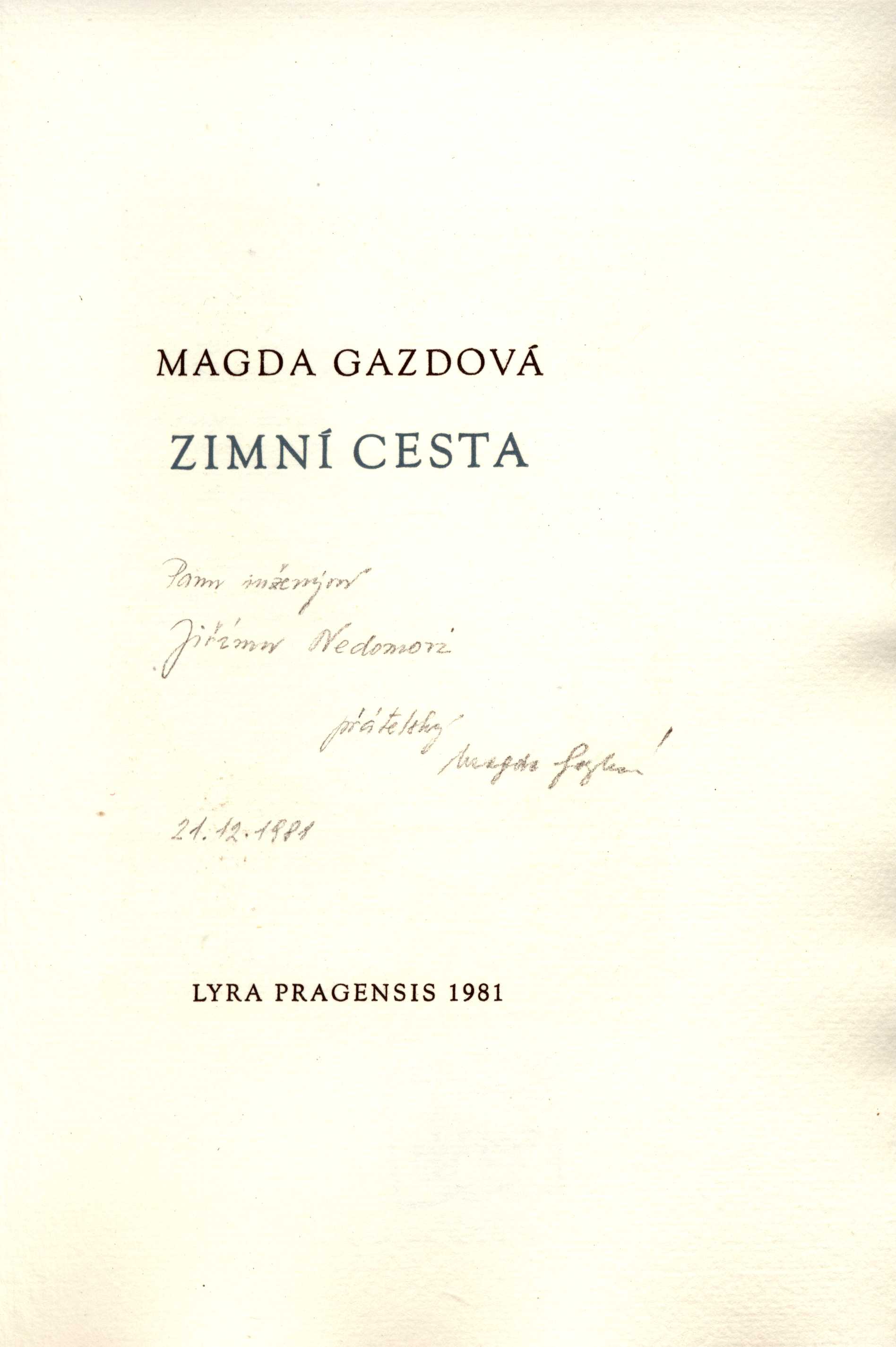 Názvové údaje Pásmo / Guillaume Apollinaire ; Jazyk. spolupr. Aleš Pohorský ; Pozn. naps. Jiří Žáček ; Orig. barev. litografiemi vyzdob. Vladimír Suchánek ; Graficky upravil Milan Hegar ; Z franc. přel. Karel Sýs Osobní jméno Apollinaire, Guillaume, 1880-1918 (Autor) Další autoři Pohorský, Aleš, 1953- (Překladatel) Žáček, Jiří, 1945- (Autor komentáře) Suchánek, Vladimír, 1933-2021 (Ilustrátor) Hegar, Milan, 1921-1987 (Grafický technik) Beneš, Vladimír, 1932-2018 (Editor) Sýs, Karel, 1946-2024 (Překladatel) Nakladatel Praha : Supraphon, 1982 Výrobce Stráž) Rozsah 21 s. : il Klíčová slova francouzská literatura * poezie Počet ex. 1, z toho volných 1 Druh dok. monografie Signatura NK/83 0009 Názvové údaje Neznámé veledílo / Honoré de Balzac ; Z franc. přel. Otto Libertin ; Pěti kombin. technikami doprovodil Jiří Anderle ; Pozn. Jiří Kutina ; Graf. upr. Vladimír Viener Osobní jméno Balzac, Honoré de, 1799-1850 (Autor) Další autoři Libertin, Otto (Překladatel) Anderle, Jiří, 1936- (Ilustrátor) Kutina, Jiří, 1926- (Autor komentáře) Viener, Vladimír, 1935-2005 (Grafický technik) Beneš, Vladimír, 1932-2018 (Editor) Nakladatel Praha : Supraphon, 1986 Výrobce Stráž) Rozsah 44 s. : il Klíčová slova francouzská literatura * próza * povídky Počet ex. 1, z toho volných 1 Druh dok. monografie Signatura NK/87 0004 Názvové údaje Maryčka Magdonova / Petr Bezruč ; Třemi kombin. technikami doprovodil Ladislav Kuklík ; Pozn. Otakar Roubínek ; Graf. upr. Vladimír Viener Osobní jméno Bezruč, Petr, 1867-1958 (Autor) Další autoři Kuklík, Ladislav, 1947- (Ilustrátor) Roubínek, Otakar, 1934-1992 (Autor komentáře) Viener, Vladimír, 1935-2005 (Grafický technik) Beneš, Vladimír, 1932-2018 (Editor) Nakladatel Praha : Supraphon, 1988 Výrobce Stráž) Rozsah 25 s. : il Klíčová slova česká literatura * poezie Počet ex. 1, z toho volných 1 Druh dok. monografie Signatura NK/89 0048 Názvové údaje Bolest a světlo : Z dopisů Anně Pammrové 1889-1905 / Otokar Březina ; Vybrala, sest. a pozn. naps. Věra Šrámková-Mikešová ; Sedmi dřevoryty doprovází Vladimír Komárek ; Graf. upr. Vladimír Viener Osobní jméno Březina, Otokar, 1868-1929 (Autor) Další autoři Šrámková-Mikešová, Věra Komárek, Vladimír, 1928-2002 (Ilustrátor) Viener, Vladimír, 1935-2005 (Grafický technik) Beneš, Vladimír, 1932-2018 (Editor) Nakladatel Praha : Supraphon, 1988 Výrobce Stráž) Rozsah 51 s. : il Osobní hesla Šrámková-Mikešová, Věra - editorka korespondence O. Březiny A. Pammrové * Mikešová, Věra - autorka výboru Bolest a světlo Klíčová slova česká literatura * dopisy * Březina O. * Pammrová A. Počet ex. 1, z toho volných 1 Druh dok. monografie Signatura NK/89 0021 Názvové údaje Otvírání studánek / Miloslav Bureš ; Sedmi barev. kombin. technikami vyzdob. Anna Khunová ; Pozn. Jiří Žáček ; Graf. upr. Vladimír Viener Osobní jméno Bureš, Miloslav, 1909-1968 (Autor) Další autoři Khunová, Anna, 1946- (Ilustrátor) Žáček, Jiří, 1945- (Autor komentáře) Viener, Vladimír, 1935-2005 (Grafický technik) Beneš, Vladimír, 1932-2018 (Editor) Nakladatel Praha : Supraphon, 1984 Výrobce Stráž) Rozsah 35 s. : il Klíčová slova česká literatura * poezie Počet ex. 1, z toho volných 1 Druh dok. monografie Signatura NK/84 0035 Názvové údaje Má vlast : Šest orig. barev. kombin. technik inspirovaných stejnojmenným dílem Bedřicha Smetany / Ilustr. Karel Demel ; Úvod. text o Smetanově díle a pozn. k Demlovu cyklu naps. Jaroslav Šeda ; Graf. upr. Vladimír Viener Osobní jméno Demel, Karel, 1942-2024 (Ilustrátor) Další autoři Smetana, Bedřich, 1824-1884 (Autor) Šeda, Jaroslav, 1925-1993 Viener, Vladimír, 1935-2005 (Grafický technik) Beneš, Vladimír, 1932-2018 (Editor) Nakladatel Praha : Supraphon, 1984 Výrobce Stráž) Rozsah Nestr., obr Klíčová slova česká literatura * Smetana B. * Má vlast * výtvarné zpracování * grafika * grafické listy Počet ex. 1, z toho volných 1 Druh dok. monografie Signatura NK/84 0001 Názvové údaje Babí hodina / Viola Fischerová ; [třídílnou básnickou skladbu o šedesáti dvou básních] šesti [barevnými] lepty doprovodila Adriena Šimotová ; [slovo o autorkách napsali Antonín Brousek a Jiří Šetlík ; k vydání připravili Marta Železná a Vladimír Beneš ; grafická úprava Aleš Krejča ; barevné lepty vytiskli Pavel a Milan Dřímalovi ; knihařsky zpracovali Lubomír a Miroslava Krupkovi] Osobní jméno Fischerová, Viola, 1935-2010 (Autor) Další autoři Šimotová, Adriena, 1926-2014 (Ilustrátor) Krupka, Lubomír, 1953- (Vazač) Krupková, Miroslava, 1953- (Vazač) Beneš, Vladimír, 1932-2018 (Editor) Brousek, Antonín, 1941-2013 (Autor úvodu atd.) Šetlík, Jiří, 1929-2023 (Autor úvodu atd.) Davouze, Marta, 1945-2018 (Editor) Dřímal, Milan, 1948- (Litograf) Dřímal, Pavel, 1943-2019 (Litograf) Krejča, Aleš, 1941- (Knižní grafik) Nakladatel Praha : Bonaventura : Nakladatelství Franze Kafky, 1993 Rozsah 92 s. : barev. il. ; 30 cm Klíčová slova česká poezie * básně * ilustrovaná publikace * bibliofilie Počet ex. 1, z toho volných 1 Druh dok. monografie Signatura Bbf V 0059 Názvové údaje Zimní cesta / Magda Gazdová ; [třemi originálními mědirytinami vyzdobil Karel Zeman ; poznámku napsal Jiří Kutina ; graficky upravil Arnošt Staněk ; o vydání pečoval Vladimír Beneš] Osobní jméno Gazdová, Magda (Autor) Další autoři Zeman, Karel, 1949- (Ilustrátor) Kutina, Jiří, 1926- (Autor úvodu atd.) Staněk, Arnošt (Knižní grafik) Beneš, Vladimír, 1932-2018 (Editor) Korp. Supraphon (hudební vydavatelství) (Nakladatel, vydavatel) Nakladatel Praha : Supraphon, 1981 Výrobce Tiskařské závody) Rozsah 27 s. : il. Klíčová slova česká poezie * básně Počet ex. 1, z toho volných 1 Druh dok. monografie Signatura Bbf IV 0056 Názv
