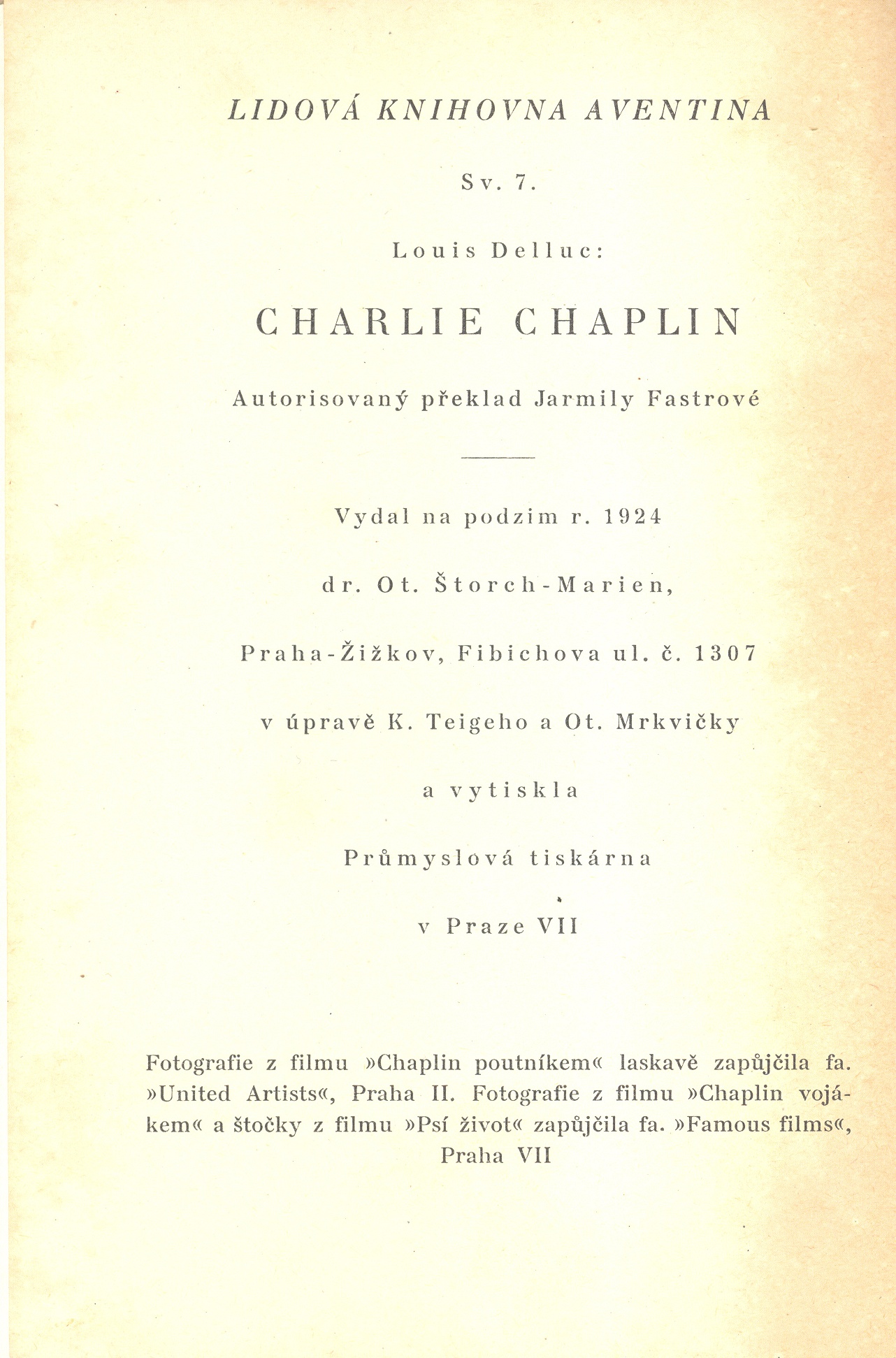 Názvové údaje Temný smích = Dark laughter : román / Sherwood Anderson ; autorisovaný překlad Jarmily Fastrové a Aloise Skoumala Osobní jméno Anderson, Sherwood, 1876-1941 (Autor) Další autoři Fastrová, Jarmila, 1899-1968 (Překladatel) Skoumal, Aloys, 1904-1988 (Překladatel) Holan, Vladimír, 1905-1980 (Dedikant) Nakladatel Praha : Václav Petr, 1927 Výrobce Choceň : Loutkář Rozsah 241 s. ; 19 cm Osobní hesla Holan, Vladimír, 1905-1980 - básník, prozaik, překladatel Klíčová slova česká literatura Počet ex. 1, z toho volných 1 Druh dok. monografie Signatura Holan 1336 Názvové údaje Sedící žena / Guillaume Apollinaire ; z francouzského originálu přeložila Jarmila Fastrová Osobní jméno Apollinaire, Guillaume, 1880-1918 (Autor) Další autoři Fastrová, Jarmila, (Překladatel) 1899-1968 Korp. Agentura Tip Š (nakladatelství) (Nakladatel, vydavatel) Nakladatel Praha : Agentura Tip Š, 1991 Rozsah 96 stran Klíčová slova francouzská próza * francouzský román Počet ex. 2, z toho volných 2 Druh dok. monografie Signatura M 209 h 75a, M 209 h 75 Názvové údaje Sedící žena / Guillaume Apollinaire ; přeložila Jarmila Fastrová ; obálku kreslil K. Teige a O. Mrkvička Osobní jméno Apollinaire, Guillaume, 1880-1918 (Autor) Další autoři Fastrová, Jarmila, 1899-1968 (Překladatel) Teige, Karel, 1900-1951 (Ilustrátor) Mrkvička, Otakar, 1898-1957 (Ilustrátor) Nakladatel Praha : Odeon, 1925 Rozsah 142 s. ; 20 cm Klíčová slova česká literatura Počet ex. 1, z toho volných 1 Druh dok. monografie Signatura Holan 129 Názvové údaje Sedící žena / Guillaume Apollinaire ; [přeložila Jar. Fastrová ; obálku kreslili K. Teige a O. Mrkvička] Osobní jméno Apollinaire, Guillaume, 1880-1918 (Autor) Další autoři Fastrová, Jarmila, 1899-1968 (Překladatel) Teige, Karel, 1900-1951 (Autor obálky) Mrkvička, Otakar, 1898-1957 (Autor obálky) Korp. Odeon, Jan Fromek (Praha) (Nakladatel, vydavatel) Průmyslová tiskárna v Praze (Tiskař) Nakladatel Praha : Odeon, Jan Fromek, 1925 Výrobce (vytiskla Průmyslová tiskárna v Praze) Rozsah 142, [2] s. ; 19,8 cm Klíčová slova francouzská literatura * próza * román * překlad Počet ex. 1, z toho volných 0 Druh dok. monografie Signatura P 97 c 36 Názvové údaje Cesta do Říma / Christopher Buckley ; Z angl. přel. Jarmila Fastrová ; S obál., vazbou a v úpr. Jaroslava Švába Osobní jméno Buckley, Christopher (Autor) Další autoři Fastrová, Jarmila, 1899-1968 (Překladatel) Šváb, Jaroslav, 1906-1999 (Grafický technik) Nakladatel Praha : Václav Petr, 1947 Rozsah 332 s., mp Klíčová slova anglická literatura * próza * reportáže * Itálie Počet ex. 2, z toho volných 2 Druh dok. monografie Signatura C12b 2407, LK P 110 a 38 Názvové údaje Snídaně u Tiffanyho / Truman Capote ; [z angl. přel. Jarmila Fastrová ; doslovem opatř. Igor Hájek ; ilustr. Karel Šejna ; typogr. Oldřich Hlavsa] Osobní jméno Capote, Truman, 1924-1984 (Autor) Další autoři Fastrová, Jarmila, 1899-1968 (Překladatel) Hájek, Igor, 1931-1995 (Autor doslovu, tiráže atd.) Šejna, Karel, 1944- (Ilustrátor) Hlavsa, Oldřich, 1909-1995 (Typograf) Nakladatel Praha : Československý spisovatel, 1969 Rozsah 105 s. : il. Klíčová slova americká literatura * próza * novela Počet ex. 1, z toho volných 1 Druh dok. monografie Signatura AČS 05934 Názvové údaje Žena : román / Helen Grace Carlisle ; [autorisované vydání v překladu Jarmily Fastrové ; obálku a vazbu navrhl J. Šváb] Osobní jméno Carlisle, Helen Grace, 1898-1968 (Autor) Další autoři Fastrová, Jarmila, 1899-1968 (Překladatel) Šváb, Jaroslav, 1906-1999 (Grafický technik) (Autor obálky) Korp. Václav Petr (nakladatelství) (Nakladatel, vydavatel) Müller a spol. (tiskárna) (Tiskař) Nakladatel Praha : Václav Petr, 1935 Výrobce Knihtiskárna Müller a spol.) Rozsah 236 s. Klíčová slova překladová literatura * americká literatura * román pro ženy * americká próza * světová beletrie * r. 1935 Počet ex. 1, z toho volných 1 Druh dok. monografie Signatura AVrbova 180 Názvové údaje Chaplin / Louis Delluc ; autorisovaný překlad Jarmily Fastrové Osobní jméno Delluc, Louis, 1890-1924 (Autor) Další autoři Fastrová, Jarmila, 1899-1968 (Překladatel) Teige, Karel, 1900-1951 (Knižní grafik) (Autor obálky) Mrkvička, Otakar, 1898-1957 (Knižní grafik) (Autor obálky) Šimsová, Růžena, 1899- (Autor podpisu) (Dřívější majitel) Korp. Dr. Ot. Štorch-Marien (nakladatelství) (Nakladatel, vydavatel) Průmyslová tiskárna v Praze (Tiskař) Nakladatel Praha : Dr. Ot. Štorch-Marien, 1924 Výrobce V Praze : Průmyslová tiskárna Rozsah 72 stran, 8 nečíslovaných stran obrazové přílohy : ilustrace ; 17 cm Osobní hesla Chaplin, Charlie, 1889-1977 - britský herec, režisér, producent Klíčová slova francouzská literatura * Delluc L. * pojednání * herectví * film * umělci * Chaplin Ch. * český překlad * Fastrová J. * r. 1924 * biografie Počet ex. 3, z toho volných 2 Druh dok. monografie Signatura MUK 1688, VMartínek 1296, AHO 0059 Názvové údaje Odtroubeno : [román] / Clifford Dowdey ; [přeložila Jarmila Fastrová ; úprava, obálka a vazba dle návrhu Jaroslava Švába] Osobní jméno Dowdey, Clifford, 1904-1979 (Autor) Další autoři Fastrová, Jarmila, 1899-1968 (Překladatel) Šváb, Jaroslav, 1906-1999 (Knižní grafik) (Autor obálky) (Výtvarník vazby) Korp. Václav Petr (nakladatelství) (Nakladatel, vydavatel) Nakladatel Praha : Václav Petr, 1940 Výrobce Osvěta) Rozsah 497 s. ; 8° Klíčová slova americká literatura * americká próza * román * historický román Počet ex. 1, z toho volných 1 Druh dok. monografie Signatura Hora II 81