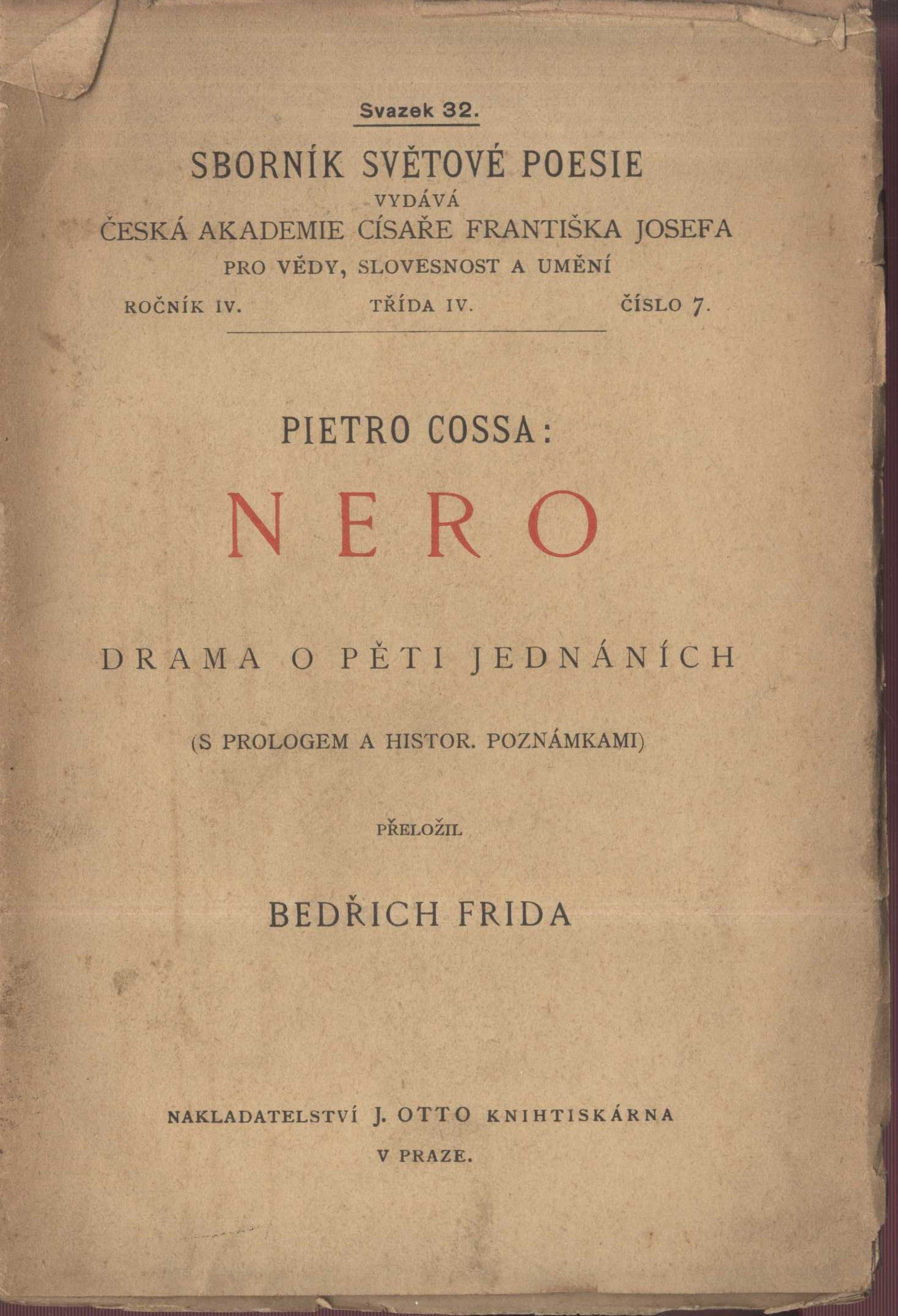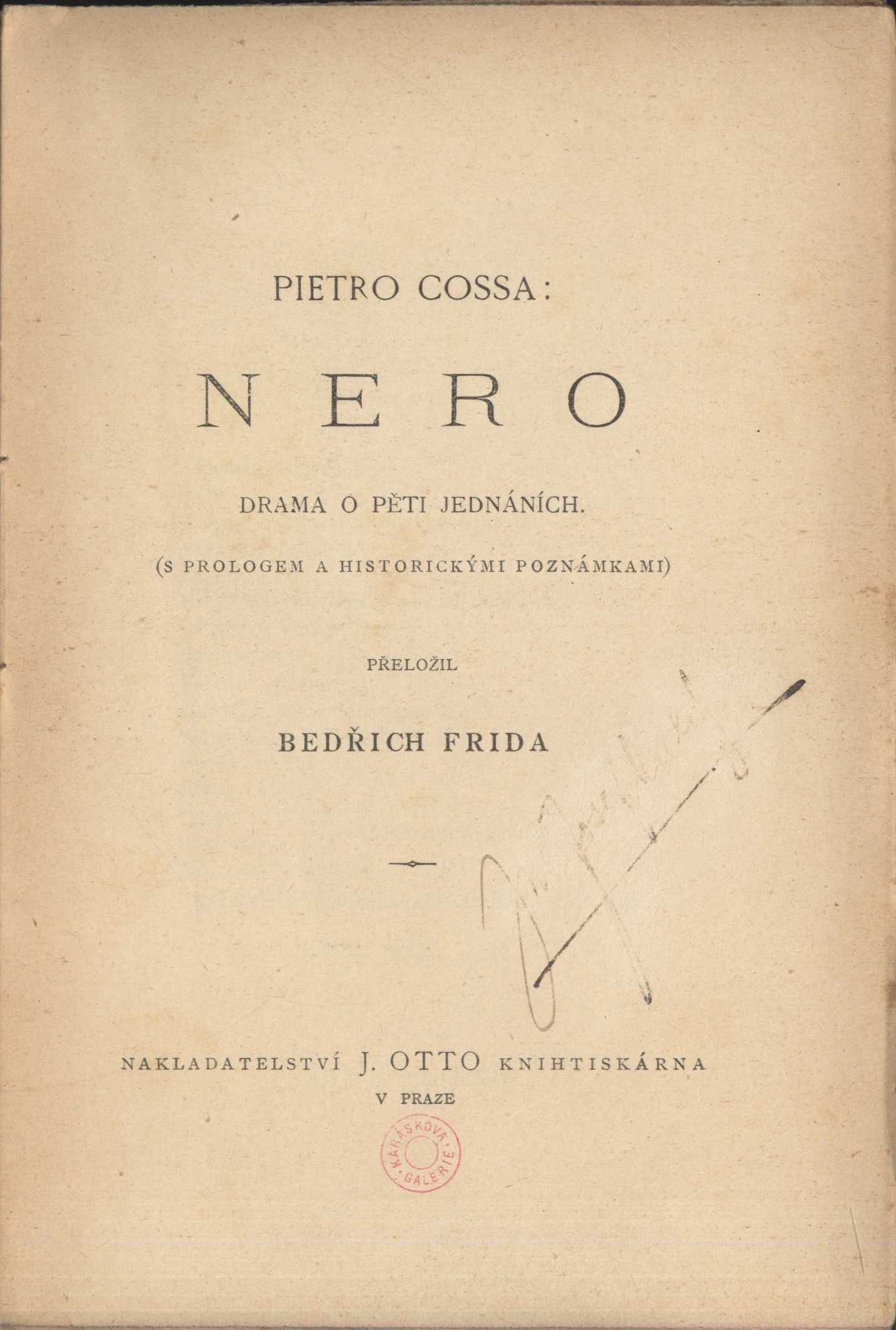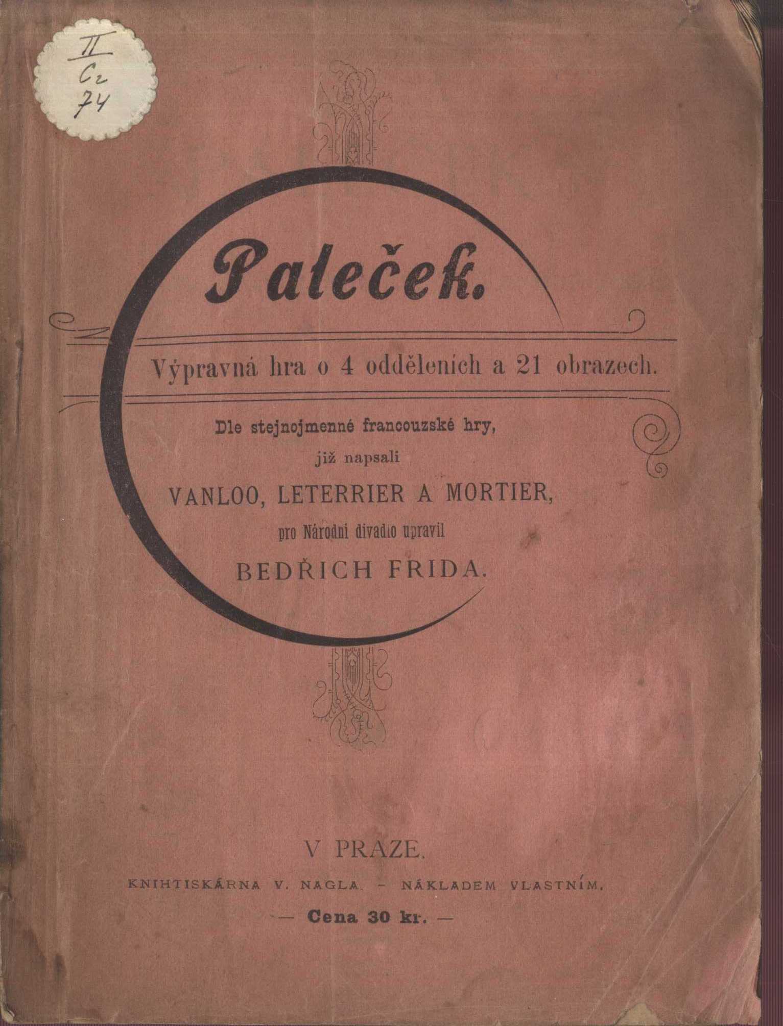 Názvové údaje Filip : tragedie o pěti jednáních / Vittorio Alfieri ; přeložil Bedřich Frida Osobní jméno Alfieri, Vittorio, 1749-1803 (Autor) Další autoři Frída, Bedřich, 1855-1918 (Překladatel) (Autor úvodu atd.) Korp. Nakladatelství Jan Otto (Nakladatel, vydavatel) Nakladatel V Praze : Nakladatelství J. Otto knihtiskárna, [1892] Rozsah 91 stran Klíčová slova italská literatura * italské divadlo * divadelní hra * tragédie Počet ex. 2, z toho volných 2 Druh dok. monografie Signatura KaG XLI G 211, VHB 1917 Názvové údaje Filip : tragedie o pěti jednáních / Vittorio Alfieri ; přeložil Bedřich Frida Osobní jméno Alfieri, Vittorio, 1749-1803 (Autor) Další autoři Frída, Bedřich, 1855-1918 (Překladatel) Korp. Nakladatelství Jan Otto (Nakladatel, vydavatel) Nakladatel Praha : J. Otto, [1892] Rozsah 148 stran Klíčová slova italská próza * italské drama * tragédie Počet ex. 3, z toho volných 3 Druh dok. monografie Signatura P 109 d 40, P 23 b 23/přív.l., P 92 f 18 Názvové údaje Filip : tragedie o pěti jednáních / Vittorio Alfieri ; přeložil Bedřich Frida Osobní jméno Alfieri, Vittorio, 1749-1803 (Autor) Další autoři Frída, Bedřich, 1855-1918 (Překladatel) Korp. Nakladatelství Jan Otto (Nakladatel, vydavatel) Nakladatel Praha : J. Otto, 1891 Rozsah 91 stran Klíčová slova italská próza * dramata * tragédie Počet ex. 1, z toho volných 1 Druh dok. monografie Signatura P 141 f 38 Názvové údaje Nero : drama o pěti jednáních : (s prologem a historickými poznámkami) / Pietro Cossa ; přeložil Bedřich Frida Osobní jméno Cossa, Pietro, 1830-1881 (Autor) Další autoři Frída, Bedřich, 1855-1918 (Překladatel) Pražáková, Klára, 1891-1933 (Dřívější majitel) (Autor podpisu) Korp. Nakladatelství Jan Otto (Nakladatel, vydavatel) Nakladatel V Praze : J. Otto, [1894] Rozsah 118 s. Klíčová slova italská literatura * italské divadlo * divadelní hra * tragédie Počet ex. 2, z toho volných 2 Druh dok. monografie Signatura KaG XXV A 68, VHB 1932 Názvové údaje Přeslavný doktor Matheus : román Erckmanna-Chatriana / přeložil Bedřich Frida Autor Erckmann-Chatrian (Autor úvodu atd.) Další autoři Frída, Bedřich, 1855-1918 (Překladatel) Nakladatel Praha : J. Otto, 1893 Rozsah 140 s. ; 18 cm Klíčová slova česká literatura Počet ex. 1, z toho volných 1 Druh dok. monografie Signatura Holan 562 Názvové údaje Vedle sebe šli jsme dálnou poutí... : vzpomínky ze života dvou bratří / Bedřich Frída, Jaroslav Vrchlický ; uspořádání, ediční příprava, úvodní studie a komentáře Jiří Hubáček ; typografická osnova František Štorm Osobní jméno Frída, Bedřich, 1855-1918 (Autor) Další autoři Vrchlický, Jaroslav, 1853-1912 (Autor) Hubáček, Jiří (Sestavovatel, kompilátor) (Editor) (Autor úvodu atd.) (Autor komentáře textu) Štorm, František, (Typograf) 1966- Korp. Univerzita Karlova. Filozofická fakulta (Nakladatel, vydavatel) Togga (nakladatelství, tiskárna) (Tiskař) Nakladatel Praha : Filozofická fakulta Univerzity Karlovy, 2016 Výrobce Praha : Togga, spol. s r.o. Rozsah 271 stran ; 21 cm Osobní hesla Vrchlický, Jaroslav, 1853-1912 - básník, dramatik, prozaik a překladatel * Frída, Bedřich, 1855-1918 - spisovatel, překladatel, divadelní kritik, pedagog, dramaturg Klíčová slova čeští básníci * partnerské vztahy * rodinné vztahy * přátelé * spolupracovníci * stol. 19.-20. * vzpomínky * texty * komentované vydání Počet ex. 1, z toho volných 0 Druh dok. monografie Signatura C12b 17529 Názvové údaje John Gabriel Borkman : drama o čtyrech dějstvích / Henrik Ibsen ; přeložil Bedřich Frída Osobní jméno Ibsen, Henrik, 1828-1906 (Autor) Další autoři Frída, Bedřich, 1855-1918 (Překladatel) Korp. Nakladatelství Jan Otto (Nakladatel, vydavatel) Unie (tiskárna) (Tiskař) Nakladatel V Praze : J. Otto, [19--] Výrobce V Praze : Tiskem Unie, [19--] Rozsah 120 stran Klíčová slova norská literatura * překlad * divadlo * divadelní hra * moderní divadlo * moderní drama Počet ex. 1, z toho volných 1 Druh dok. monografie Signatura VHB 2958 Názvové údaje Dvě novelly / od Prospera Mériméa ; přeložil Bedřich Frída Osobní jméno Mérimée, Prosper, 1803-1870 (Autor úvodu atd.) Další autoři Frída, Bedřich, 1855-1918 (Překladatel) Nakladatel Praha : J. Otto, b.r Rozsah 75 s. ; 15 cm Klíčová slova česká literatura Počet ex. 1, z toho volných 1 Druh dok. monografie Signatura Holan 2452 Názvové údaje Zdravý nemocný : komedie - balet o 3 dějstvích / Molière ; přeložili Bedřich Frída a Zdeněk Gintl ; [upravil a vyzdobil Alois Moravec] Osobní jméno Molière, 1622-1673 (Autor) Další autoři Frída, Bedřich, 1855-1918 (Překladatel) Gintl, Zdeněk, 1878-1936 (Překladatel) Moravec, Alois, 1899-1987 (Grafický technik) (Ilustrátor) Korp. Zátiší, Knihy srdce i ducha (nakladatelství) (Nakladatel, vydavatel) Löschner a spol. (knihtiskárna) (Tiskař) Nakladatel Praha : Zátiší, Knihy srdce i ducha, 1924 Výrobce (Löschner a spol.) Rozsah 115 s. Osobní hesla Molière, 1622-1673 - francouzský herec, spisovatel a dramatik Klíčová slova francouzská literatura * překlad * divadelní hry * drama * komedie * Molière * r. 1924 Počet ex. 4, z toho volných 4 Druh dok. monografie Signatura C12a 1291, P 74 f 9, P 106 c 60, MUK 1579 Názvové údaje Paleček : výpravná hra o 3 odděleních a 20 obrazech / dle stejnojmenné francouzské hry, již napsali Vanloo, Leterrier a Mortier pro Národní divadlo upravil Bedřich Frida Osobní jméno Vanloo, Albert, 1846-1920 (Autor) Další autoři Leterrier, Eugène, 1843-1884 (Autor) Mortier, Arnold, 1843-1885 (Autor) Frída, Bedřich, 1855-1918 (Překladatel) (Nakladatel, vydavatel) Korp. V. Nágl (tiskárna) (Tiskař) Nakladatel V Praze : [B. Frida], 1894 Výrobce Knihtiskárna V. Nagel) Rozsah 58 s. Klíčová slova francouzská literatura