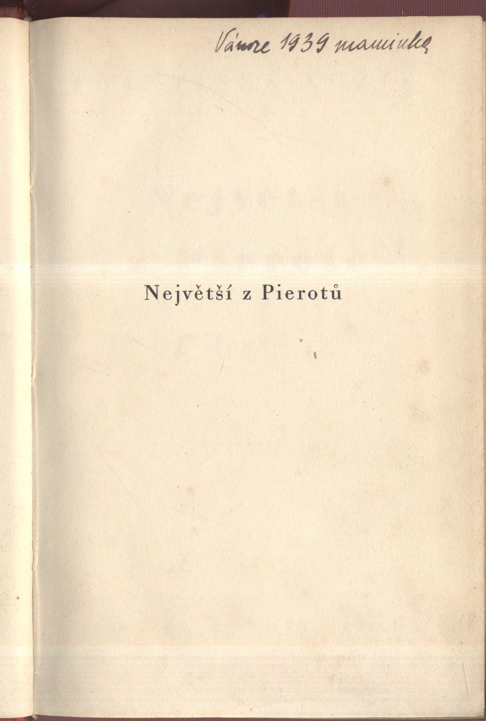 Názvové údaje Dcera Evina / Honoré de Balzac ; přeložila Jaroslava Vobrubová Osobní jméno Balzac, Honoré de, 1799-1850 (Autor) Další autoři Vobrubová-Koutecká, Jaroslava, 1891-1969 (Překladatel) Havlůjová, Hermina, 1891-1974 (Dřívější majitel) Neumannová, Kamila, 1874-1956 (Nakladatel, vydavatel) Korp. Albert Malíř (tiskárna a nakladatelství) (Tiskař) Nakladatelství Kamilla Neumannová (Nakladatel, vydavatel) Nakladatel V Praze : Kamilla Neumannová, 1910 Výrobce Na Královských Vinohradech : Tiskem Alberta Malíře, 1910 Rozsah 120 stran Klíčová slova francouzská literatura * novely * stol. 19. Počet ex. 1, z toho volných 1 Druh dok. monografie Signatura VHB 2031/přív.1 Odkazy (1) - Monografie Názvové údaje Honorina : novela / napsal Honoré de Balzac ; přeložil Jiří Živný Osobní jméno Balzac, Honoré de, 1799-1850 (Autor) Další autoři Živný, Jiří, 1876-1948 (Překladatel) Vokolek, Vlastimil, 1903-1985 (Dřívější majitel) Havlůjová, Hermina, 1891-1974 (Dřívější majitel) Neumannová, Kamila, 1874-1956 (Nakladatel, vydavatel) Korp. Albert Malíř (tiskárna a nakladatelství) (Tiskař) Nakladatelství Kamilla Neumannová (Nakladatel, vydavatel) Nakladatel V Praze : Kamilla Neumannová, 1909 Výrobce Na Královských Vinohradech : Tiskem Alberta Malíře, 1909 Rozsah 114 stran Klíčová slova francouzská literatura * novely * stol. 19. Počet ex. 2, z toho volných 2 Druh dok. monografie Signatura C12b 8066, VHB 2031 Odkazy (1) - Monografie Názvové údaje Nejkrásnější láska Dona Juana ; Štěstí v zločinu ; Ženina pomsta : tři z "Ďábelských" / Jules Barbey D´Aurevilly ; přeložil Josef Marek Osobní jméno Barbey d'Aurevilly, Jules Amédée, 1808-1889 (Autor) Další autoři Marek, Josef Richard, 1883-1951 (Překladatel) Neumannová, Kamila, 1874-1956 (Nakladatel, vydavatel) Havlůjová, Hermina, 1891-1974 (Autor podpisu) Korp. Nakladatelství Kamilla Neumannová (Nakladatel, vydavatel) Albert Malíř (tiskárna a nakladatelství) (Tiskař) Nakladatel V Praze : K. Neumannová, [1910] Výrobce Na Král. Vinohradech : Alb. Malíř, [1910] Rozsah 132 stran Klíčová slova francouzská literatura * francouzská próza * novely * dekadence Počet ex. 2, z toho volných 2 Druh dok. monografie Signatura Hoffmeister 0198, VHB 2035 Názvové údaje Hubená kočka : novella / Anatole France ; přeložil Em. Blahovec ; upravil a původními dřevoryty vyzdobil F. Kobliha Osobní jméno France, Anatole, 1844-1924 (Autor) Další autoři Blahovec, Emanuel (Překladatel) Kobliha, František, 1877-1962 (Ilustrátor) (Typograf) Havlůjová, Hermina, 1891-1974 (Autor podpisu) (Dřívější majitel) Korp. Nakladatelství Kamilla Neumannová (Nakladatel, vydavatel) J. Skalák a spol. (Praha) (Tiskař) Nakladatel V Praze : Kamilla Neumannová, 1913 Výrobce [Česko] : Knihtiskárna J. Skaláka a spol., 1913 Rozsah 81 stran ; 22 cm Klíčová slova francouzská próza * francouzská literatura * novely Počet ex. 4, z toho volných 4 Druh dok. monografie Signatura Hoffmeister 0011, VMartínek 0712, P 135 B 1, VHB 2244 Názvové údaje Král Kandaules : drama o třech dějstvích / napsal André Gide ; přeložil Arnošt Procházka ; [upravil Miloš Klicman] Osobní jméno Gide, André, 1869-1951 (Autor) Další autoři Procházka, Arnošt, 1869-1925 (Překladatel) Havlůjová, Hermina, 1891-1974 (Dřívější majitel) Klicman, Miloš František, 1890-1957 (Editor) Korp. Nakladatelství Kamilla Neumannová (Nakladatel, vydavatel) J. Skalák a spol. (Praha) (Tiskař) Nakladatel V Praze : Kamilla Neumannová, 1914 Výrobce (Tiskem J. Skaláka) Rozsah 67 s. Klíčová slova francouzská literatura * francouzské divadlo * dramata * divadelní hry * symbolismus * dekadence * francouzský symbolismus Počet ex. 2, z toho volných 2 Druh dok. monografie Signatura Hoffmeister 0190, VHB 2275 Názvové údaje Zahrada Popelčina / Josef Hora ; [frontispic a obálka od Eduarda Miléna] Osobní jméno Hora, Josef, 1891-1945 (Autor) (Dedikátor) Další autoři Milén, Eduard, 1891-1976 (Autor obálky) (Ilustrátor) Havlůjová, Hermina, 1891-1974 (Dedikátor) Holanová, Růžena, 1911- (Dedikant) Hellmuthová, Marta, 1917-1988 (Dřívější majitel) (Dedikant) Korp. Fr. Borový (firma) (Nakladatel, vydavatel) Akciová moravská knihtiskárna Polygrafie (Tiskař) Nakladatel Praha : Fr. Borový, 1940 Výrobce Akciová moravská knihtiskárna Polygrafie) Rozsah 68 s. : il. ; 20 cm Klíčová slova česká literatura * poezie * básně * r. 1940 Počet ex. 3, z toho volných 3 Druh dok. monografie Signatura Holan 1480, MUK 1742, VHB 3693 Názvové údaje Temno : historický obraz / Alois Jirásek ; ilustroval Adolf Kašpar Osobní jméno Jirásek, Alois, 1851-1930 (Autor) Další autoři Kašpar, Adolf, 1877-1934 (Ilustrátor) Havlůjová, Hermina, 1891-1974 (Dřívější majitel) Korp. J. Otto (nakladatelství) (Nakladatel, vydavatel) Česká grafická Unie (tiskárna a nakladatelství) (Tiskař) Nakladatel Praha : J. Otto, 1926 Výrobce (Tiskem České grafické Unie a. s.) Rozsah 702 s. : il. Klíčová slova česká literatura * česká próza * historická próza Počet ex. 1, z toho volných 1 Druh dok. monografie Signatura VHB 3705 Názvové údaje Daleké obzory / Josef Kadlec ; [za redakce Pavly Buzkové ; obálka a kresby Arnošt Paderlík] Osobní jméno Kadlec, Josef, 1912-2000 (Autor) Další autoři Buzková, Pavla, 1885-1949 (Editor) (Autor úvodu atd.) Hellmuthová, Marta, 1917-1988 (Dřívější majitel) (Dedikant) Havlůjová, Hermina, 1891-1974 (Dedikant) Paderlík, Arnošt, 1919-1999 (Ilustrátor) (Autor obálky) Korp. Českomoravský kompas (nakladatelství) (Nakladatel, vydavatel) (Tiskař) Nakladatel V Praze : Českomoravský kompas, 1943 Rozsah 213 s. : il. Klíčová slova česká literatura * česká próza * esej * esejistické texty * úvahy * fejetony * rozhlasová tvorba * rozhlasové fejetony Počet ex. 1