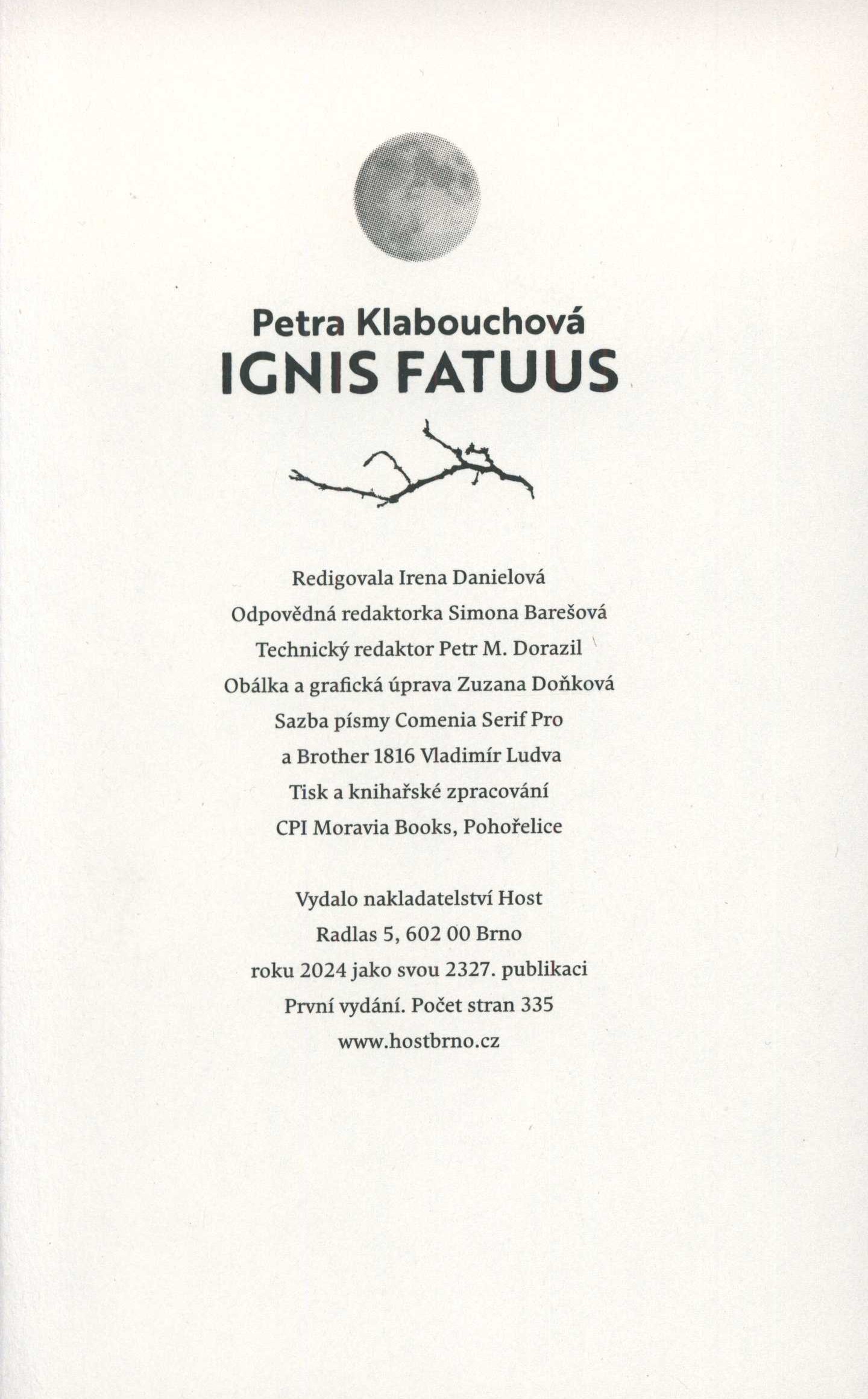Názvové údaje Hodně štěstí, zdraví / Petra Dvořáková, Petra Soukupová, Viktorie Hanišová, Bianca Bellová, Anna Bolavá, Kateřina Rudčenková, Markéta Pilátová, Marek Epstein, Zuzana Hubeňáková, Petra Klabouchová, Sára Zeithammerová, Zdeněk Grmolec ; obálku navrhla a ilustrovala Adéla Ťopková ; editor Boris Dočekal Osobní jméno Dvořáková, Petra, 1977- (Autor) Další autoři Soukupová, Petra, 1982- (Autor) Hanišová, Viktorie, 1980- (Autor) Bellová, Bianca, 1970- (Autor) Bolavá, Anna, 1981- (Autor) Rudčenková, Kateřina, 1976- (Autor) Pilátová, Markéta, 1973- (Autor) Epstein, Marek, 1975- (Autor) Hubeňáková, Zuzana, 1980- (Autor) Klabouchová, Petra, 1980- (Autor) Zeithammerová, Sára, 1997- (Autor) Grmolec, Zdeněk, 1947- (Autor) Ťopková, Adéla, 1996- (Ilustrátor) (Autor obálky) Dočekal, Boris, 1950- (Editor) Korp. Euromedia Group, a. s. - Listen (nakladatelství) (Nakladatel, vydavatel) Tisk Centrum (tiskárna) (Tiskař) Nakladatel Praha : Listen, 2024 Výrobce [Moravany u Brna] : Tisk centrum, s.r.o. Rozsah 207 stran : ilustrace ; 19 cm Klíčová slova česká literatura * česká próza * povídky * antologie * výbor povídek * tematický výběr * oslavy * stol. 21. Počet ex. 1, z toho volných 1 Druh dok. monografie Signatura LITb 02546 Názvové údaje Ignis Fatuus / Petra Klabouchová ; obálka a grafická úprava Zuzana Doňková Osobní jméno Klabouchová, Petra, 1980- (Autor) Další autoři Doňková, Zuzana, 1980- (Autor obálky) (Knižní grafik) Korp. Host (nakladatelství) (Nakladatel, vydavatel) CPI Moravia Books (tiskárna) (Tiskař) Nakladatel Brno : Host, 2024 Výrobce Pohořelice : CPI Moravia Books Rozsah 331 stran ; 20,5 cm Klíčová slova česká próza * český román * hororový příběh * Šumava Počet ex. 1, z toho volných 1 Druh dok. monografie Signatura LITb 02281 Názvové údaje Už teď mi chybíš / Petra Dvořáková, Alena Mornštajnová, Bianca Bellová, Viktorie Hanišová, Anna Bolavá, Petra Klabouchová, Kateřina Surmanová, Kateřina Rudčenková, Sára Zeithammerová, Josef Moník, Stanislav Beran, Lidmila Kábrtová, Iva Fexová ; obálku navrhla a ilustrovala Adéla Ťopková Osobní jméno Dvořáková, Petra, 1977- (Autor) Další autoři Mornštajnová, Alena, 1963- (Autor) Bellová, Bianca, 1970- (Autor) Hanišová, Viktorie, 1980- (Autor) Bolavá, Anna, 1981- (Autor) Klabouchová, Petra, 1980- (Autor) Surmanová, Kateřina, 1984- (Autor) Rudčenková, Kateřina, 1976- (Autor) Zeithammerová, Sára, 1997- (Autor) Moník, Josef, 1952- (Autor) Beran, Stanislav, 1977- (Autor) Kábrtová, Lidmila, 1971- (Autor) Fexová, Ivana, 1962- (Autor) Ťopková, Adéla, 1996- (Autor obálky) (Ilustrátor) Korp. Nakladatelství Listen (Nakladatel, vydavatel) Tisk Centrum (tiskárna) (Tiskař) Nakladatel Praha : Listen, 2025 Výrobce Moravany u Brna : Tisk Centrum, s.r.o. Rozsah 222 stran ; 19 cm Klíčová slova česká próza * české povídky * Česko * stol. 21. * antologie Počet ex. 1, z toho volných 1 Druh dok. monografie Signatura LITb 02629