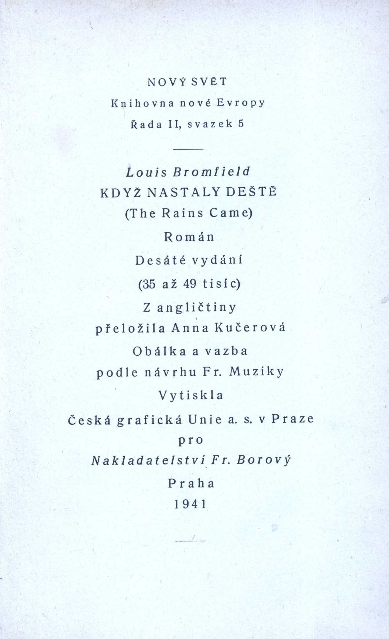 Názvové údaje Ztratila jsem dívčí úsměv : [román] / Jane Allen ; [z angličtiny přeložil Vl. Hrnčíř ; obálka podle návrhu E. Miléna] Osobní jméno Allen, Jane (Autor) Další autoři Hrnčíř, Vladimír, -1977 (Překladatel) Milén, Eduard, 1891-1976 (Autor obálky) Korp. Fr. Borový (firma) (Nakladatel, vydavatel) Lidová tiskárna (Brno, Česko) (Tiskař) Nakladatel V Praze : Fr. Borový, 1940 Výrobce Lidová tiskárna) Rozsah 228 s. ; 8° Klíčová slova americká literatura * americká próza * román Počet ex. 2, z toho volných 2 Druh dok. monografie Signatura AFB 1287, P 54 D 141 Názvové údaje Mlýn na podzemní řece : román / Marcel Aymé ; překlad Jindřicha Hořejšího z francouzštiny ; přebal a vazba Ed. Milén Osobní jméno Aymé, Marcel, 1902-1967 (Autor) Další autoři Hořejší, Jindřich, 1886-1941 (Překladatel) Milén, Eduard, 1891-1976 (Autor obálky) (Výtvarník vazby) Korp. Fr. Borový (firma) (Nakladatel, vydavatel) Akciová moravská knihtiskárna Polygrafie (Tiskař) Nakladatel Praha : Fr. Borový, 1937 Výrobce V Brně : Akciová moravská knihtiskárna Polygrafie Rozsah 226 stran Klíčová slova francouzská literatura * francouzská próza * román Počet ex. 2, z toho volných 2 Druh dok. monografie Signatura AFB 1025, P 122 e 25 Názvové údaje Klapzubova jedenáctka : povídka pro kluky malé i velké / Eduard Bass ; [s obálkou E. Miléna] Osobní jméno Bass, Eduard, 1888-1946 (Autor) Další autoři Milén, Eduard, 1891-1976 (Autor obálky) (Ilustrátor) Brunner, Vratislav Hugo, 1886-1928 (Ilustrátor) Korp. Fr. Borový (firma) (Nakladatel, vydavatel) Polygrafia (nakladatelství a tiskárna, Brno) (Tiskař) Nakladatel V Praze : nakladatel Fr. Borový, 1922 Výrobce (vytiskla Polygrafie) Rozsah 142, [4] s. Klíčová slova česká literatura * próza * literatura pro mládež Počet ex. 1, z toho volných 1 Druh dok. monografie Signatura AFB 0210 Názvové údaje Případ čísla 128 a jiné historky / [sestavil] Eduard Bass ; [obálku nakreslil Ed. Milén] Osobní jméno Bass, Eduard, 1888-1946 (Autor) (Sestavovatel, kompilátor) Další autoři Milén, Eduard, 1891-1976 (Autor obálky) (Ilustrátor) Korp. Polygrafia (nakladatelství a tiskárna, Brno) (Tiskař) Nakladatel Brno : tiskem a nákladem Polygrafie, 1921 Rozsah 135, [5] s. Klíčová slova česká literatura * próza * povídky Počet ex. 1, z toho volných 1 Druh dok. monografie Signatura AFB 0184 Názvové údaje Rozhlásky / Eduard Bass ; [vybral a uspoř. Adolf Branald ; doslov Otakar Mrkvička ; k vyd. připr. a pozn. sest. Jarmila Sirotková-Víšková ; obálku, vazbu a předsádku navrhl a typogr. upr. Zdenek Seydl ; aut. kreseb jsou Eduard Milén a Otakar Mrkvička] Osobní jméno Bass, Eduard, 1888-1946 (Autor) Další autoři Branald, Adolf, 1910-2008 (Sestavovatel, kompilátor) Mrkvička, Otakar, 1898-1957 (Autor úvodu atd.) Víšková, Jarmila, 1927-2017 (Editor) Seydl, Zdenek, 1916-1978 (Grafický technik) Milén, Eduard, 1891-1976 (Ilustrátor) Nakladatel Praha : Československý spisovatel, 1957 Rozsah 395 s. : il. ; 21 cm Osobní hesla Bass, Eduard, 1888-1946 - prozaik, novinář, překladatel Klíčová slova česká literatura * poezie * satirické verše * výbor Počet ex. 3, z toho volných 3 Druh dok. monografie Signatura AČS 01366, AČS 01366a, P 31 B 4 Názvové údaje Atlantis / Pierre Benoit ; z franštiny přeložil Vítězslav Unzeitig ; [obálku a knižní úpravu navrhl Ed. Milén] Osobní jméno Benoît, Pierre, 1886-1962 (Autor) Další autoři Unzeitig, Vítězslav, 1877-1931 (Překladatel) Milén, Eduard, 1891-1976 (Autor obálky) (Grafický technik) (Ilustrátor) Korp. Polygrafia (nakladatelství a tiskárna, Brno) (Nakladatel, vydavatel) Nakladatel V Brně : nákladem a tiskem Polygrafie, [1921] Rozsah 254, [4] s. : il. Klíčová slova francouzská literatura * próza * román Počet ex. 1, z toho volných 1 Druh dok. monografie Signatura AFB 0192 Názvové údaje Věnec samoty / Alois Boček ; [s kresbami, obálkou a v grafické úpravě Eduarda Miléna] Osobní jméno Boček, Alois (Autor) Další autoři Milén, Eduard, 1891-1976 (Ilustrátor) (Knižní grafik) (Autor obálky) Korp. Joža Jícha (nakladatelství) (Nakladatel, vydavatel) Typia (Brno) (Tiskař) Nakladatel Brno : J. Jícha, 1943 Výrobce (Typia) Rozsah 60 s. : il. Klíčová slova česká literatura * česká poezie * venkov * vlast * příroda * stol. 20., léta 40. Počet ex. 1, z toho volných 1 Druh dok. monografie Signatura RSzpuk 0233 Názvové údaje Věnec samoty / Alois Boček ; [s kresbami, obálkou a v grafické úpravě Eduarda Miléna] Osobní jméno Boček, Alois (Autor) Další autoři Milén, Eduard, 1891-1976 (Ilustrátor) (Knižní grafik) (Autor obálky) Korp. Joža Jícha (nakladatelství) (Nakladatel, vydavatel) Typia (Brno) (Tiskař) Nakladatel Brno : J. Jícha, 1943 Výrobce (Typia) Rozsah 60 s. : il. Klíčová slova česká literatura * česká poezie * venkov * vlast * příroda * stol. 20., léta 40. Počet ex. 3, z toho volných 3 Druh dok. monografie Signatura KaG XLVII B2 43, KaG LVIII A2 21, KaG XLVIII E 11 Názvové údaje Snář a planetář : básně / Klement Bochořák ; [se sedmi původními litografiemi, v obálce a v grafické úpravě Eduarda Miléna] Osobní jméno Bochořák, Klement, 1910-1981 (Autor) Další autoři Milén, Eduard, 1891-1976 (Ilustrátor) (Knižní grafik) (Autor obálky) Grimm, Antonín, 1902-1981 (Dřívější majitel) (Dárce) Korp. Družstvo Moravského kola spisovatelů (nakladatelství) (Nakladatel, vydavatel) Akciová moravská knihtiskárna (Brno) (Tiskař) Nakladatel V Brně : Družstvo Moravského kola spisovatelů, 1944 Výrobce (Akciová moravská knihtiskárna) Rozsah 119 s. : il. Klíčová slova česká poezie * lyrické básně * stol. 20., léta 40. * česká katolická poezie * katolická poezie * katolická literatura Počet ex. 2, z toho volných 2 Druh dok. monografie Si