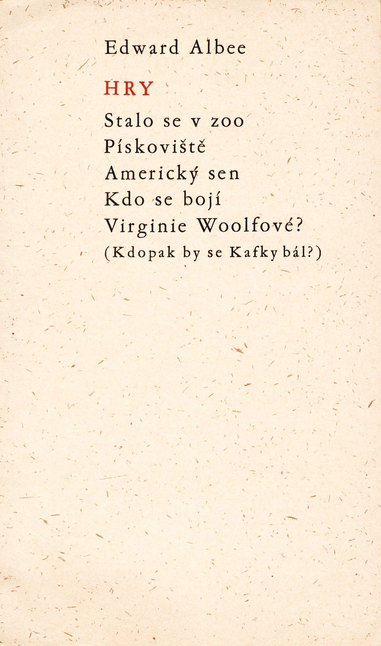 Názvové údaje Hry / Edward Albee ; z anglických originálů přeložili Wanda Zámecká, Pellar Rudolf, Milan Lukeš, Pellarová Luba ; doslov napsal Milan Lukeš ; obálku navrhl Ivan Urbánek Osobní jméno Albee, Edward, 1928-2016 (Autor) Další autoři Beranová, Wanda, 1929- (Překladatel) Lukeš, Milan, 1933-2007 (Autor doslovu, tiráže atd.) (Překladatel) Pellar, Rudolf, 1923-2010 (Překladatel) Pellarová, Luba, 1922-2005 (Překladatel) Urbánek, Ivan, 1933-1994 (Autor obálky) Korp. Orbis (firma) (Nakladatel, vydavatel) Nakladatel Praha : Orbis, 1964 Rozsah 252 stran Klíčová slova americká próza * dramata * divadelní hry Druh dok. monografie Názvové údaje Hry : Stalo se v ZOO ; Pískoviště ; Americký sen ; Kdo se bojí Virginie Woolfové (Kdopak by se Kafky bál?) / Albee Edward ; doslov napsal Milan Lukeš ; obálku navrhl Ivan Urbánek Osobní jméno Albee, Edward, 1928-2016 (Autor) Další autoři Pellar, Rudolf, 1923-2010 (Překladatel) Lukeš, Milan, 1933-2007 (Autor doslovu, tiráže atd.) (Překladatel) Zámecká, Wanda, 1929- (Překladatel) Pellarová, Luba, 1922-2005 (Překladatel) Urbánek, Ivan, 1933-1994 (Autor obálky) Korp. Orbis (firma) (Nakladatel, vydavatel) Knihtisk (tiskárna) (Tiskař) Nakladatel Praha : Orbis, 1964 Výrobce Praha : Knihtisk n. p. Rozsah 252 stran ; 19 cm Klíčová slova drama * USA * překlady do češtiny * divadelní drama * divadelní umělci Počet ex. 2, z toho volných 2 Druh dok. monografie Signatura P 40 c 45, R&AHamanovi 1591 Názvové údaje Ze světa Starého zákona. I / Miloš Bič ; obálka, vazba a grafická úprava Ivan Urbánek Osobní jméno Bič, Miloš, 1910-2004 (Autor) Další autoři Urbánek, Ivan, 1933-1994 (Knižní grafik) (Autor obálky) Nakladatel Praha : Kalich, 1986 Výrobce Přerov : Tisk, knižní výroba, n. p., Brno, závod 4 Rozsah 364 stran : ilutrace ; 25 cm Klíčová slova dějiny * dějiny civilizace * dějiny Židů * starověk * starověká civilizace * starověká Sýrie * Palestina * Egypt * Starý zákon * náboženství Počet ex. 1, z toho volných 1 Druh dok. monografie Signatura M 152 b 36 Názvové údaje Chasidská vyprávění / Martin Buber ; přeložila Alena Bláhová ; doslov Luděk Brož ; přebal, vazba, grafická úprava Ivan Urbánek Osobní jméno Buber, Martin, 1878-1965 (Autor) Další autoři Bláhová, Alena (Překladatel) Brož, Luděk, 1922-2003 (Autor doslovu, tiráže atd.) Urbánek, Ivan, 1933-1994 (Autor obálky) (Výtvarník vazby) (Knižní grafik) Korp. Kalich, nakladatelství a knihkupectví (Nakladatel, vydavatel) Ústřední církevní nakladatelství (Nakladatel, vydavatel) Tisk Brno (tiskárna) (Tiskař) Nakladatel Praha : Kalich, 1990 Výrobce Brno : Tisk Rozsah 575 stran ; 20 cm Osobní hesla Buber, Martin, 1878-1965 - židovský filozof, spisovatel, překladatel, pedagog rakouského původu Klíčová slova judaismus * chasidismus * životní moudrost * učení * příběhy * legendy * studie Počet ex. 2, z toho volných 2 Druh dok. monografie Signatura BVolkova 0918, JVladislav 711 Názvové údaje Příběh fotbalového hřiště / Miloslav Bureš ; Typogr. Oldřich Hlavsa ; Kresba na obálce Ivan Urbánek Osobní jméno Bureš, Miloslav, 1909-1968 (Autor) Další autoři Hlavsa, Oldřich, 1909-1995 (Grafický technik) Urbánek, Ivan, 1933-1994 (Ilustrátor) Nakladatel Praha : Československý spisovatel, 1968 Rozsah 63 s. Klíčová slova česká literatura * poezie Počet ex. 2, z toho volných 2 Druh dok. monografie Signatura AČS 01859, AČS 01859a Názvové údaje Příběh fotbalového hřiště / Miloslav Bureš ; [kresba na obálce Ivan Urbánek ; typografie Oldřich Hlavsa] Osobní jméno Bureš, Miloslav, 1909-1968 (Autor) (Dedikátor) Další autoři Urbánek, Ivan, 1933-1994 (Ilustrátor) Hlavsa, Oldřich, 1909-1995 (Grafický technik) Vacík, Miloš, 1922-1999 (Dedikant) Fuks, Ladislav, 1923-1994 (Dedikant) Nakladatel Praha : Československý spisovatel, 1968 Výrobce Tisk 1) Rozsah 63, [2] s. ; 8ř Klíčová slova česká literatura * poezie * básně * stol. 20., léta 40. Počet ex. 3, z toho volných 3 Druh dok. monografie Signatura C12a 1724, LK P 108 g 28, Fuks 0557 Názvové údaje Obrázky z dějin zeměpisných objevů / Napsal Jiří Černý ; Ilustroval Ervín Urban ; Graficky upravil Ivan Urbánek Osobní jméno Černý, Jiří, 1940-2019 (Autor) Další autoři Urban, Ervín, 1931-1997 (Ilustrátor) Urbánek, Ivan, 1933-1994 (Grafický technik) Nakladatel Praha : Albatros, 1992 Rozsah 237 s. : il Klíčová slova zeměpisné objevy Počet ex. 1, z toho volných 1 Druh dok. monografie Signatura M 215 b 37 Názvové údaje Pejskování s Polynou : pro děti od 6 let / Hana Doskočilová ; ilustrovala Šarlota Zahrádková ; grafická úprava Ivan Urbánek Osobní jméno Doskočilová, Hana, 1936-2019 (Autor) Další autoři Filcíková, Šarlota, 1955- (Ilustrátor) Urbánek, Ivan, 1933-1994 (Knižní grafik) Korp. Nakladatelství Albatros (Nakladatel, vydavatel) Nakladatel Praha : Albatros, 1990 Výrobce Tisk 6) Rozsah 79 s. : obr. ; 20 cm Klíčová slova česká literatura * česká próza * příběhy * literatura pro děti Počet ex. 1, z toho volných 0 Druh dok. monografie Signatura R 38 d 10