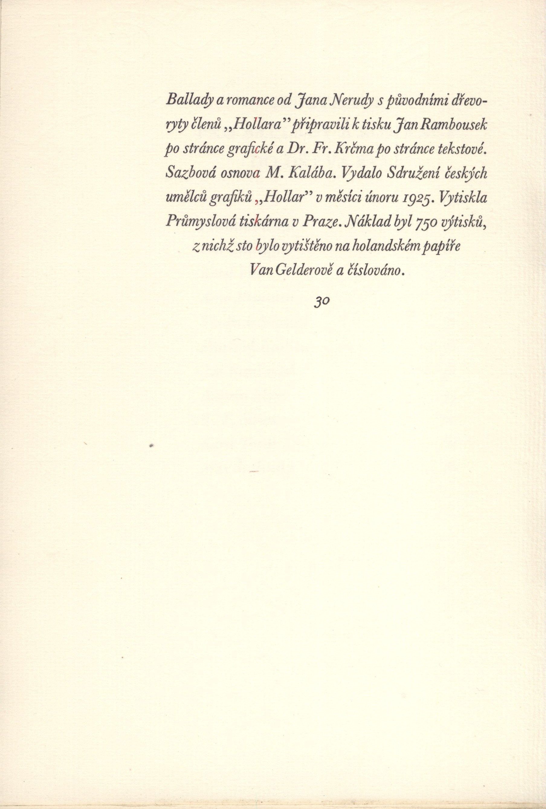 Názvové údaje Rukověť sběratelova / J. M. Augusta Osobní jméno Augusta, Jan Maria, 1897-1939 (Autor) (Dedikátor) Další autoři Bradáč, Ludvík, 1885-1947 (Dedikátor) Karásek ze Lvovic, Jiří, 1871-1951 (Dedikant) Juna, Zdeněk, 1897-1975 (Ilustrátor) Stretti, Viktor, 1878-1957 (Grafický technik) (Leptař) Bílek, František, 1872-1941 (Grafický technik) Kobliha, František, 1877-1962 (Grafický technik) Vik, Karel, 1883-1964 (Grafický technik) Röhling, Vladislav, 1878-1949 (Grafický technik) Klír, Svatopluk, 1896-1959 (Grafický technik) Moravec, Alois, 1899-1987 (Grafický technik) Brunner, Vratislav Hugo, 1886-1928 (Grafický technik) Kremlička, Rudolf, 1886-1932 (Grafický technik) Tusar, Slavoboj, 1885-1950 (Grafický technik) Kulhánek, Stanislav, 1885-1970 (Grafický technik) Pavelka, František, 1894-1948 (Grafický technik) Šimon, Tavík František, 1877-1942 (Grafický technik) Nauman, Arno, 1887-1959 (Grafický technik) Mánes, Josef, 1820-1871 (Umělec) Kafka, Bohumil, 1878-1942 (Sochař) Braunerová, Zdenka, 1858-1934 (Knižní grafik) Korp. Průmyslová tiskárna v Praze (Tiskař) Ludvík Bradáč (nakladatelství) (Nakladatel, vydavatel) Nakladatel Praha : Nakladatelství L. Bradáče, 1927 Výrobce (Tiskem Průmyslové tiskárny) Rozsah 1102 s., [2] l. obr. příl., [31] l. graf. příl. Klíčová slova česká literatura * užité umění * sběratelé * sběratelství * muzejní sbírky * ochrana sbírek * sbírka * sbírka umění * sbírky * soukromé sbírky * umělecké sbírky * bibliofilie * bibliofilské tisky * bibliofilský tisk * knihy * porcelán * numismatika * šperky * podpisy * signatury * značky * knižní značky * knižní grafika * grafici * grafické listy * grafické umění * grafický design * grafické techniky * rytecké techniky * umělecké techniky * sochy * sochaři * sochařství * textil * koberce * nábytek * historický nábytek * umělecký nábytek * hudební nástroje Počet ex. 1, z toho volných 1 Druh dok. monografie Signatura KaG V C 54 Odkazy (1) - Monografie Názvové údaje Dětské motivy a verše sociální / Magda Bílá ; [Na předsádce] dřevoryt K. Vika z r. 1919 Osobní jméno Bílá, Magda, 1879-1958 (Autor) Další autoři Vik, Karel, 1883-1964 (Ilustrátor) Nakladatel B.m. : vl.n., 1932 Rozsah 39 s. Klíčová slova česká literatura * poezie * básně * stol. 20., léta 30. Počet ex. 1, z toho volných 1 Druh dok. monografie Signatura C12c 1035 Názvové údaje Na Valdštýně : ze Čtyř cyklů básní / Svatopluk Čech ; s původními dřevoryty K. Vika Osobní jméno Čech, Svatopluk, 1846-1908 (Autor) Další autoři Vik, Karel, 1883-1964 (Ilustrátor) (Knižní grafik) Korp. Sdružení českých umělců grafiků Hollar (Nakladatel, vydavatel) Průmyslová tiskárna v Praze (Tiskař) Nakladatel Praha : [Sdružení umělců grafiků Hollar], 1924 Rozsah 12 s. : il. Klíčová slova česká literatura * česká poezie * stol. 19. * bibliofilie * bibliofilské tisky * bibliofilská vydání Počet ex. 1, z toho volných 1 Druh dok. monografie Signatura KaG I B 42b Odkazy (1) - PERIODIKA - Svázaný ročník periodika Názvové údaje Pout svatého Antonína / Viktor Dyk ; [dřevoryty věnoval Karel Vik ; úpravu navrhl Arthur Novák] Osobní jméno Dyk, Viktor, 1877-1931 (Autor) Další autoři Vik, Karel, 1883-1964 (Ilustrátor) Novák, Arthur, 1876-1957 (Typograf) Korp. Müller a spol. (tiskárna) (Tiskař) Jadranská stráž (Nakladatel, vydavatel) Nakladatel V Praze : Jadranská stráž, 1931 Výrobce Müller a spol.) Rozsah [16] s. : il. Klíčová slova česká literatura * česká poezie * bibliofilie * bibliofilský tisk * smuteční tisk * bibliofilská vydání Počet ex. 1, z toho volných 1 Druh dok. monografie Signatura KaG XVI B 277 Názvové údaje Vzpomínky ze života Jana Gebauera : 1838-1938 / Jan Gebauer ; Bar. dřevoryty Karla Vika Osobní jméno Gebauer, Jan, 1838-1907 (Autor) Další autoři Vik, Karel, 1883-1964 (Ilustrátor) Nakladatel B.m. : rodina J. Gebauera, 1938 Rozsah 33 s. : il Osobní hesla Gebauer, Jan, 1838-1907 - bohemista, literární historik Klíčová slova česká literatura * autobiografické vzpomínky * Gebauer J. * stol. 19. Počet ex. 1, z toho volných 1 Druh dok. monografie Signatura C12a 1434 Názvové údaje Neznámému bohu : [hrst intimní lyriky z let 1920-25] / Josef Knap ; [barevný dřevoryt K. Vika] Osobní jméno Knap, Josef, 1900-1973 (Autor) (Autor podpisu) (Dedikátor) Další autoři Vik, Karel, 1883-1964 (Ilustrátor) (Autor podpisu) Topičová, Milada, 1888-1961 (Dedikant) Korp. Müller a spol. (tiskárna) (Nakladatel, vydavatel) Nakladatel V Turnově : vytiskli a vydali nakladatelé Müller a spol., 1929 Rozsah 25 s. : il. ; 20 cm Klíčová slova česká literatura * poezie * Knap J. * básně * ilustrované knihy * Vik K. * bibliofilská vydání * novoročenka * čeští tiskaři * české tiskárny Počet ex. 1, z toho volných 1 Druh dok. monografie Signatura Topič 0666 Názvové údaje Balada z Českého ráje / Jaroslav Kolman Cassius ; obálku a kresbu titulního listu navrhl Karel Vik Osobní jméno Kolman Cassius, Jaroslav, 1883-1951 (Autor) Další autoři Vik, Karel, 1883-1964 (Autor obálky) (Ilustrátor) (Autor podpisu) Knytl, Jaroslav, 1891-1970 (Dřívější majitel) Korp. Melantrich (nakladatelství) (Nakladatel, vydavatel) (Tiskař) Nakladatel Praha : Melantrich, 1946 Rozsah 42 stran : ilustrace Klíčová slova česká literatura * česká poezie * balada * 2. světová válka * vlastenectví Počet ex. 4, z toho volných 4 Druh dok. monografie Signatura MEL 0837, MEL 0837a, VHB 3663, KaG LXV 311 Názvové údaje Ballady a romance / od Jana Nerudy ; [s původními dřevoryty členů Hollara ; připravili k tisku Jan Rambousek po stránce grafické ; a Fr. Krčma po stránce tekstové ; sazbová osnova M. Kalába] Osobní jméno Neruda, Jan, 1834-1891 (Autor) Další autoři Rambousek, Jan, 1895-1976 (S